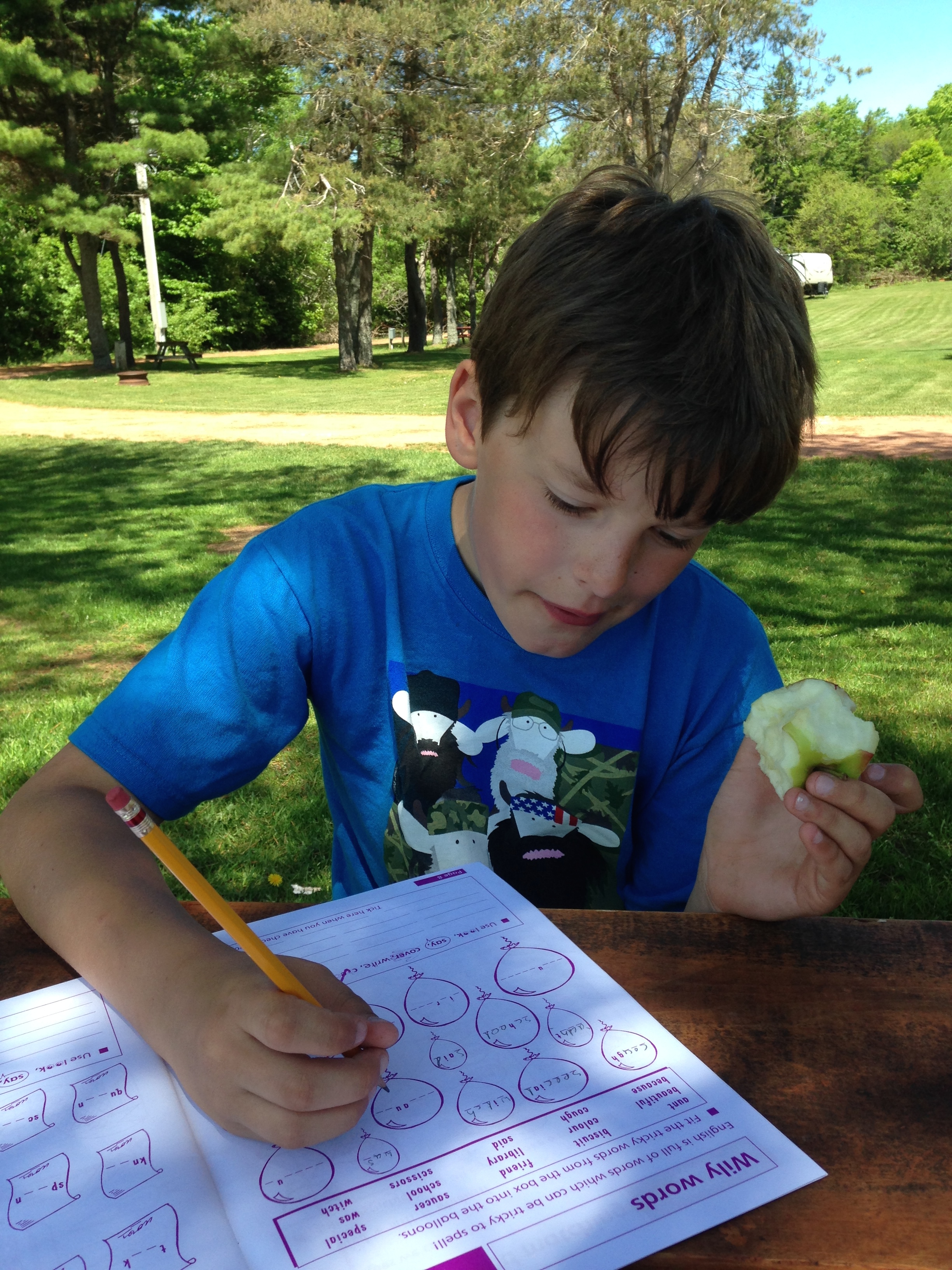 We left Dartmouth on Monday morning after starting our ‘home schooling’. We had given the kids (and us) a couple of weeks holiday – well and all the school books were packed in the van so we couldn’t have done too much till now anyway!! I’m sure it will get harder and they will put up more resistance but the first mornings ‘lesson’ sat in the sun felt like a pleasurable experience all round.