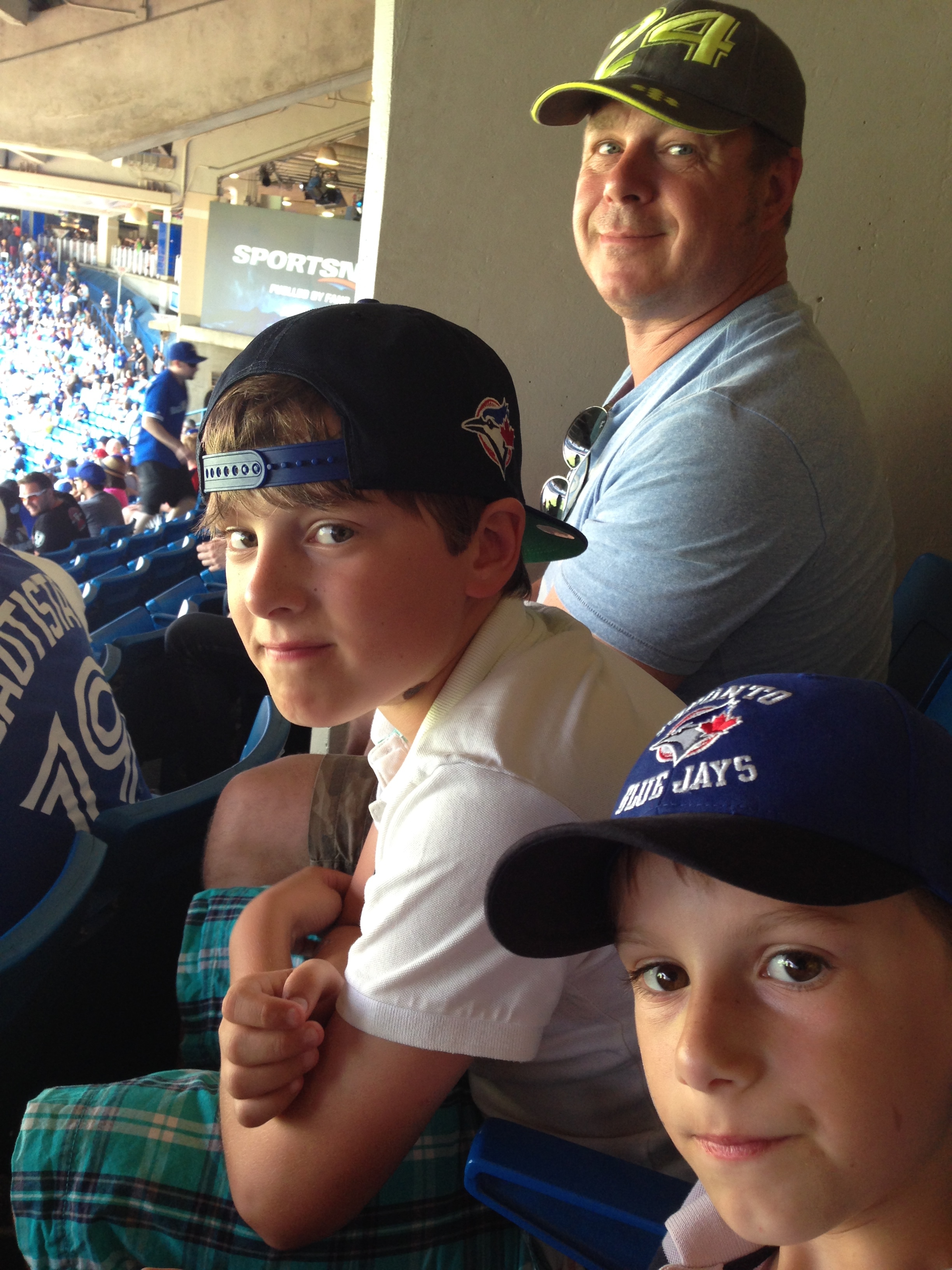 Grabbed a hot dog (well you have to really I think don’t you?!) and headed into the Stadium. Tornoto Blue Jays v Chicago White Sox. Now I don’t know much about baseball but truly it just seemed like rounders to me!! Also apparently you can’t get thorugh 10 minutes without buying some other form of junk food to help pass the long pauses between any real action. Despite buying the kids each a cap and therefore declaring our support to Canada’s only baseball team in the Amerian Baseball League for the year, they lost!