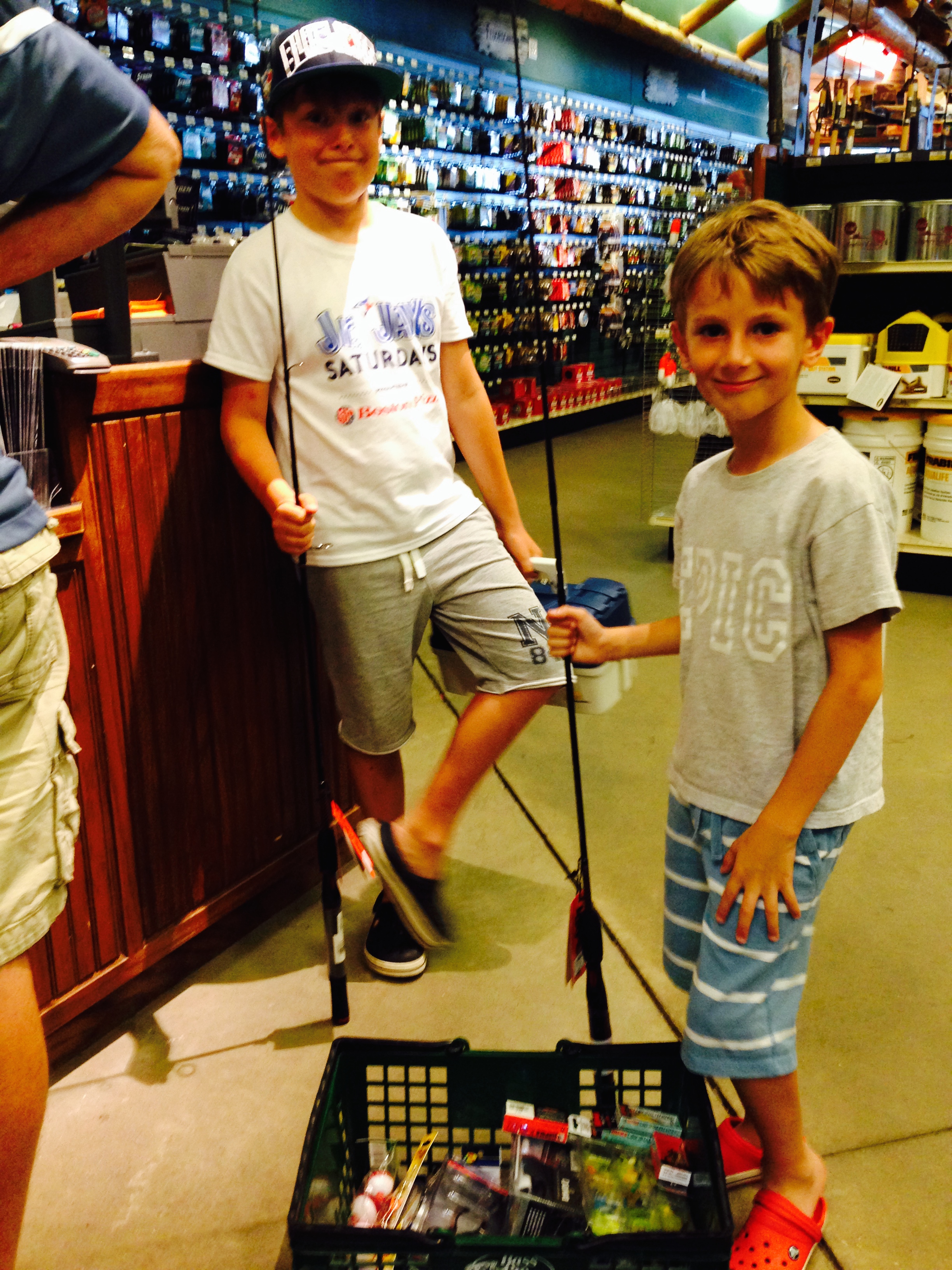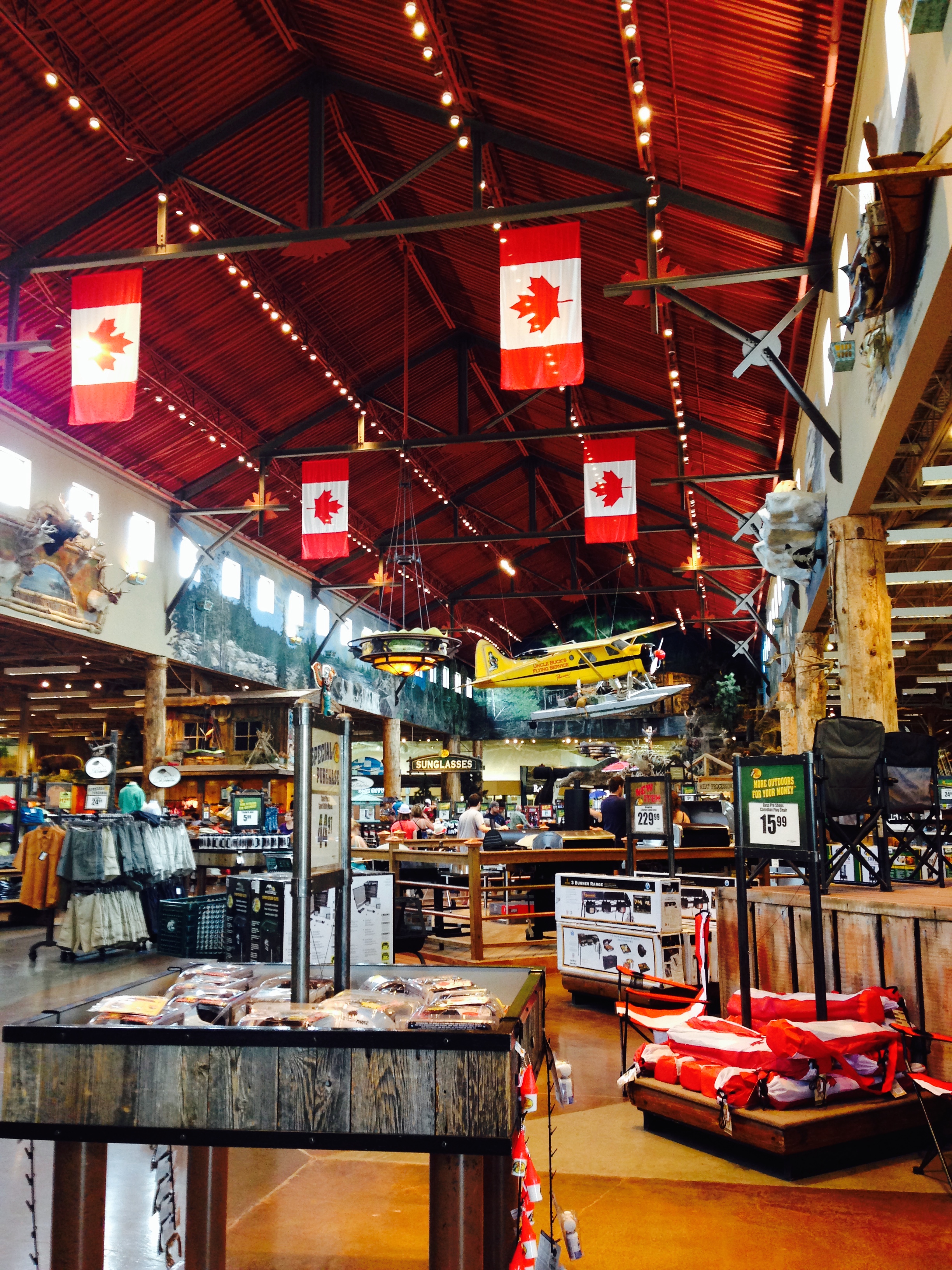 On the way we stopped at an incredible Outdoors store where we got the kids ‘kitted up’ with fishing rods and gear. Incredible store with a seaplane hanging from the ceiling, a huge aquarium full of catfish and countless moose heads! Proper boy heaven!!