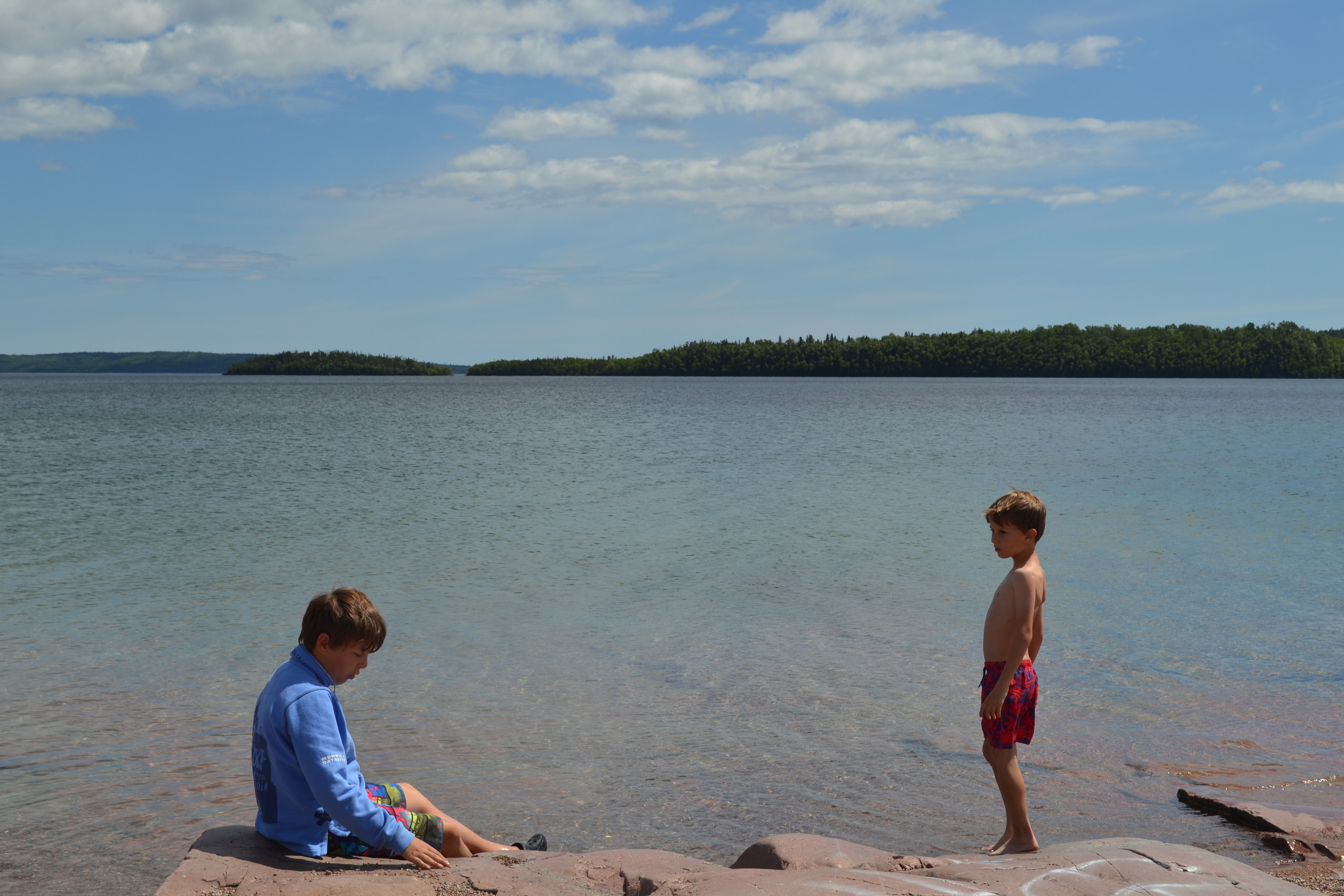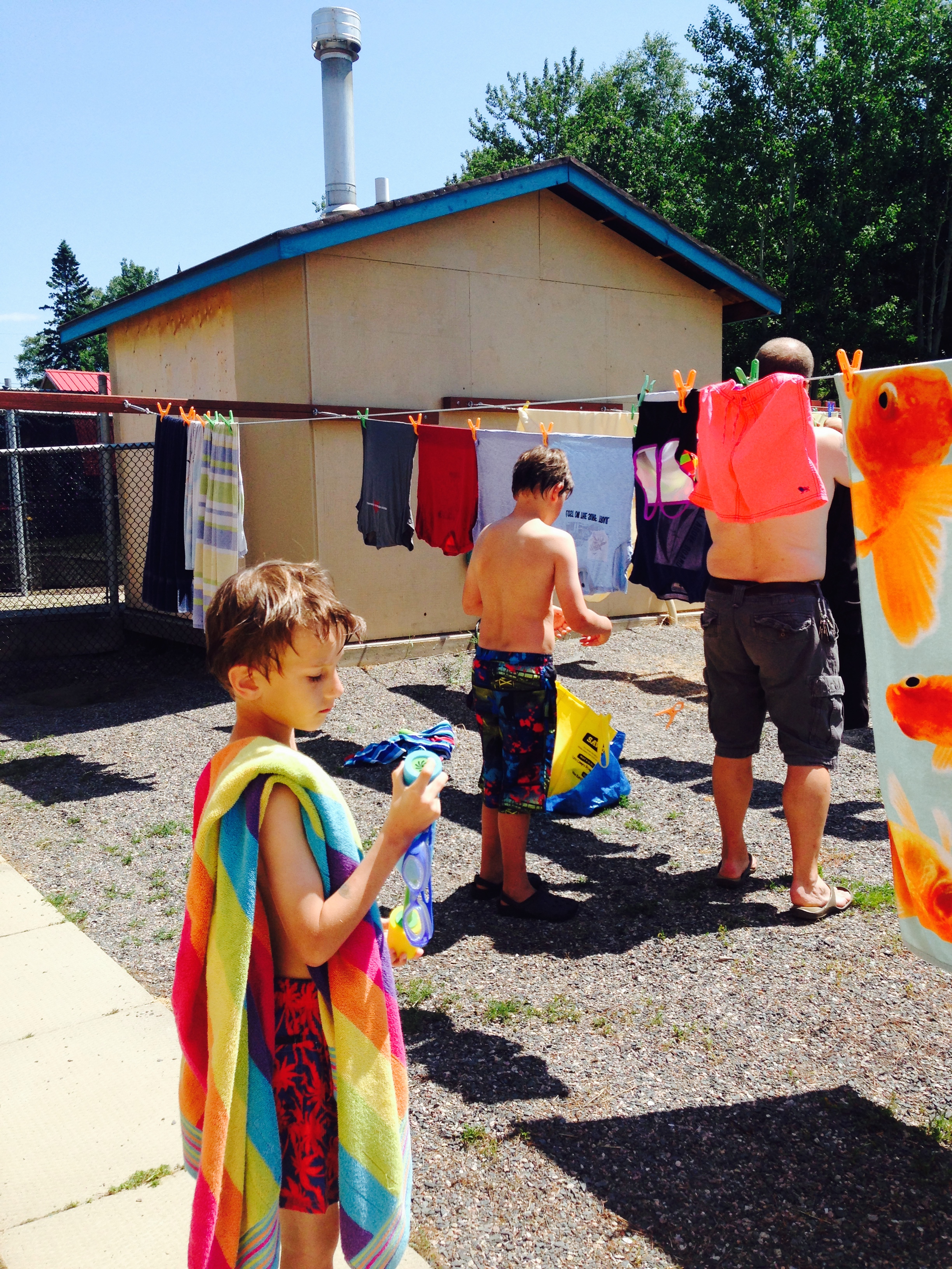 We spent 2 nights in Thunder Bay, got sunburnt, swam, fished in the worst stocked Catch and Release Trout Pond on earth, got our tyre valve fixed and did some washing!! (Please note how helpful the children are being and how happy they look as they help!!).