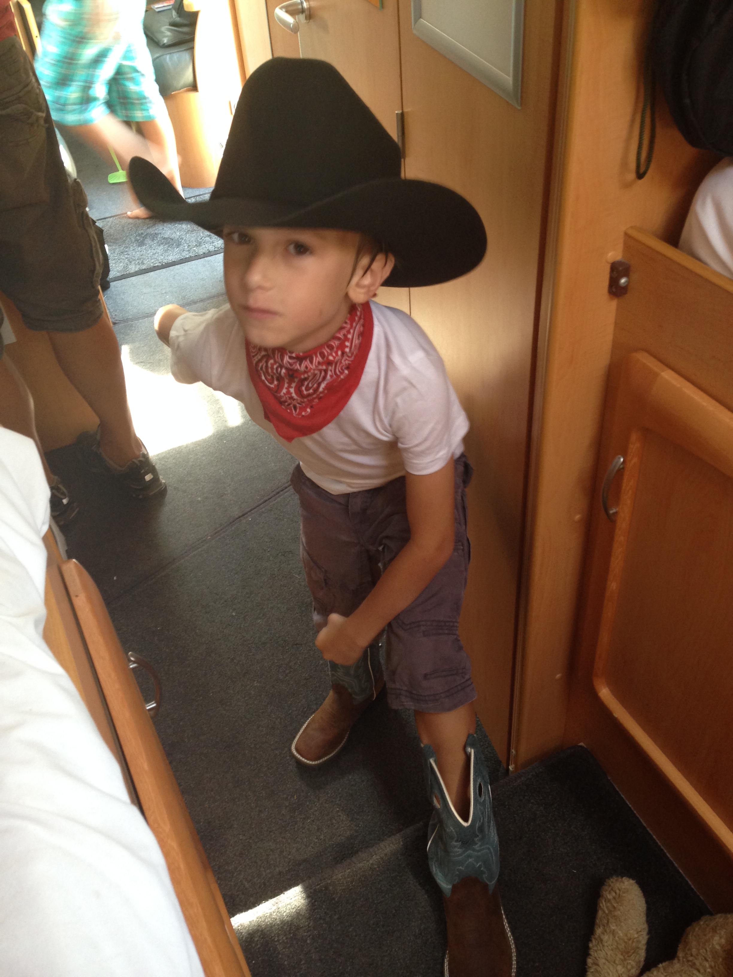 On our way out of town we called in at Lamme’s, Cowboy Outfitters. Kate and Mum had stopped there hours before on their way to the airport so the staff seemed unsurprised by our arrival and the kids insistence that they wanted to be dressed head to toe in Western Gear. We settled on a hat each and Charlie used his birthday money to get a pair of boots. We had to talk him out of the belt and whip that he felt were essential to really set the outfit off properly. He has pretty much slept in the boots ever since!!
