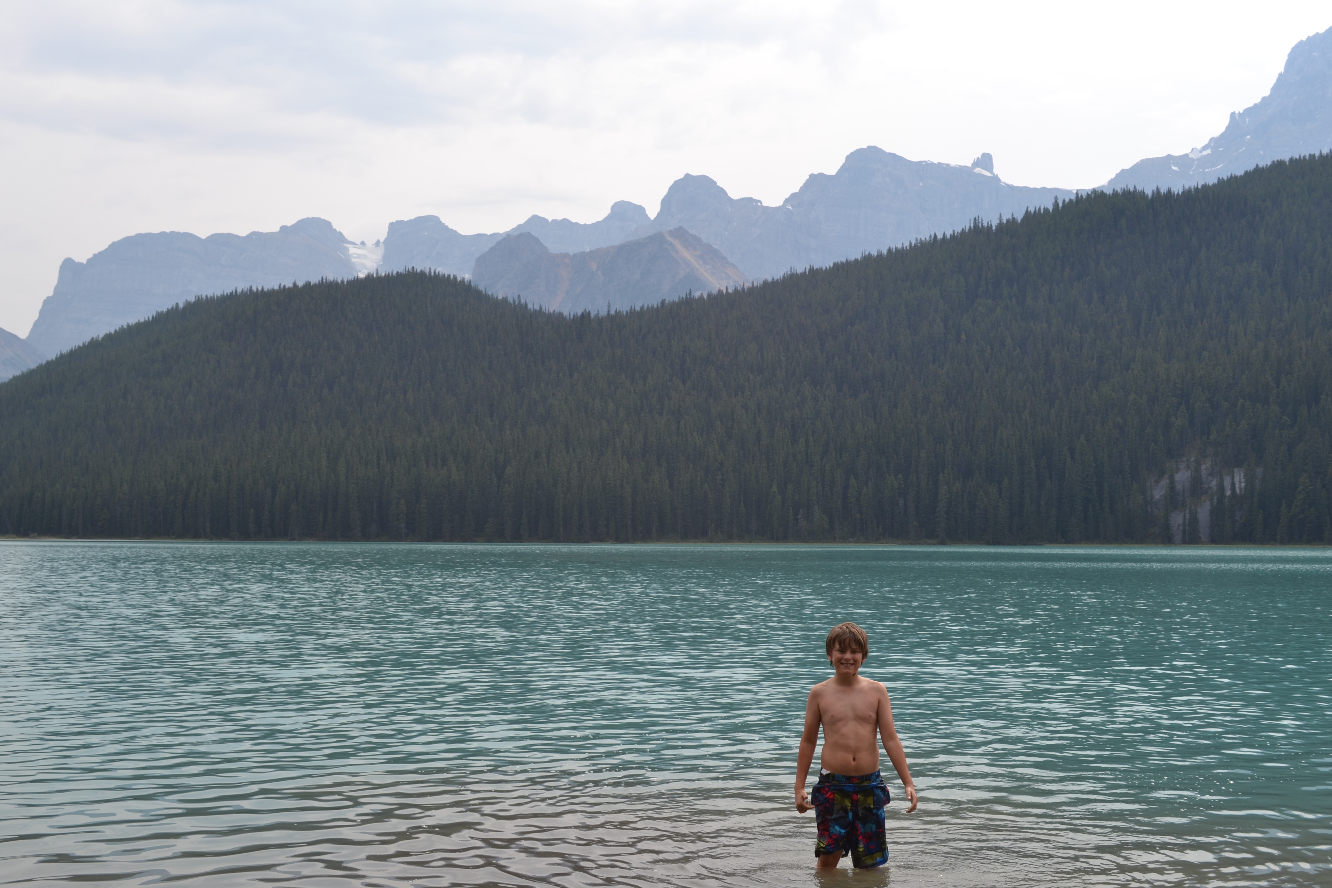 One of the best bits has got to be pulling off the stunning Icefields Parkway that runs through this part of the Rockies at any of the sparklking lakes and taking a dip. Cold doesn’t come close to describing the numbing experience however, for our shower shy kids it did offer an invigorating, refreshing and cleansing experience!!