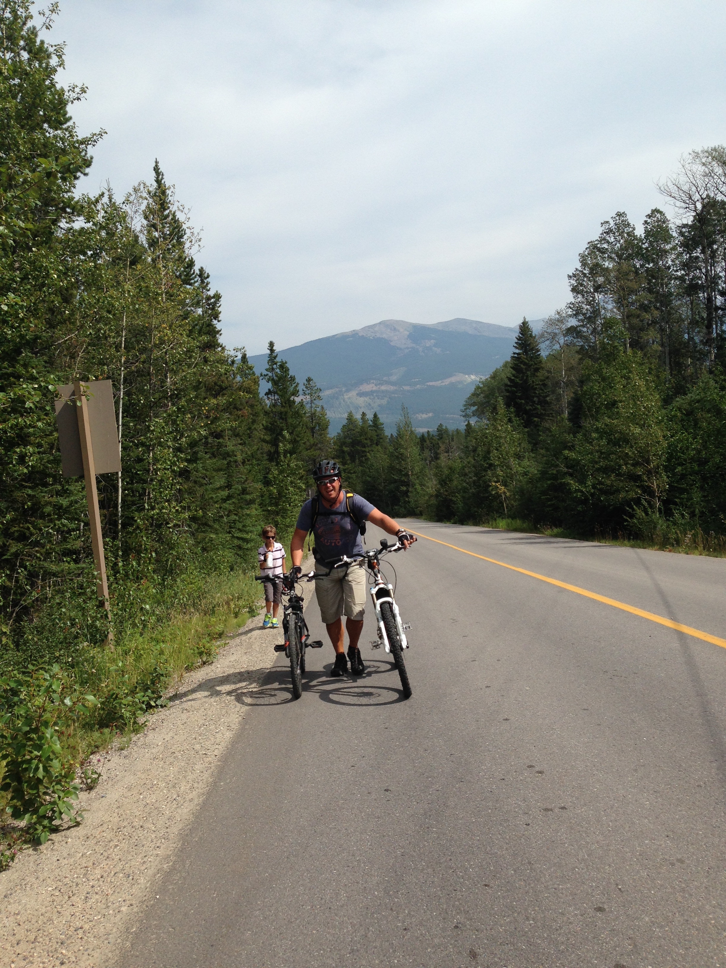 We then took the very nice, very flat, bike track into Jasper town. A very very overpriced and touristy town, which we managed to escape having only bought a couple of ice creams and a sticker for our trailer. Amazing what the kids try to persuade us they NEED and then minutes later have forgotten about completely.