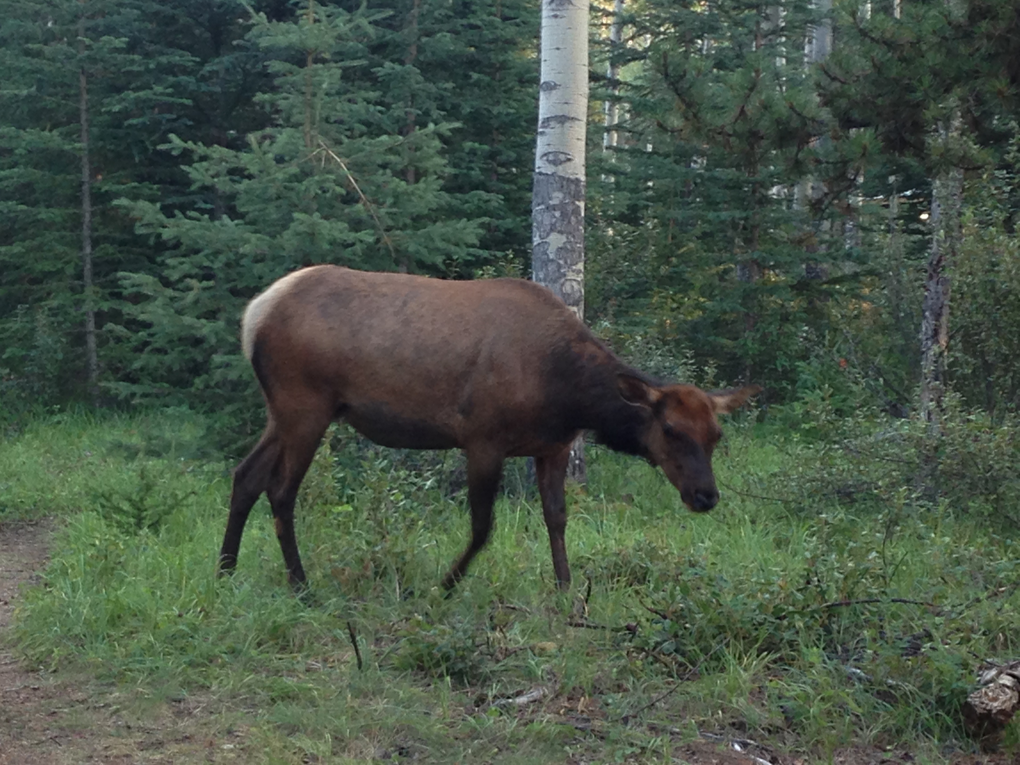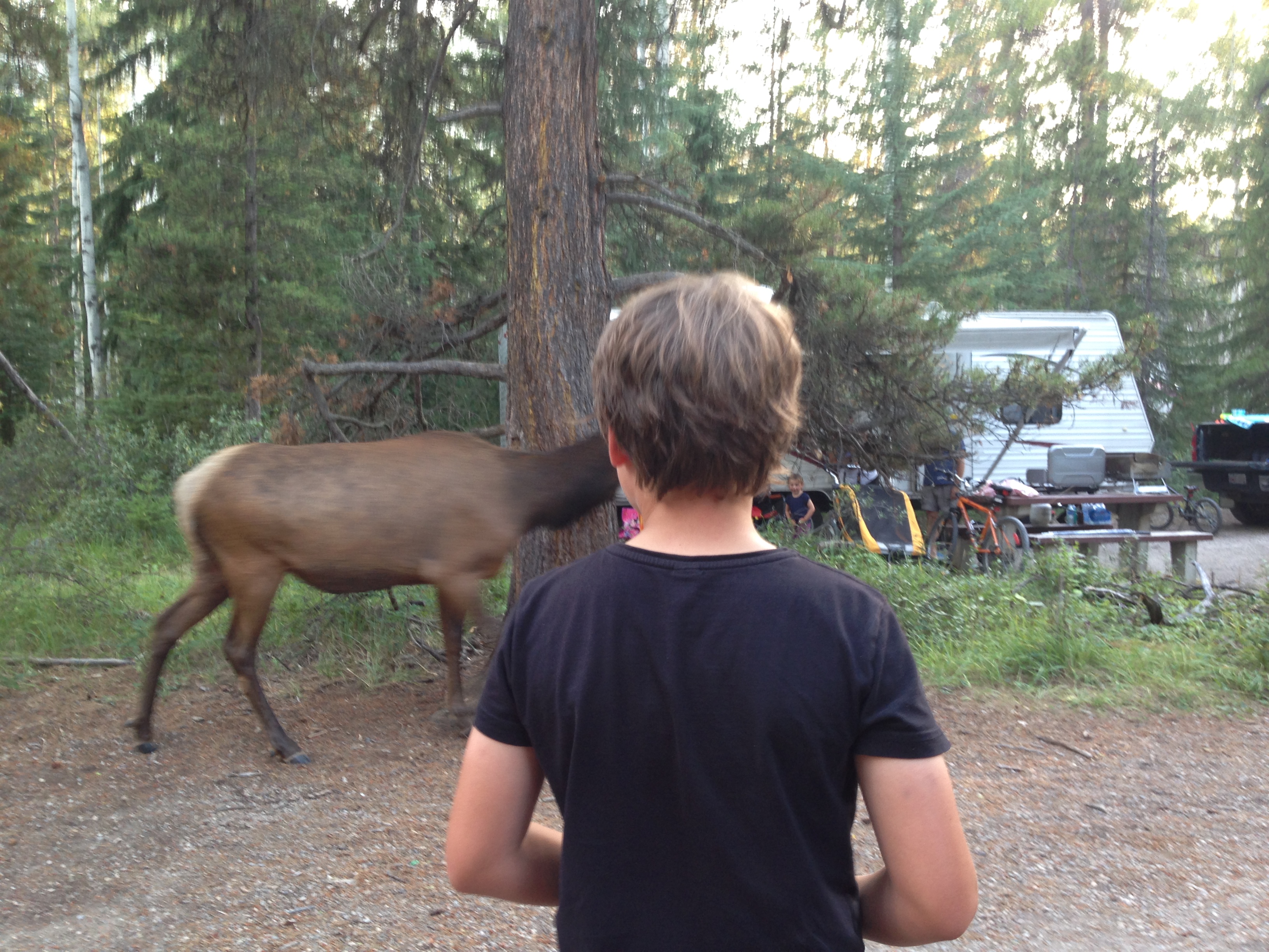 Back to the campsite and suddenly there was an enormous elk wandering around the pitch opposite us. Got less than 5’ away from us. Truly incredible. It sauntered over to a chaps BBQ and sniffed around his trailer. Hilarious. I wonder at what stage we will get totally blasé about this wildlife encounters!!