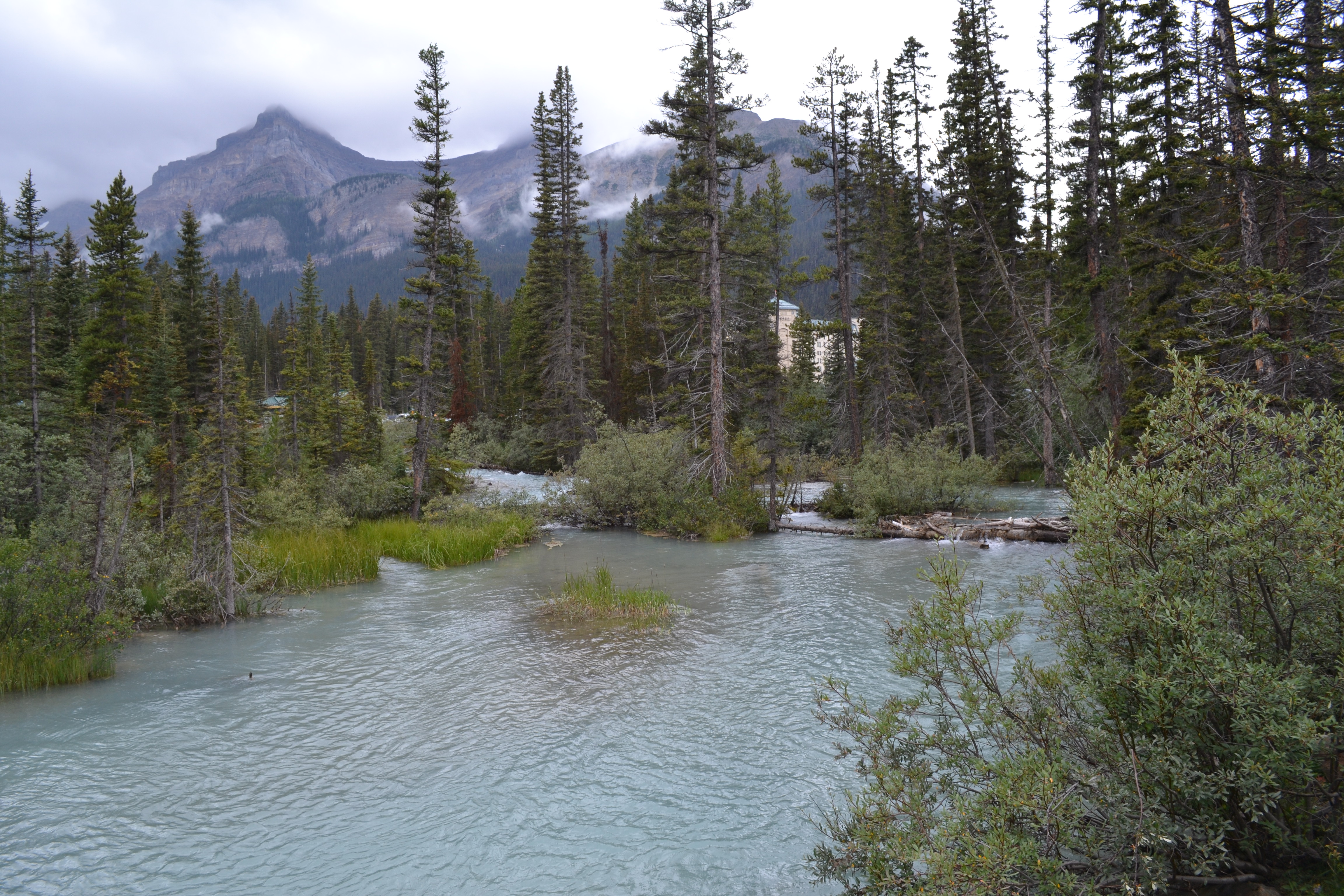 So 2 days later we had experienced all of Lake Louise. Tiny town but somehow packed with tourists. Our campsite although on the edge of the train track also runs parallel with Bow River. An incredibly fast flowing river of an almost turquoise colour. Apparently there are bears everywhere – yeah right, we have wandered up and down them and not seen one. I swear they put those warning signs up to excite the tourists!!