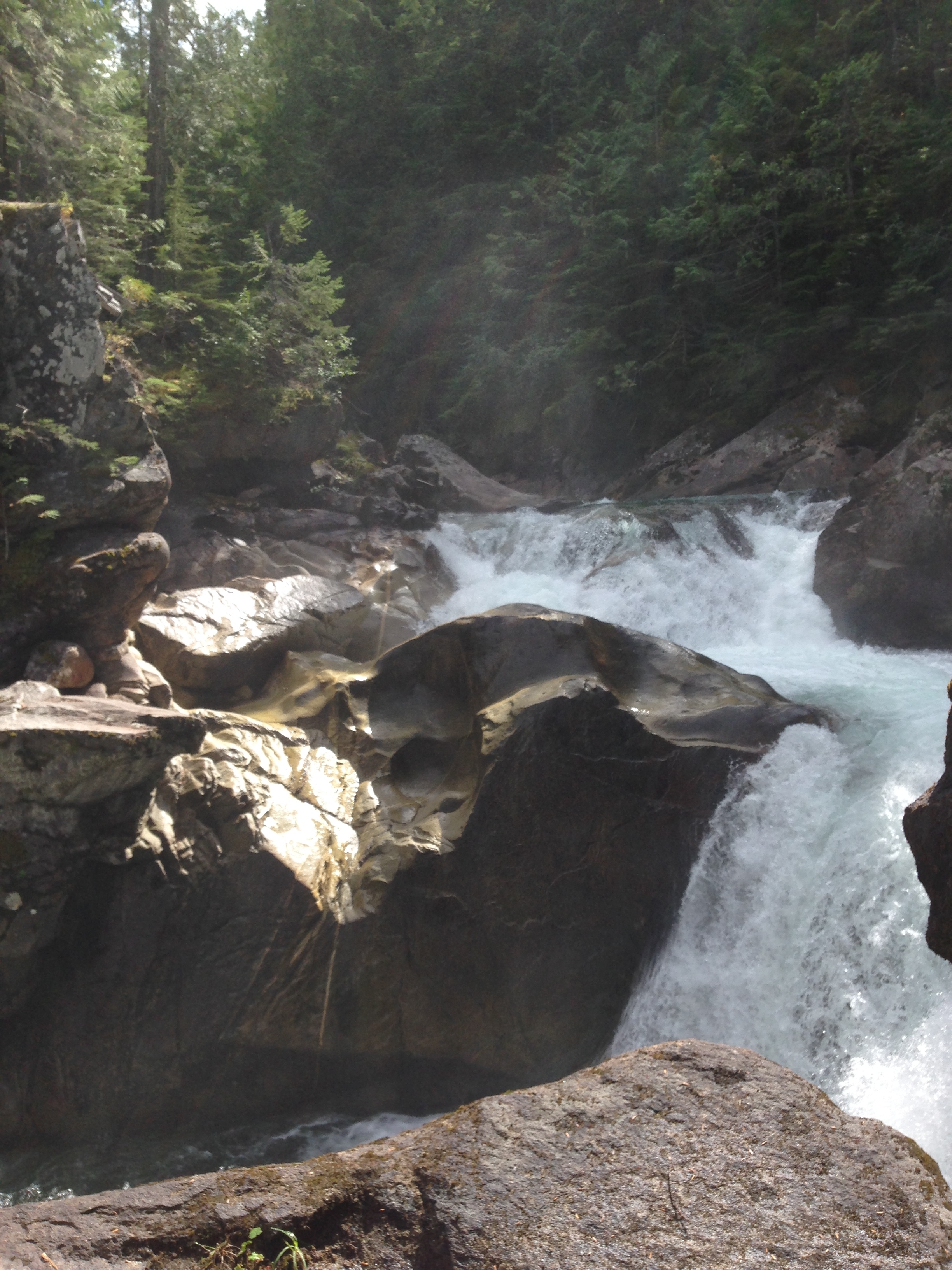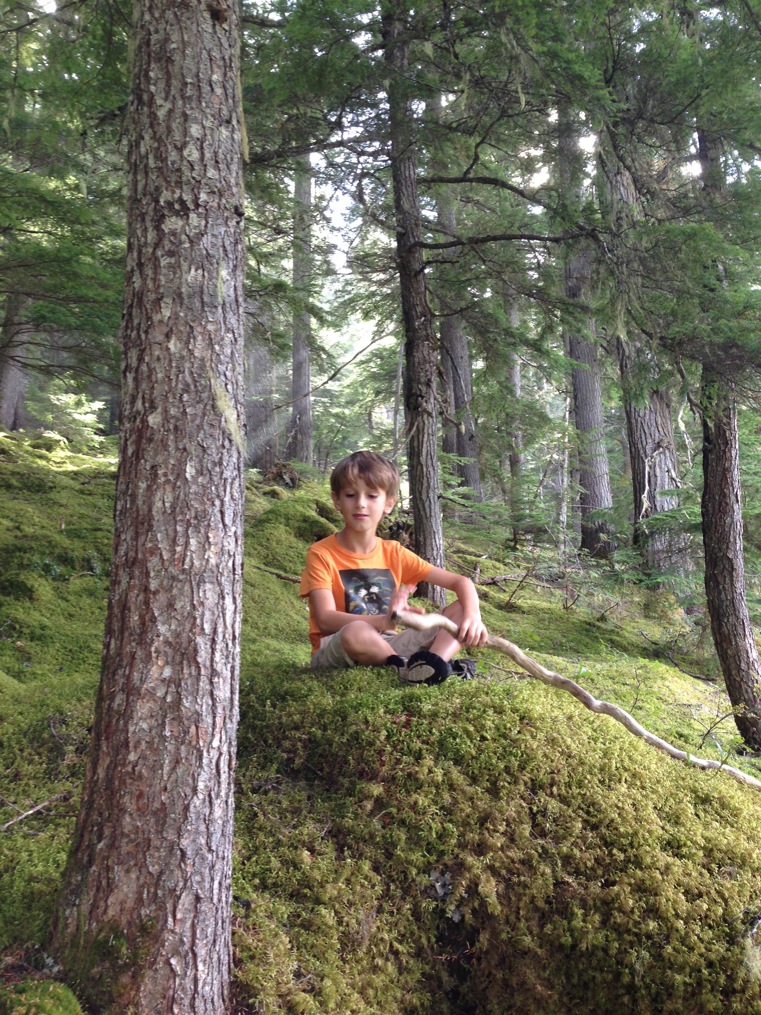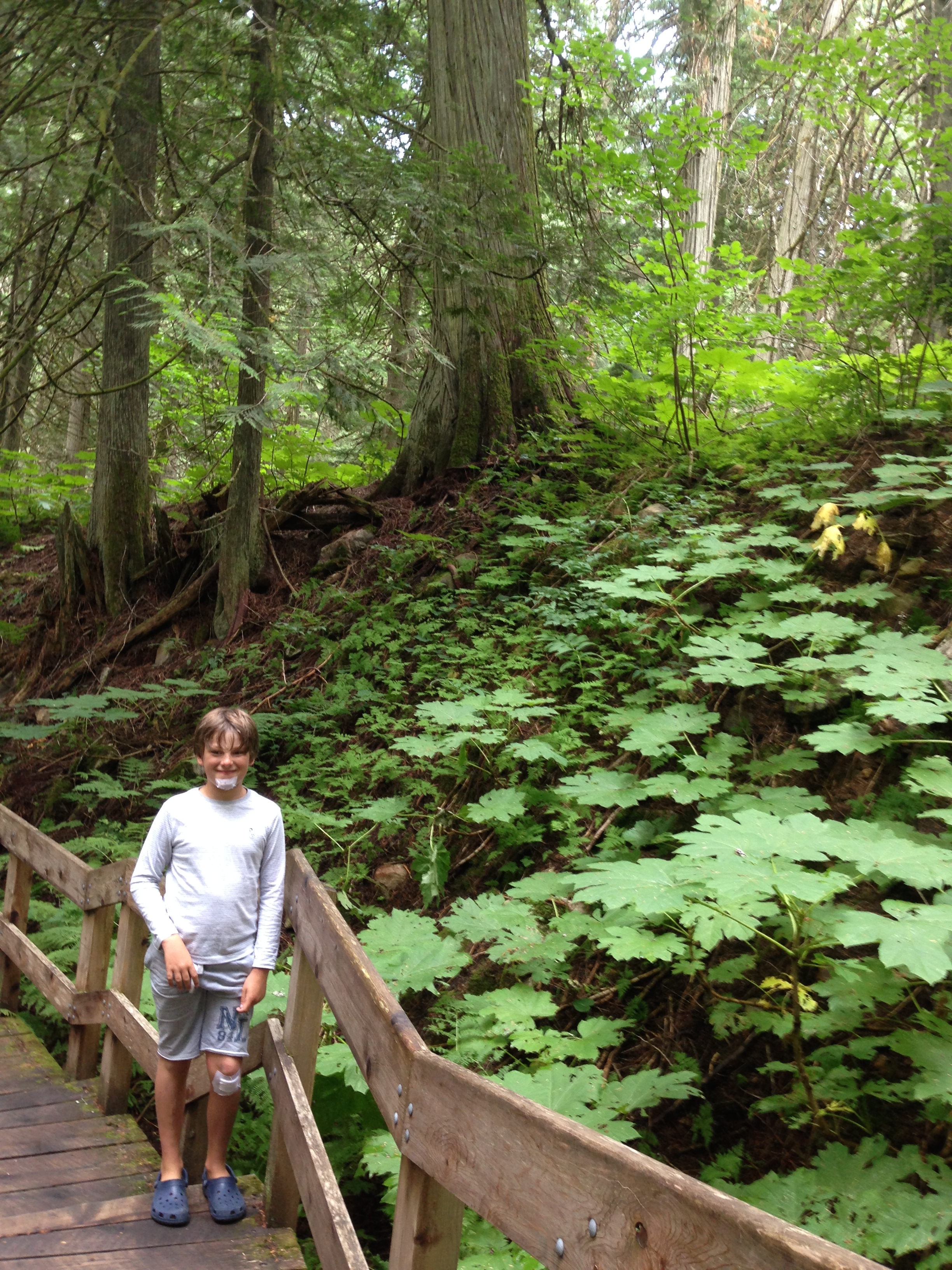 So we headed out from the campsite on the trail over the suspension bridge, which crosses the creek and followed it up through a beautiful cedar forest. The forest floor was covered as far as the eye could see in a blanket of moss. It was like being in the middle of a Tolkien scene.