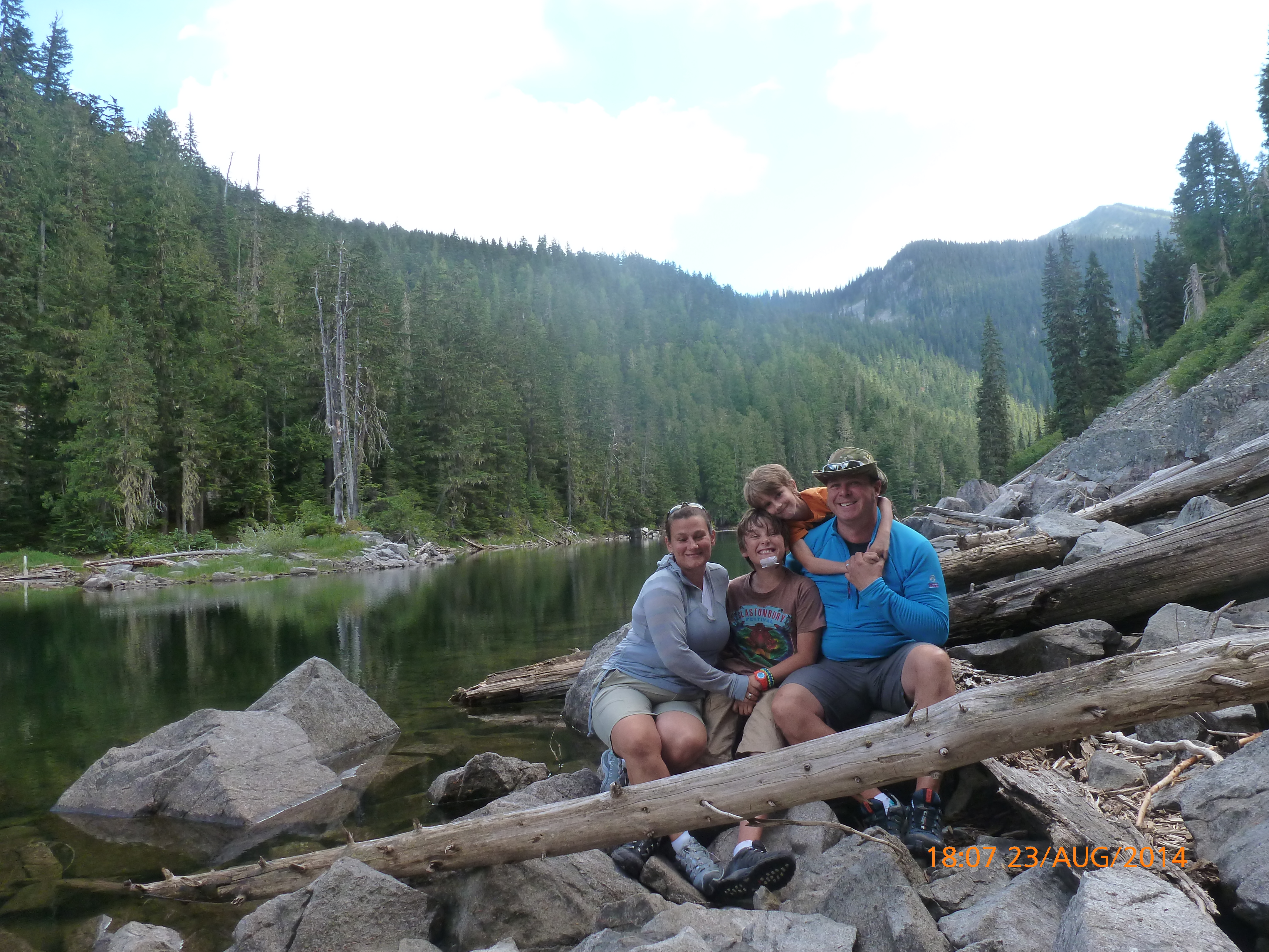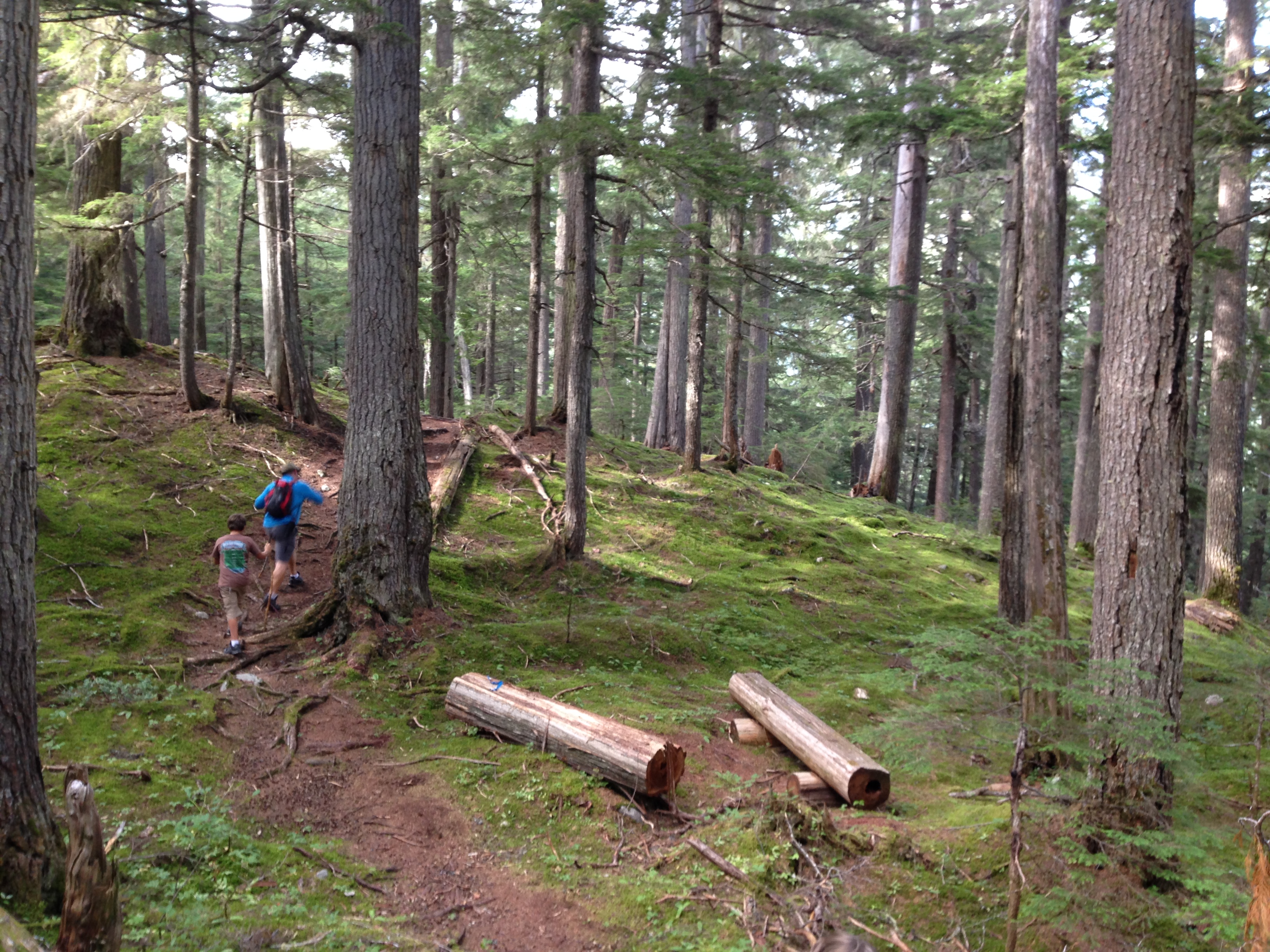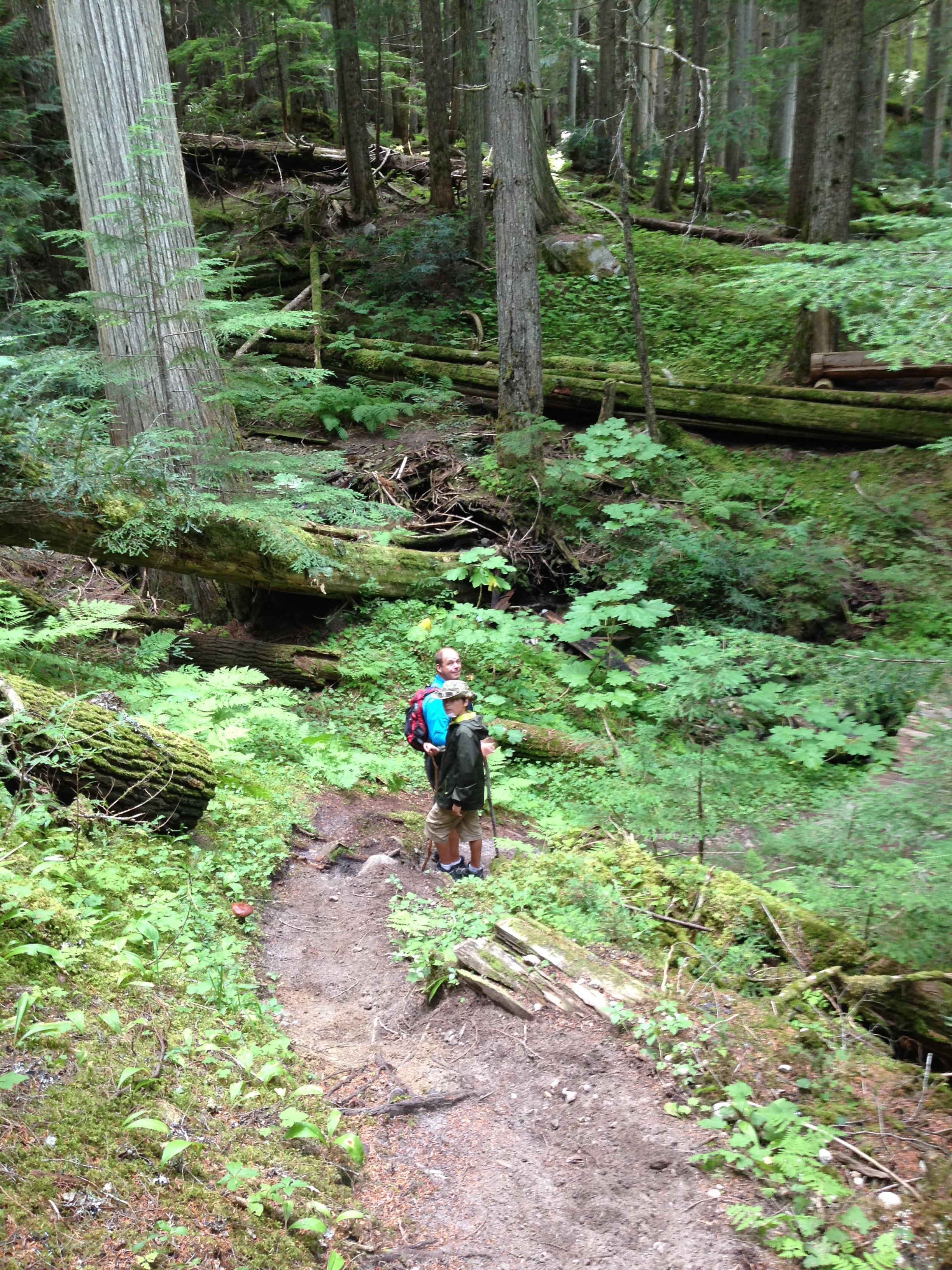 We had chosen a hiking trail, which said it was moderately hard taking you 8km to a lake. “A great low elevation hike” it said. Ahem!! Also warned that it led through “prime bear habitat” so we splashed out on a can of bear spray to add to our arsenal. At $40 a can I sincerely hope we won’t have to use it too often. Considered a ‘weapon’ you have to sign a waiver to say you won’t use it on humans – a nice lady in the shop suggested it was inappropriate say to use it on one’s husband in an argument. Good to know! They also suggest ‘noise makers’ like bells or whistles so you don’t surprise the bears by just appearing in their territory. Despite having 2 extreme ‘noise makers’ in the kids we also took and used our whistles.