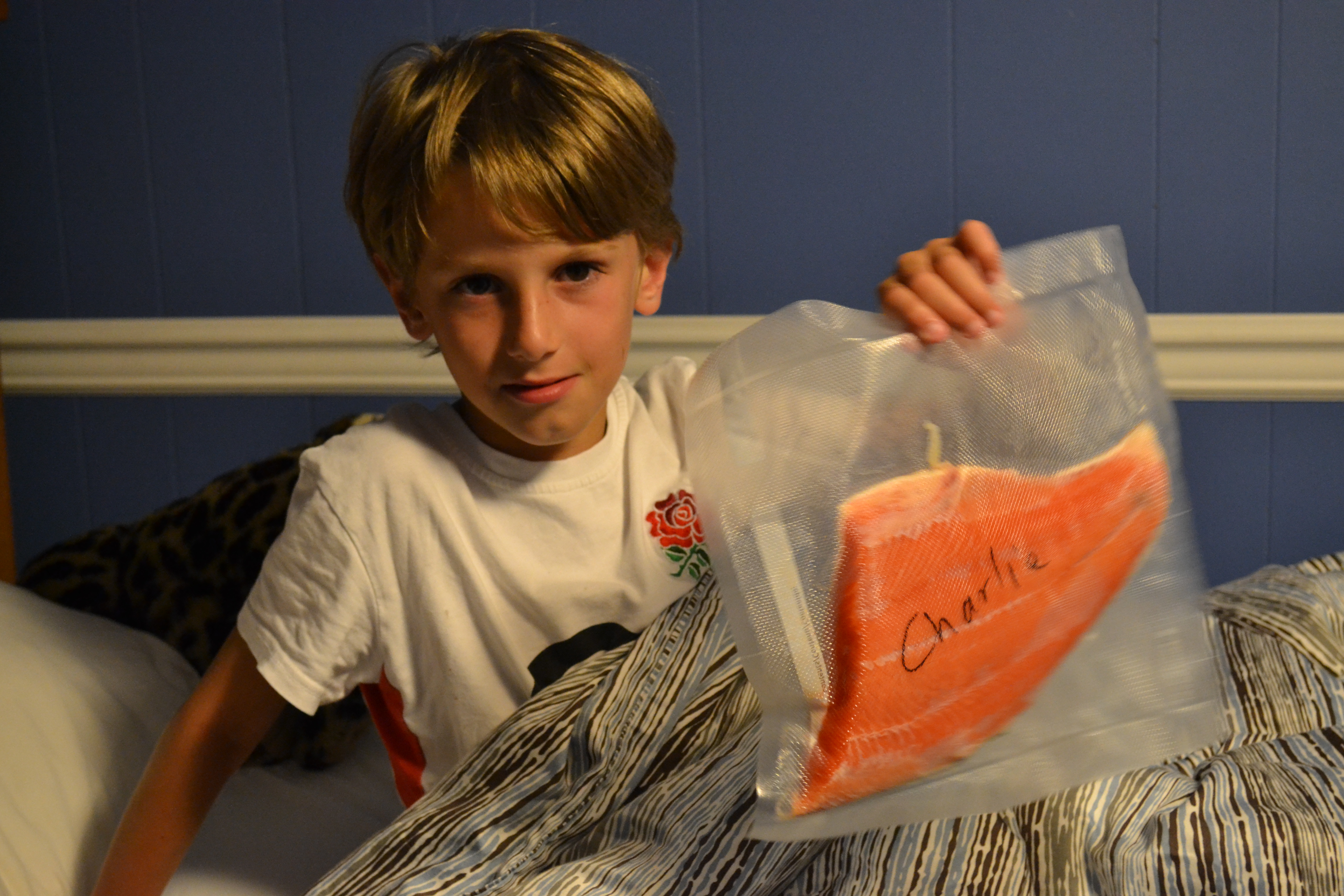 Home and then we all stood, watched and offered moral support to Norb and Barb as they cut and filleted 14 fish, then vacuumed packed them ready for the freezer. The kid’s fish were all labeled up and ready to go in the freezer in Frankie. So lovely to see the satisfaction on their little faces at this most simple but pleasing of tasks.