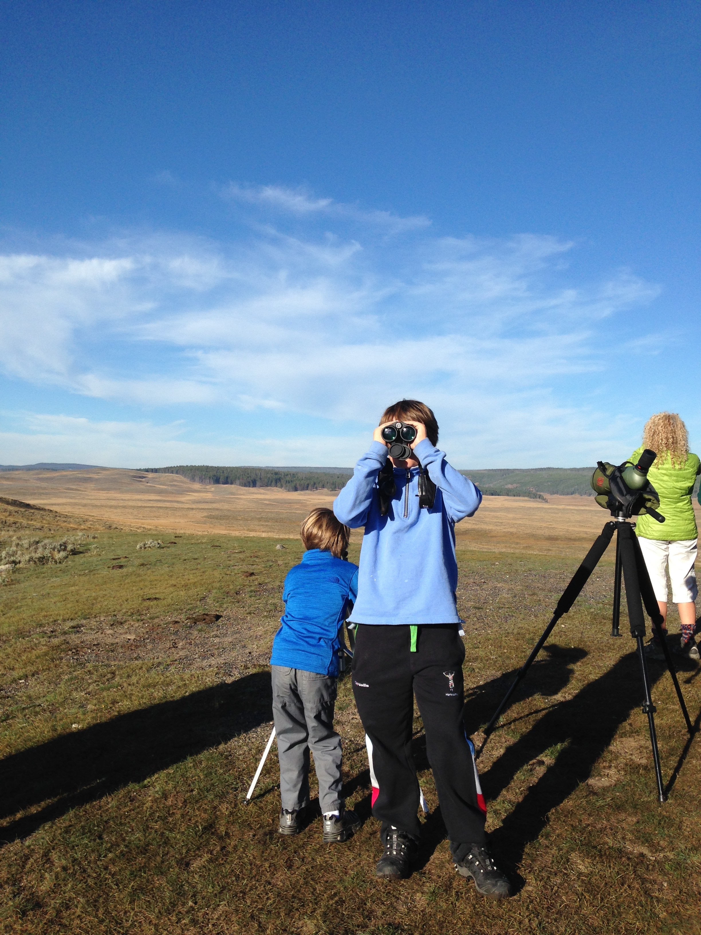We headed to Hayden Valley on our way back to the campground and stood with the dozens of other nature spotters, complete with binoculars and spotting scopes trying to see some of the wildlife. We were in luck. A huge herd of elk wandering across the valley were suddenly scattered by the arrival of a grizzly bear. Our first grizzly bear. In truth it was a very long way away so I’m afraid I have no pictures. I tried desperately to get a photo down the scope with my iPhone but I just couldn’t capture it – so you’ll have to take my word for it!