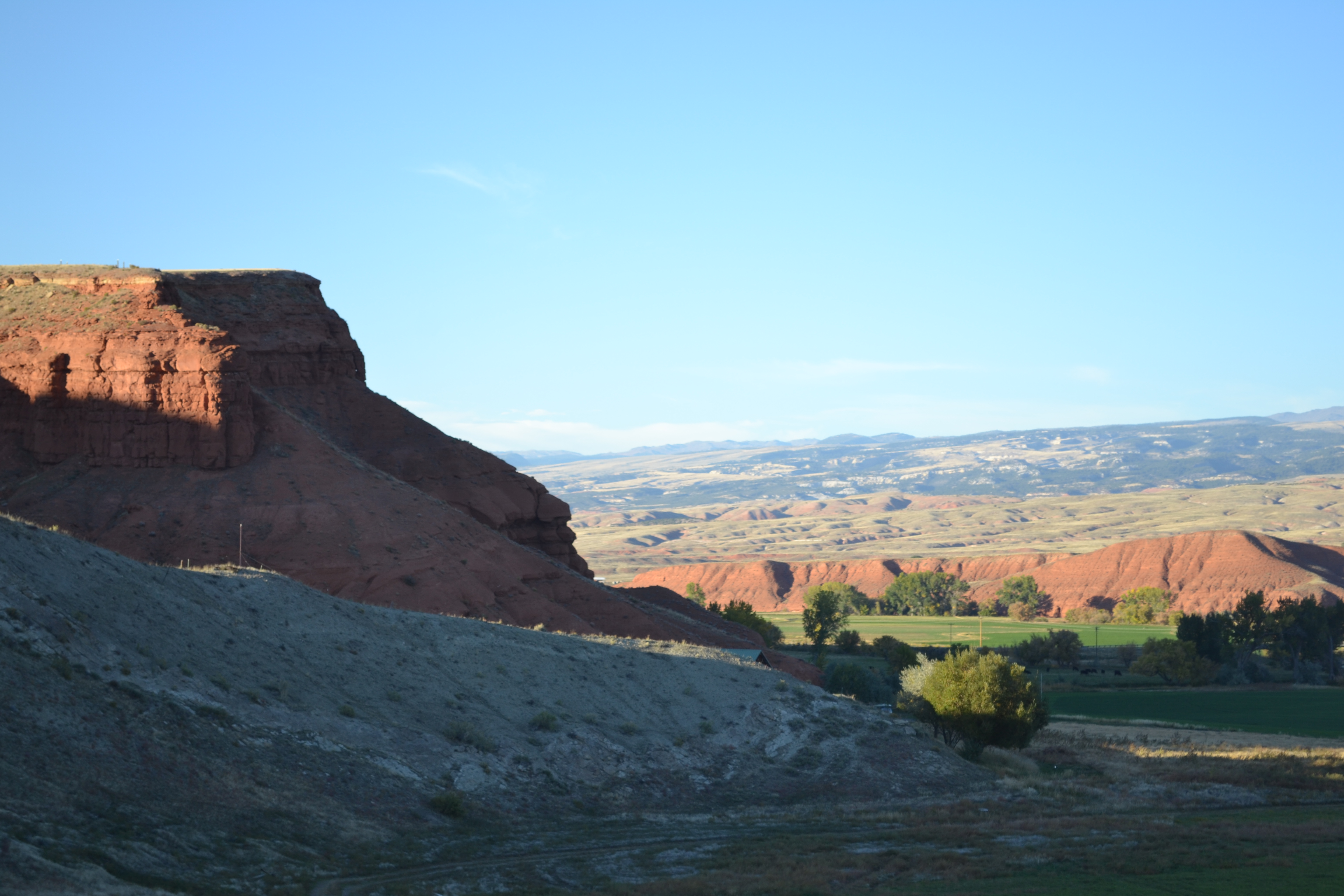 We headed out of Cody on Wednesday out on Route 14 and just 4 miles out of town we were faced with endless pale yellow prairies against blue sky. Wyoming is the least populated state in the country, with 97,000 sq miles so bigger than the UK and with a population of only 509,000!! We drove through the town of Emblem that proudly announced a population of 10…