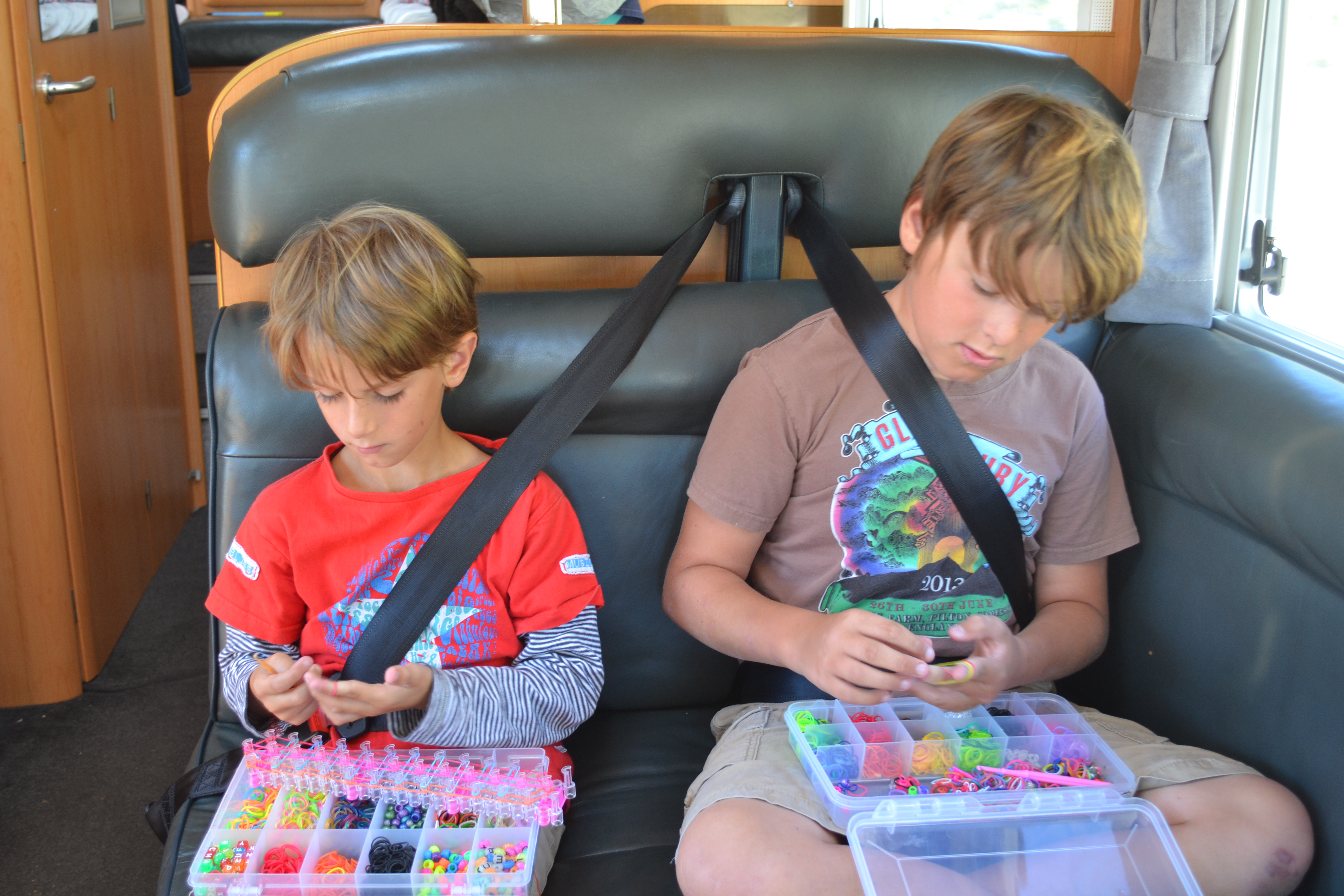 They’ve started a loom band business called Loomies (set up in Canada where a loonie is a $1 coin). They sell the bracelets at campgrounds and appear to have great business sense. Charlie observed that if you find families with young kids the kids want them and the parents can’t say no. They put on their best British accents and smile sweetly. Works a treat. They’ve made a fortune. They are diligently keeping track of profits and reinvesting in materials to make more. Brilliant. Just as I was writing this they started arguing in the back. So I told them the irony of their kicking off while I write about how close they are and Will says “What? I bet you two fight when you’re at work!” Priceless.
