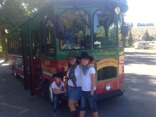 We took a Trolley tour of the town, (which is where we learnt all this stuff about Buffalo Bill!!) which was great fun. More interesting stuff about Cody is that the Irma Hotel in town (named after his daughter) has a nightly shoot out and the town is apparently the Rodeo capital of the World due to the fact that they have a nightly rodeo in June July August. So we donned our cowboy hats and boots and did our best to stop the kids buying every cowboy accessory known to man – we decided Charlie did not actually need spurs!!