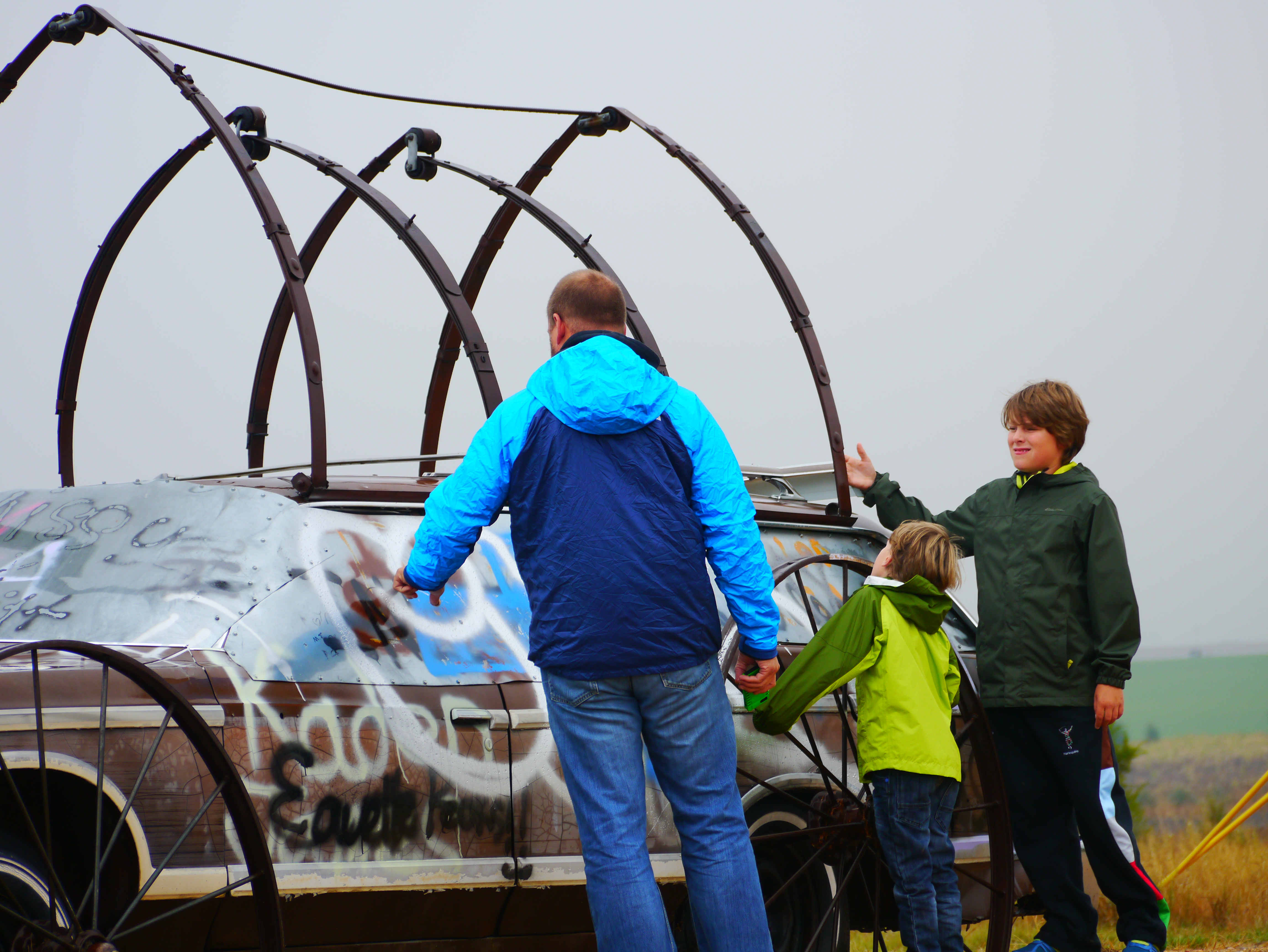 Then we were in Nebraska and another short detour to visit Car Henge. Yes it really is what it sounds like. Built in 1987 in the town of Alliance, it is a giant sized replica of the UK’s druid ruin. This one being built entirely out of cars. This was definitely worth the detour for petrol head and sons!!