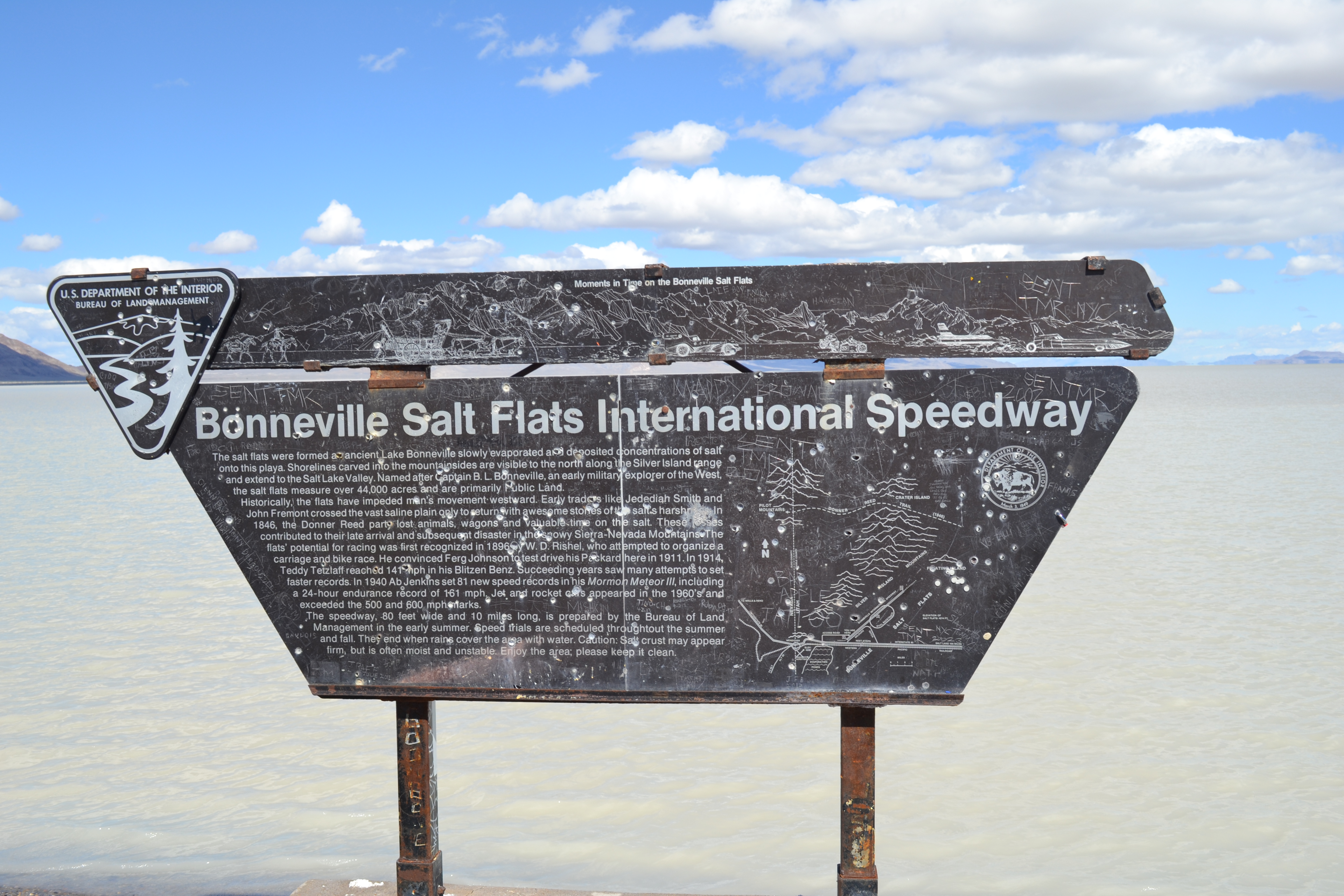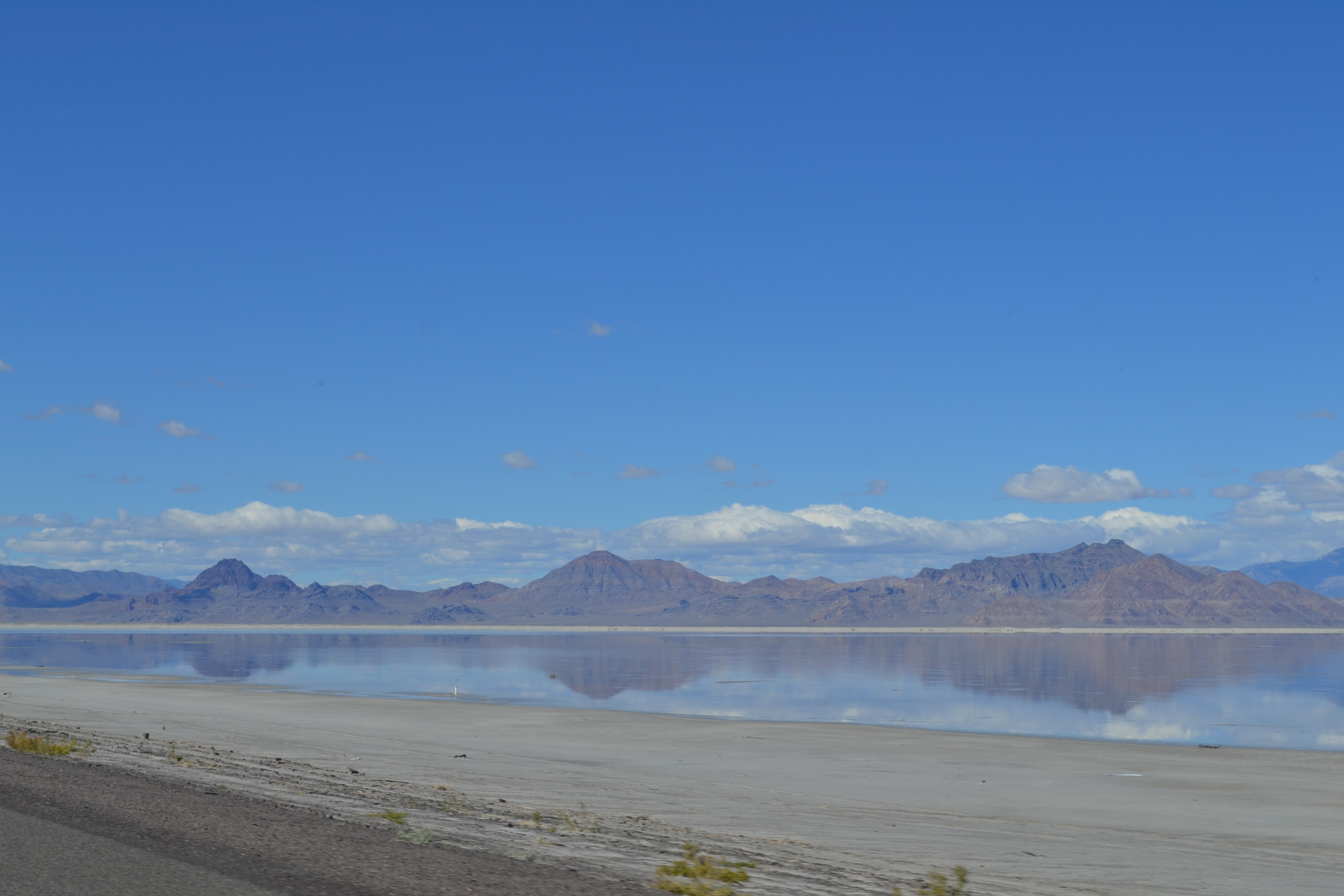 So on Wednesday 1st October we headed out of Salt Lake City towards the west across what John was most excited about – the Bonneville Salt Flats. So out of the city and pas the Great Salt Lake and it’s evaporated basin, along 40 miles of a long straight road with salt flats on either side we got to the vast salt flats of Bonneville which cover 150 square miles and apparently are so flat you can see the curvature of the earth – not sure about that honestly!!