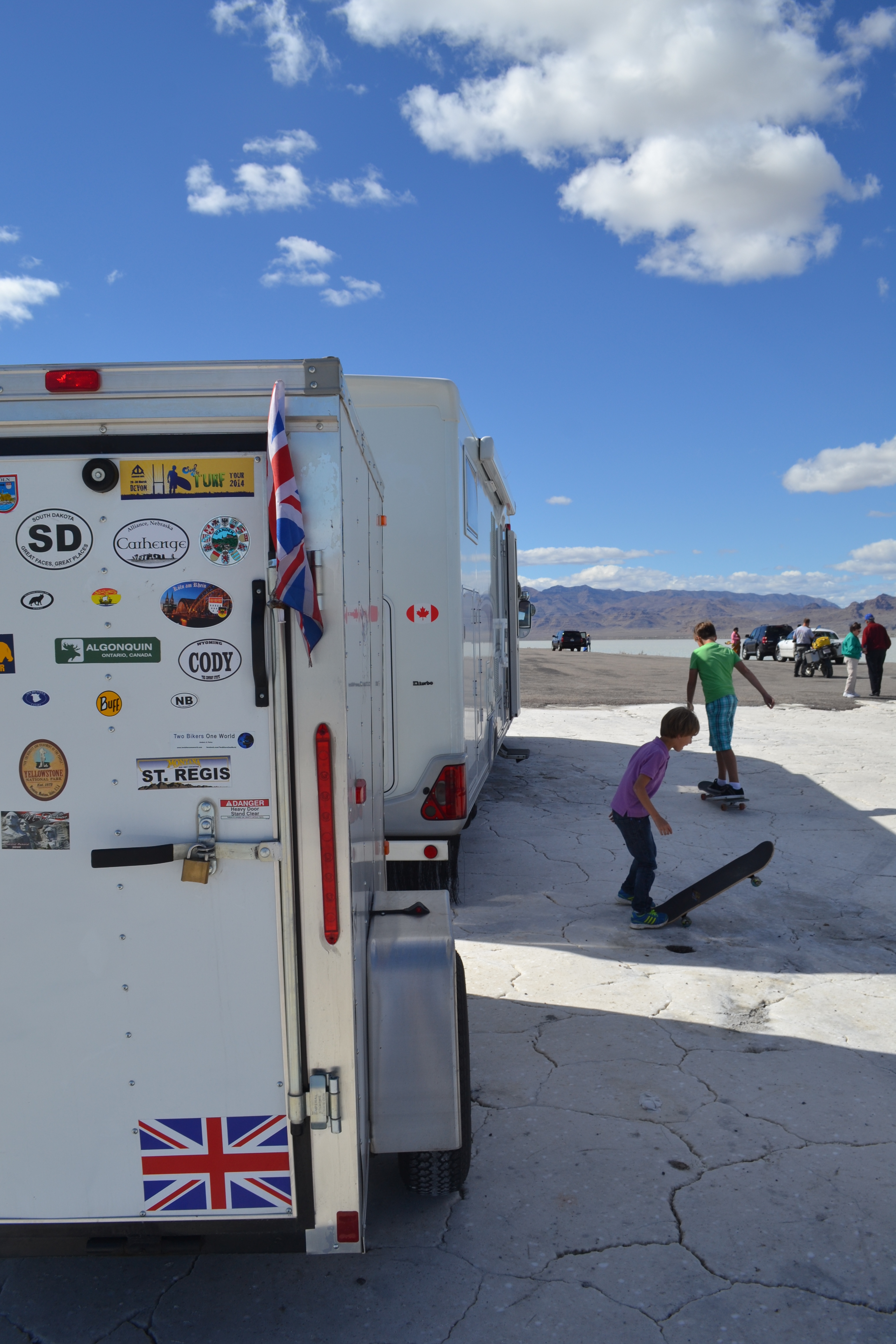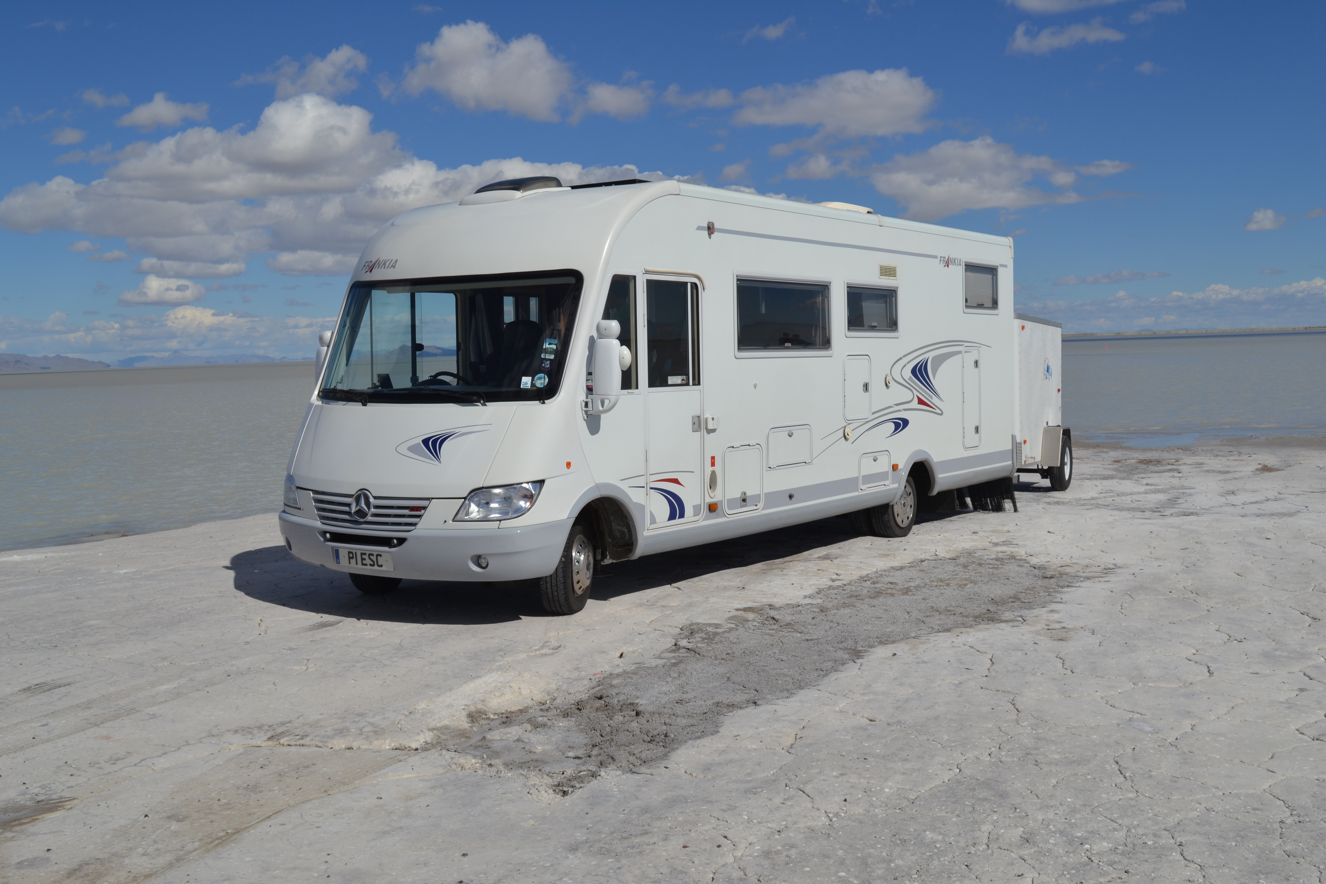 We got there hoping that we would be able to actually drive over the slat flats as 1000’s do each and every year having travelled here to drive where the land speed records have been made and broken for so many years. However it was flooded when we got there so we had to contend ourselves with taking endless photos of Frankie on the salt flats!!