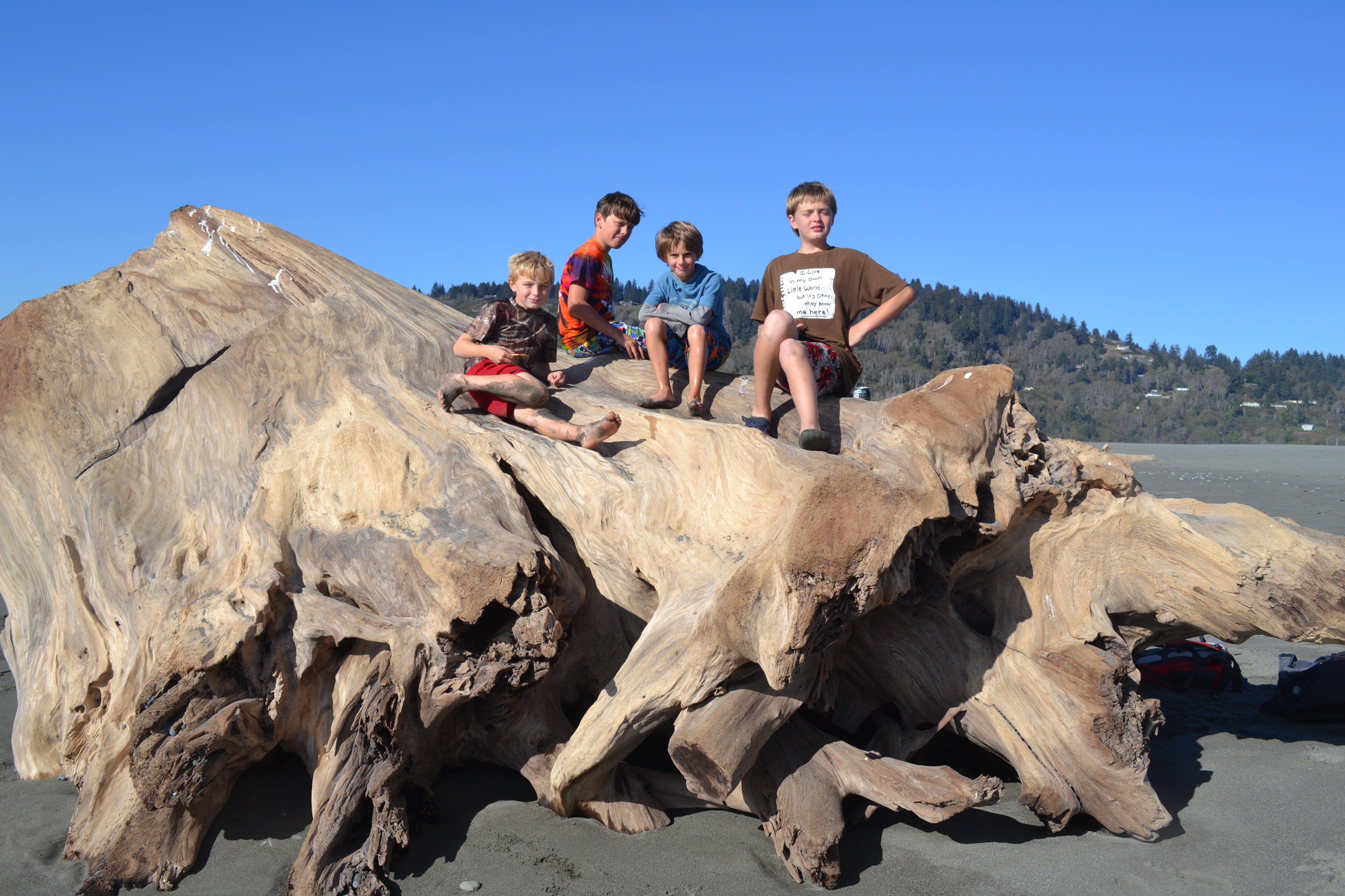 We hadn’t known how long we would want to spend in the Redwoods and weren’t sure at what stage we would tire of oohing and ahhhing about the size of them. They are incredible and mind blowing to think that some of them are 2000 years old and over 300’ high. But we were shattered and so found a campsite at the mouth of the Klamuth River and thought we’d have a quiet afternoon. The kids made friends immediately with 2 boys who live here on the campsite, DJ and Tyler. We didn’t seem them for hours as they disappeared off round the site and nearby woods on their bikes. John got chatting to their Dad Tim and his wife Jessica, and the kids starting badgering us to stay an extra night.