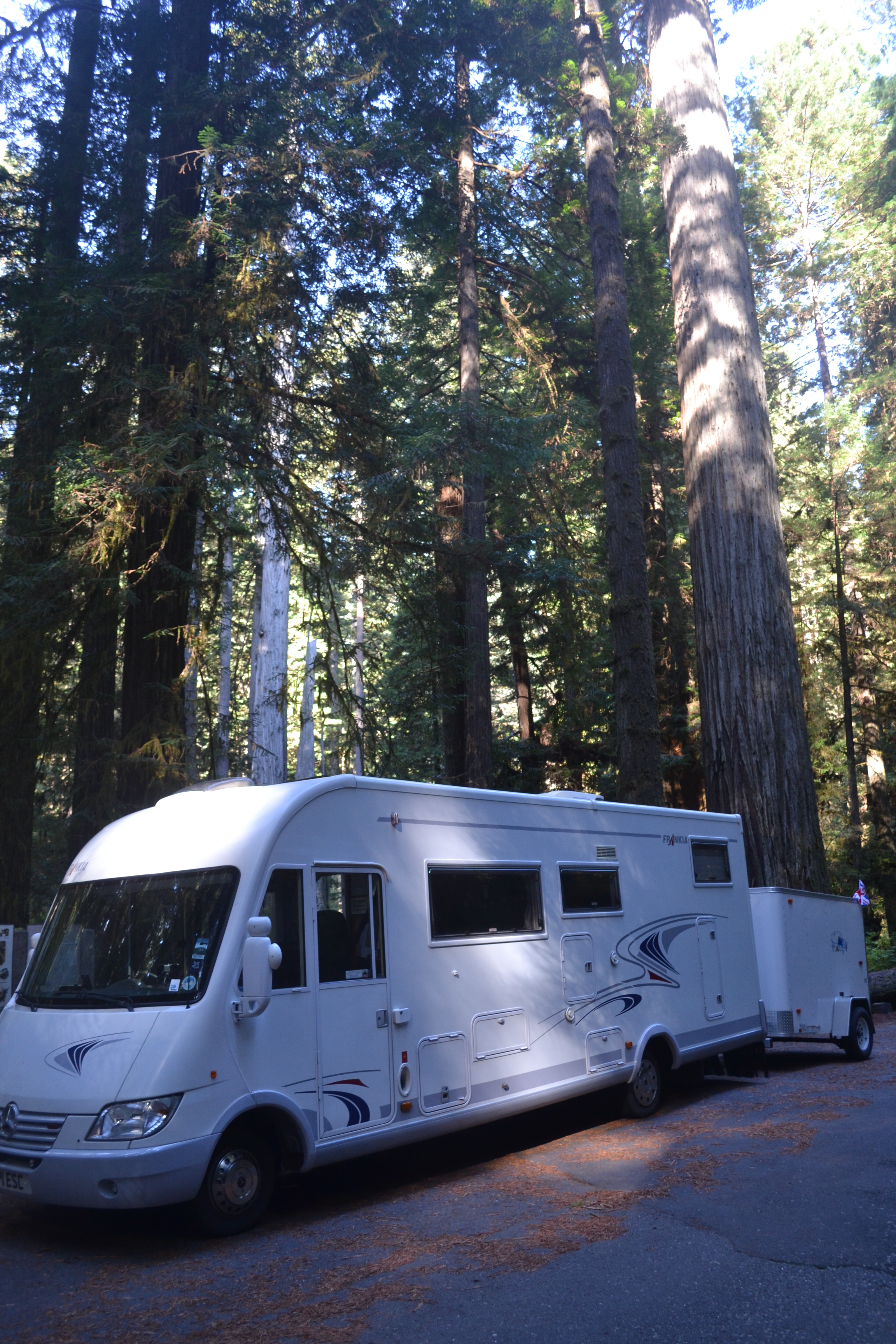 Back in Redwood. The beautiful summers day disappeared suddenly into the most intense fog I’ve ever seen. You couldn’t see 10’ in front of the van. Apparently it comes and goes like that. We kept hearing “If you don’t like the weather in North California wait 5 minutes and it’ll change!” and that certainly was our experience all the way down this bit of coast. But that fog helps the redwoods thrive! The parks are spread out and so it’s hard to get a sense of it a whole like others we’ve visited. However, the trees are UNBELIEVABLE!!