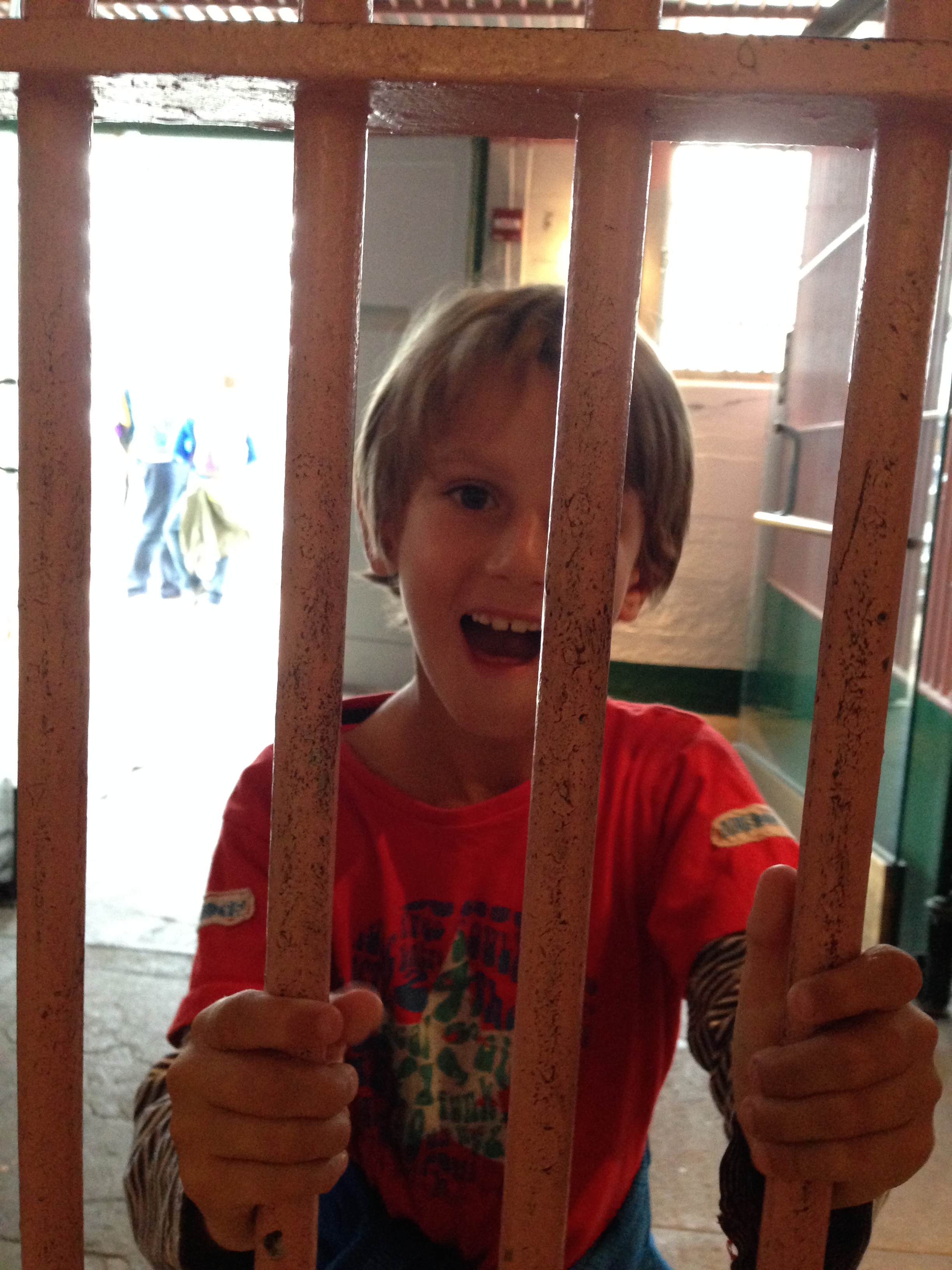 Highlights of the tour for us were meeting an ex prisoner #1239. William G Baker spent 3 years in Alcatraz and has written a book about his experiences. He was there signing copies and wrote the kids a message which made me laugh – “Be good!”. The other was a story from the audio tour about a prisoner who to stop himself going mad when in ‘the hole’ would pop a button off his shirt and occupy himself dropping it and searching for it again. Charlie was especially taken with this idea and it prompted many a conversation about how we might have felt imprisoned with the view of the city just there – oh and the smell of the Ghardelli chocolate factory just across the bay which must have driven the prisoners crazy!