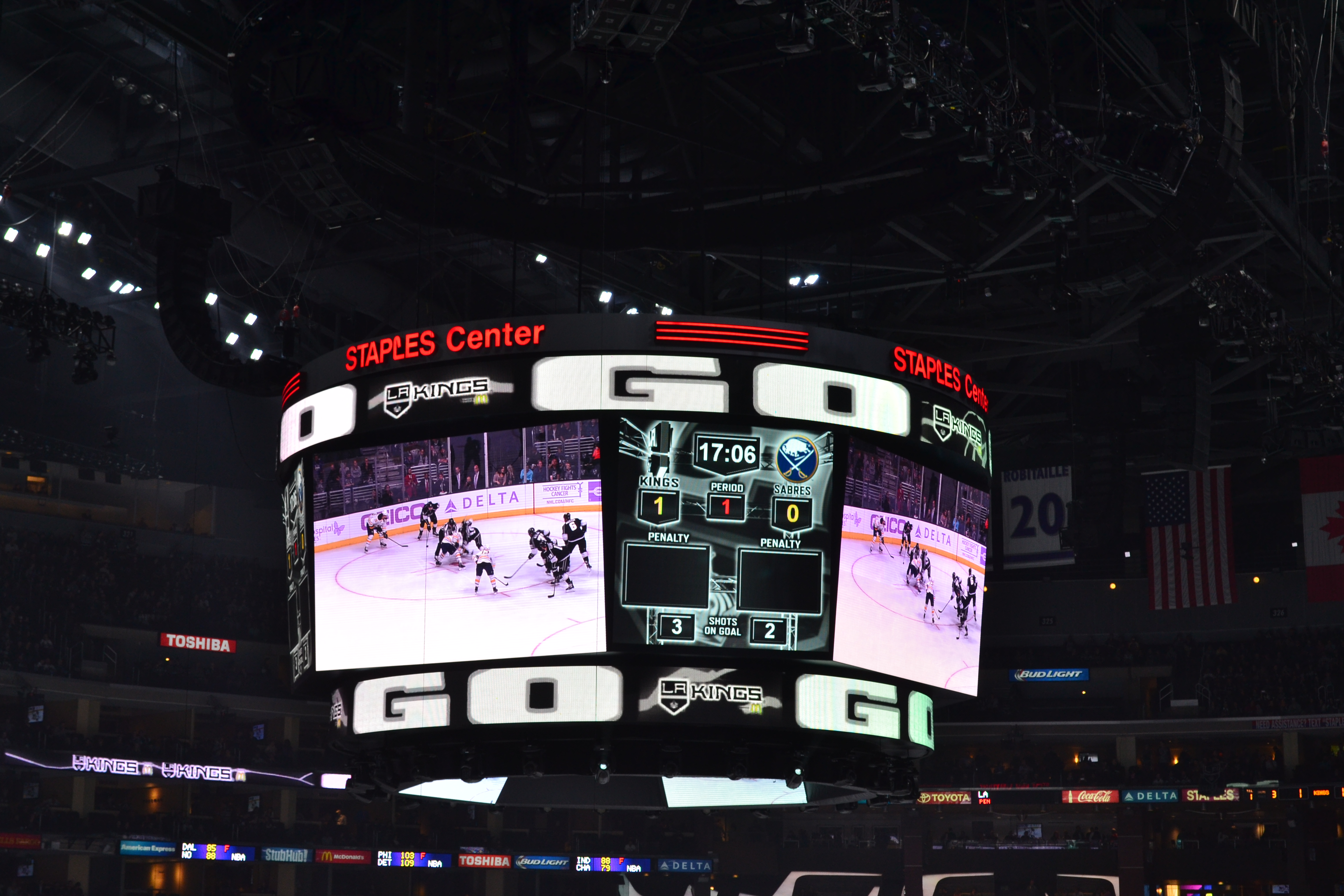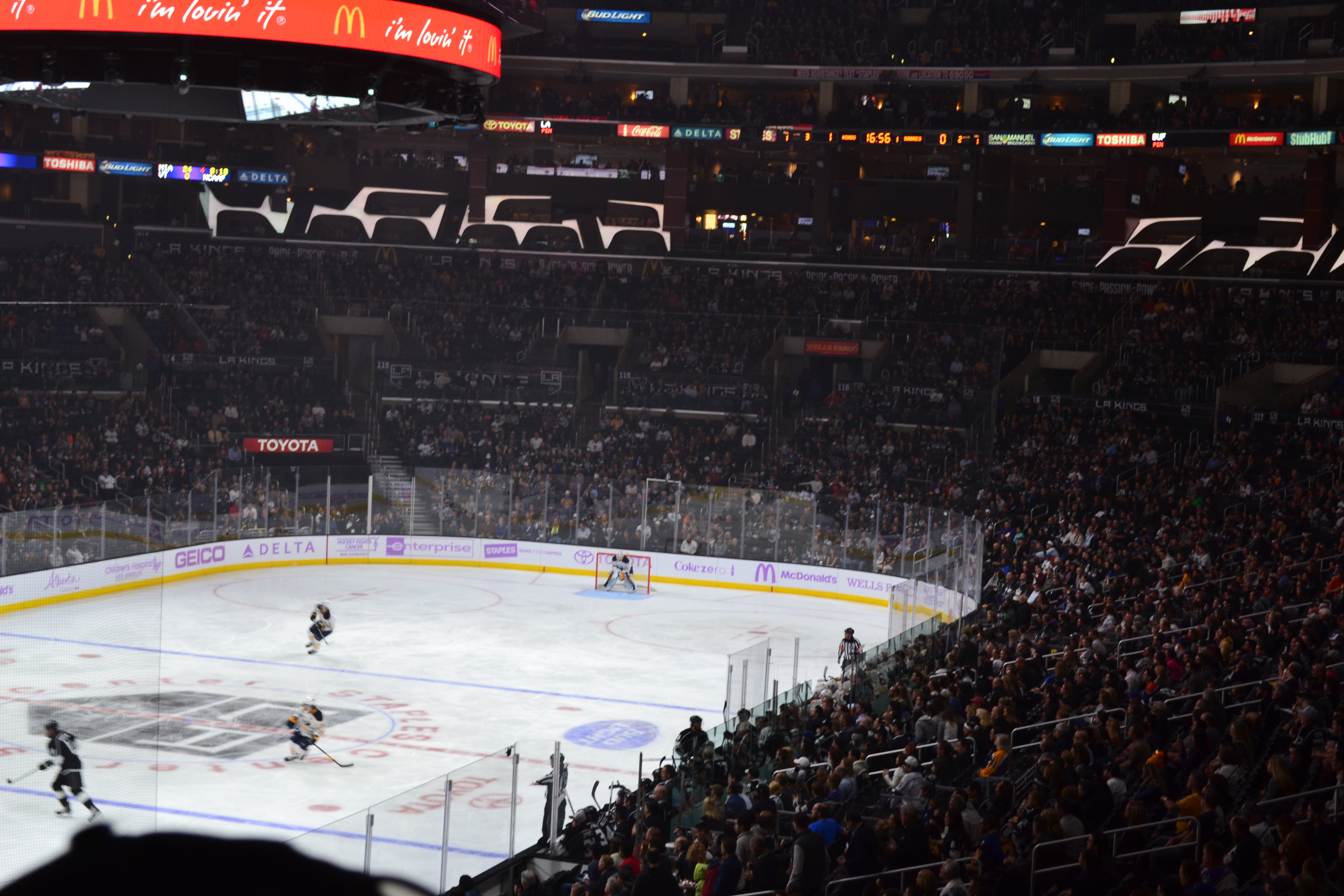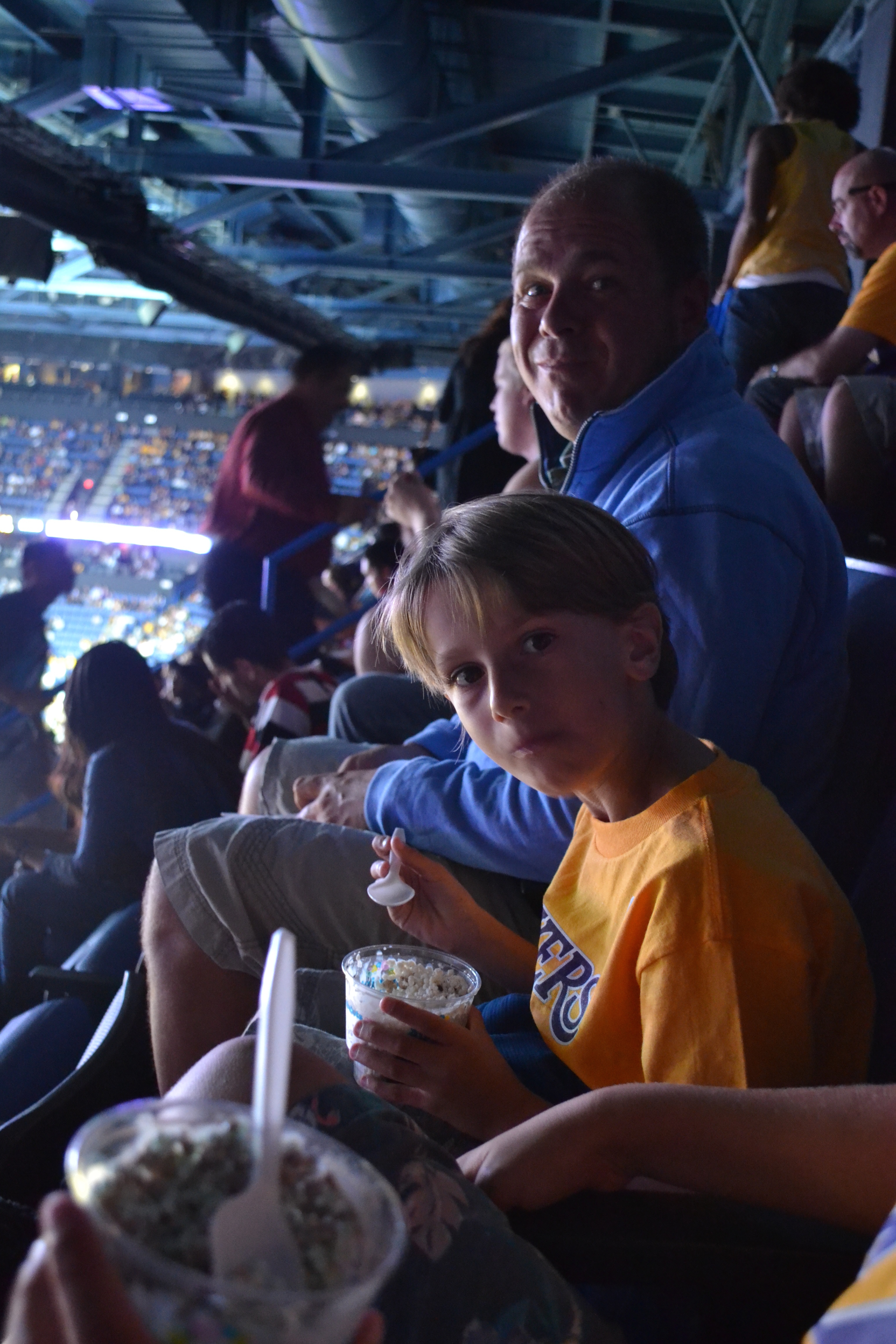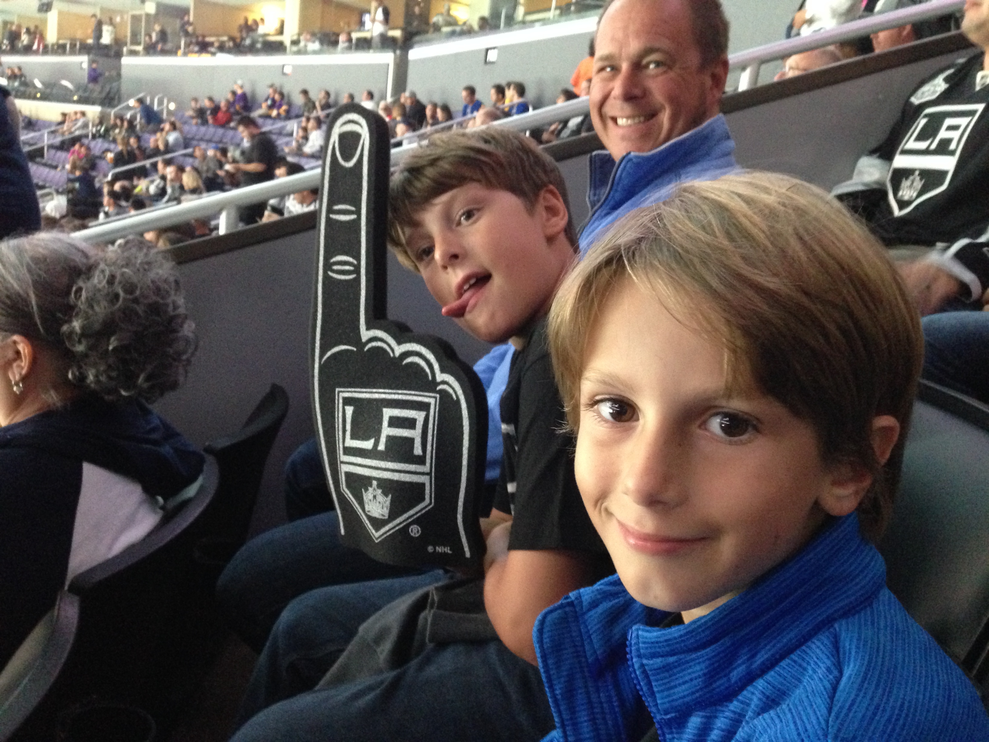 Headed down to LA Live and the Staples Centre that night to watch the LA Kings in action (yep we are racing through our list of US sporting events here). So Ice Hockey this time. Another crazily fast paced game this time it appeared there would be no bikini clad dancing girls but that the main source of entertainment came from the fights!! The kids loved it all obviously. The audience demographic fascinated me. In front of us was a family with 2 tiny kids and 2 sets of grandparents in tow. A couple next to us so obviously on a first date. Groups of teenagers. It was great to see. The Kings were the Stanley cup winners last season and the kids have now adopted them as their Hockey team (sorry Norb!!). They chose their t-shirts as we went in Carter, number 77 and Kopitar, number 11. They both scored which was very considerate of them as it stopped any arguments between the kids. As I said the fights were the highlight of the action but there was the same razzamatazz to accompany the match. Similar to the Basketball with Dance Cam etc. but with the addition of Workout cam where the camera scanned through eh crowd and people flexed their muscles. Priceless. Also we were delighted to hear Organ Dude again. Playing a few familiar tunes ‘da da da da da da – charge!!’ etc. L.A. Kings won and the evening ended not with Man of the Match like in the UK but with ‘Who Got it Done’ – nice!