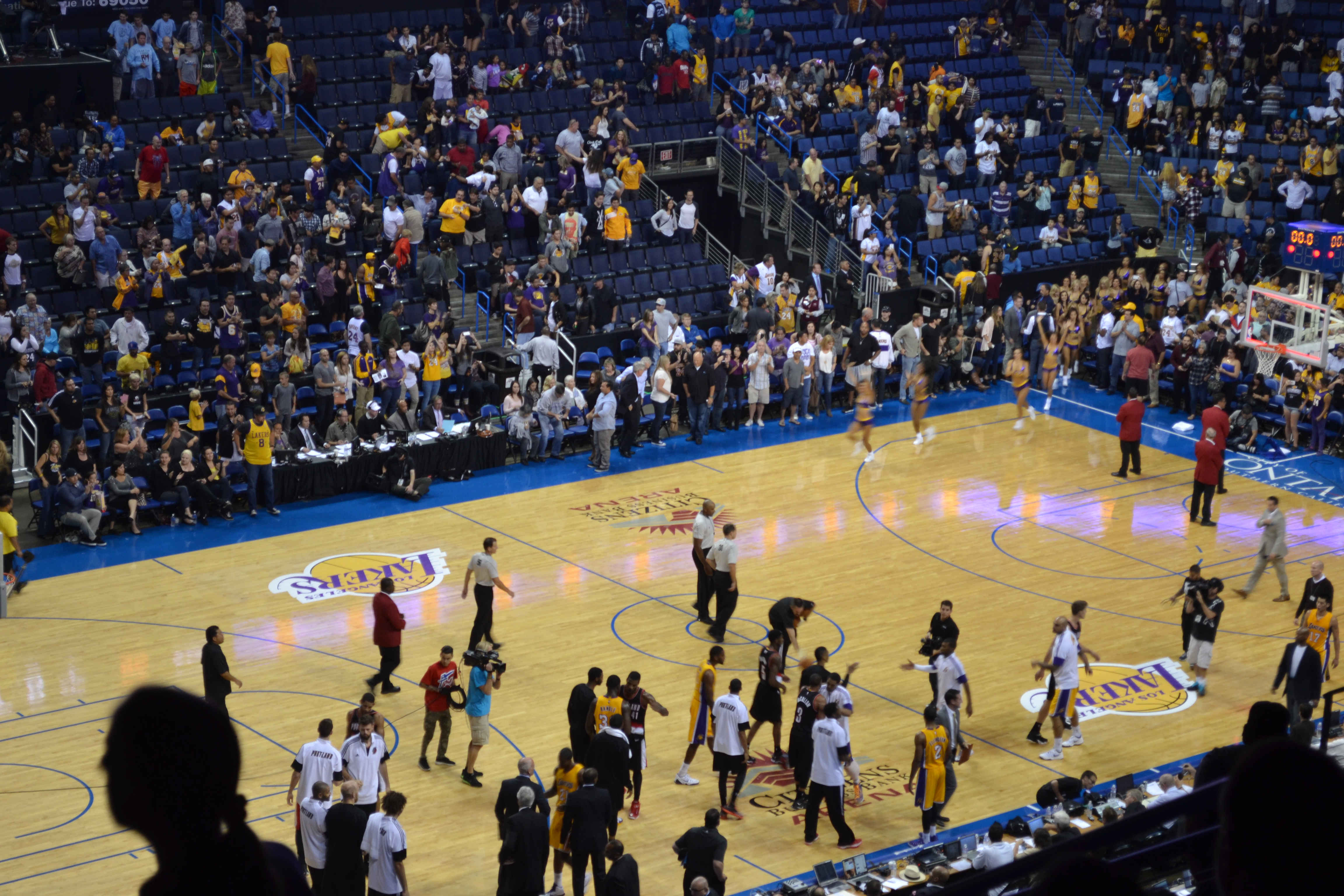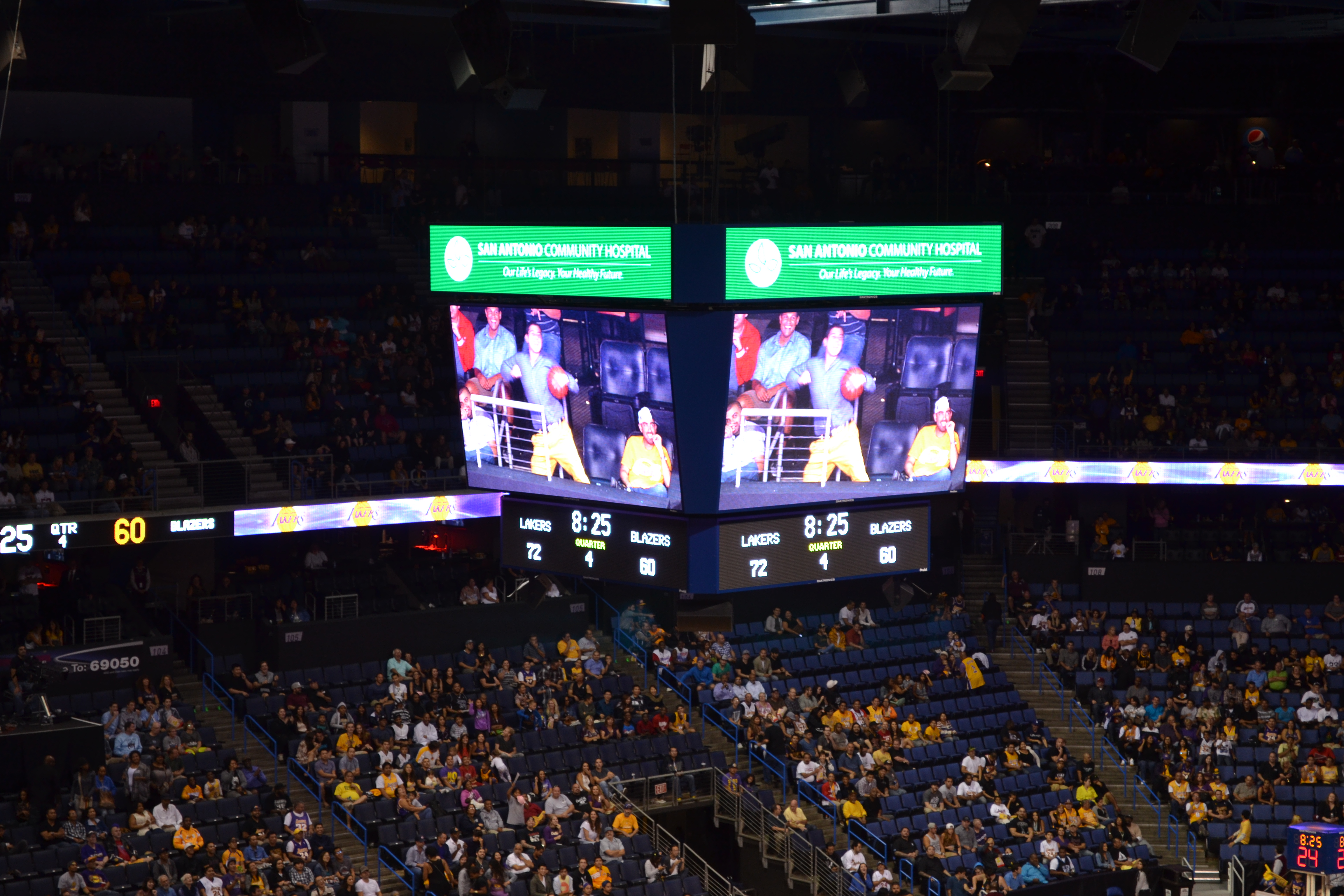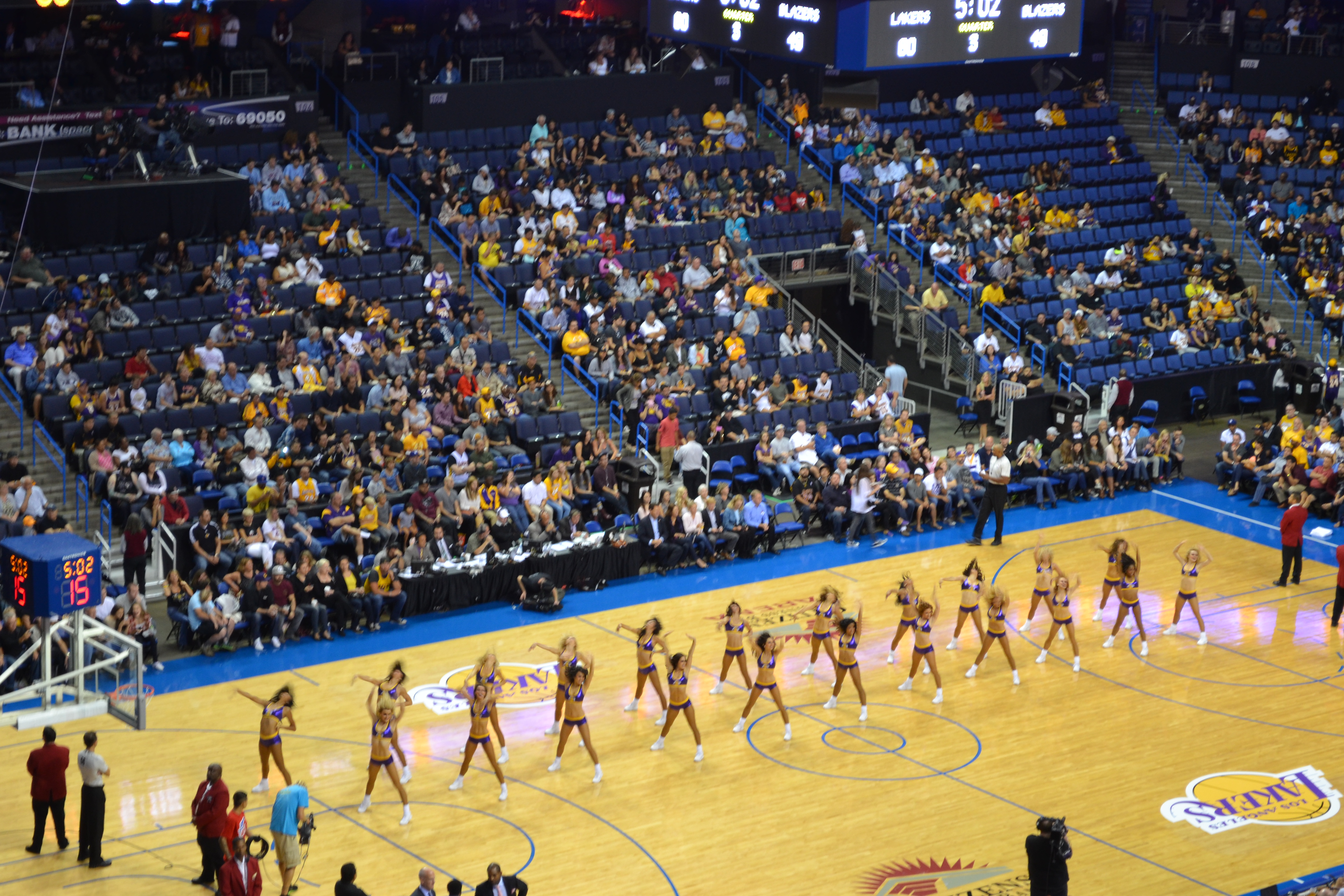 Just over the road from the museum was the Olympic Stadium from 1984 which we whizzed past, well crawled slowly past in the traffic on our way out of town to Anaheim to watch the LA Lakers. Basketball obviously was one of those sports we had to experience and I can honestly say I would choose Basketball over Baseball any day of the week. Back in Toronto you may recall we spent a rather dull afternoon watching the Blue Jays while consuming our body weight in fast food. This was a whole different ball game (pardon the pun!). The Laker Girls were no small part of the fun. Paula Abdul was picked up by the Jacksons while performing as a Laker Girl and it seems a highly sought after prize to be picked to be on the squad. The only thing I have to compare them to are the LV Girls who ‘perform’ during the Harlequins rugby matches we attend with our season tickets back home. These girls are NOTHING like them!! They definitely earned their spots performing at least 10 routines during the fast moving match. And between times they sat in a perfect line (left legs crossed over right and left hands over right) watching the match, chanting along, jumping up and dancing every time the Lakers scored – I was exhausted just watching them!! But the sport itself was great too. Very fast moving, high scoring, seriously impressive speed and agility for men sooooooo tall. We all loved all the songs, chanting, dancing, Kiss Cam which hilariously saw 2 old dears who’d never met having a snog and the Dance Off which was won hands down by an 8 year old throwing some serious shapes! We were on the big screen but I couldn’t get to my camera quick enough to record it – but the kids were chuffed. But the highlight for us all was ‘Organ Dude’. Whoever and wherever he was his tunes and chants were absolutely priceless.