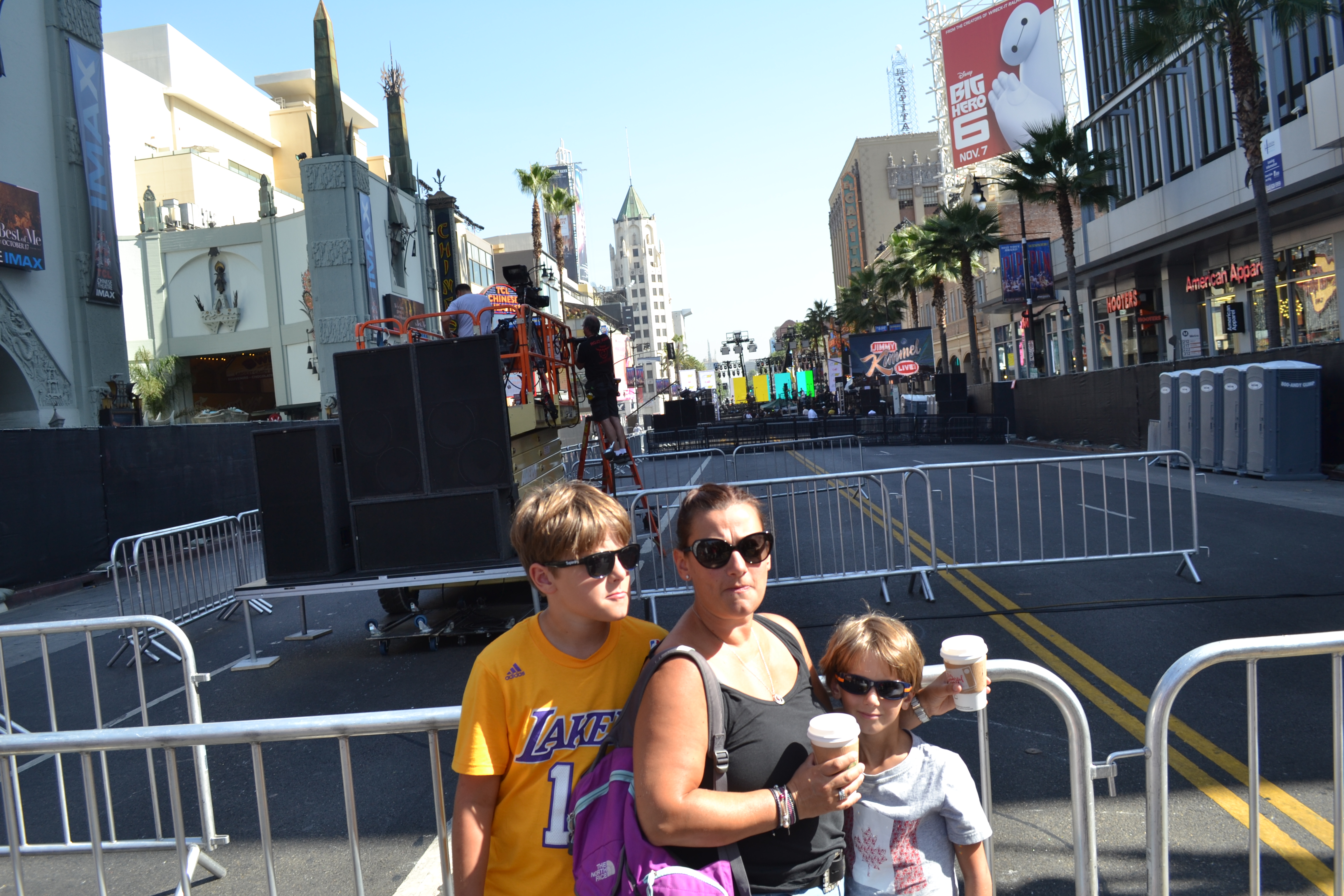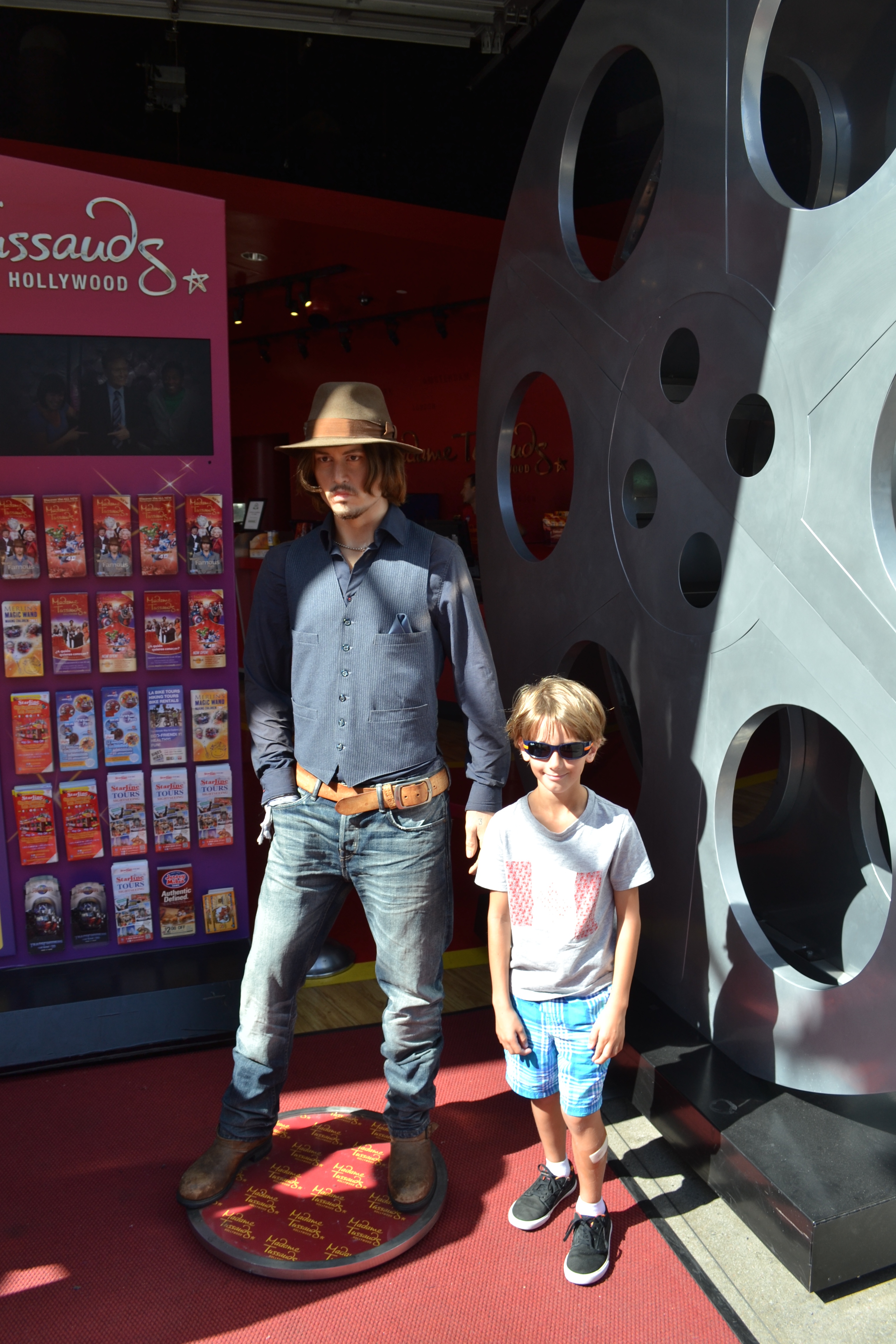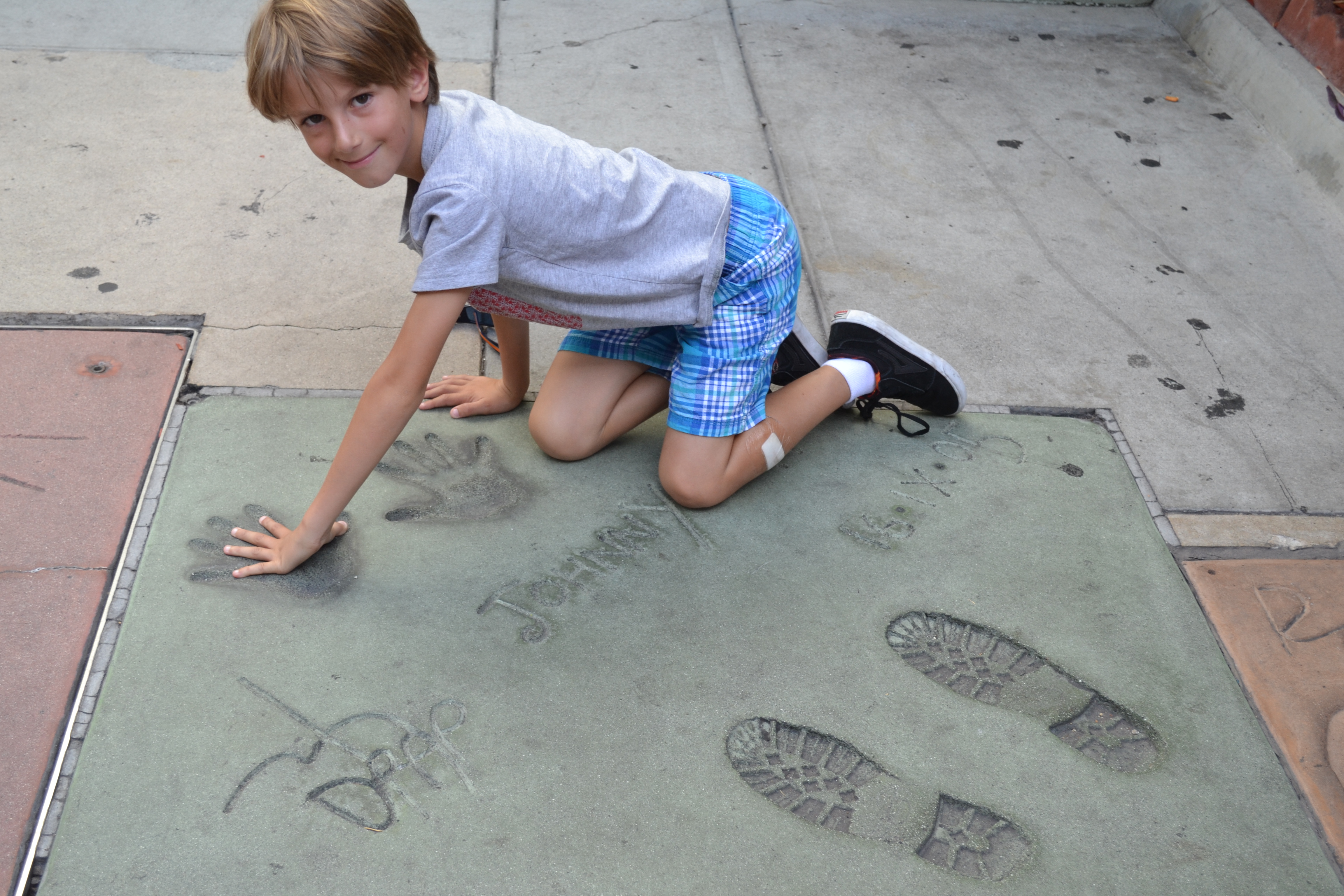 We fought our way past endless ‘characters’ hanging around Grumman’s Chinese Theatre (I think we spotted Spiderman, Captain Jack Sparrow, Mickey Mouse and Iron Man to name but a few) to stand in the footsteps of the select few immortalised in concrete there. Interesting to see who they still have ‘on display’ (as I’m assuming they must ‘lift’ some of them and replace them with others from time to time!). Clark Gable is still there. Marilyn Monroe obviously. Jean Marlow. Gene Kelly. Then Daniel Radcliffe etc. all from the Harry Potter films. And most exciting of all Johnny Depp, which pleased Charlie greatly. Think what is always a crazy part of town was made worse by the fact there were thousands of people lined up ready to watch Taylor Swift who was due to perform there that night – we didn’t join the queue!!