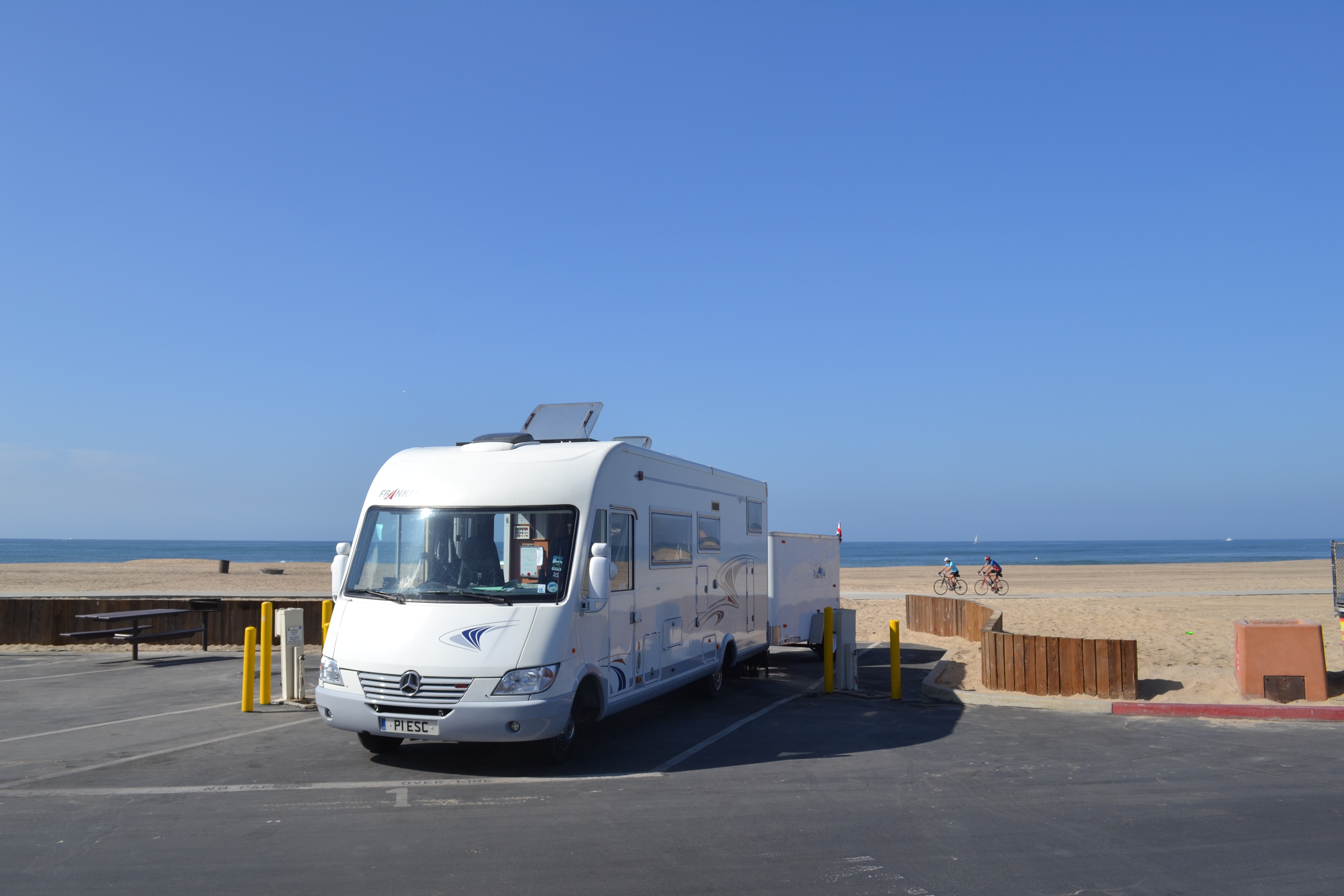 We were delighted with the campsite and the beach just in front of us was straight out of Baywatch and every American movie we’ve ever seen involving beach parties, fire pits, cycle lanes full of beautiful people jogging, cycling etc. past us at all times of day and night, and most exciting of all our very own lifeguard hut and red-trunked lifeguards!!