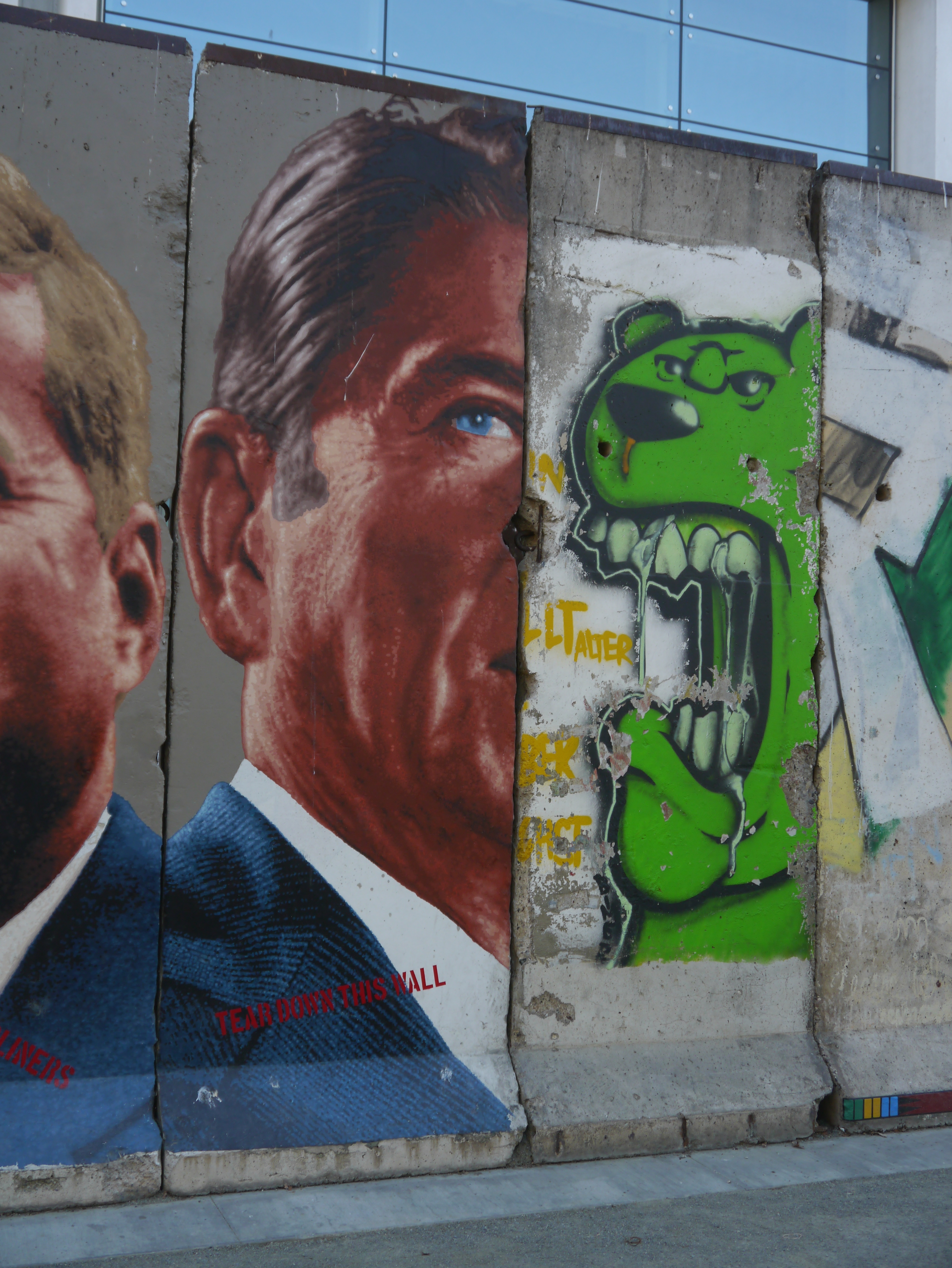 Wednesday we headed out in our hire car to ‘do’ some museums. A few people had tipped us off that the Peterson Automotive Museum was something quite special. Not only for petrol heads like John but also being a very cool cultural history of all things pertaining to the USA road trip – seemed sort of relevant!! We parked up and hunted for it for ages. Discovering a part of the Berlin Wall on our way. The Wall Project has 5 original segments from the Berlin Wall and 5 more painted by established and emerging artists in memory of the 20th Anniversary of it being torn down on 8th November this year.
