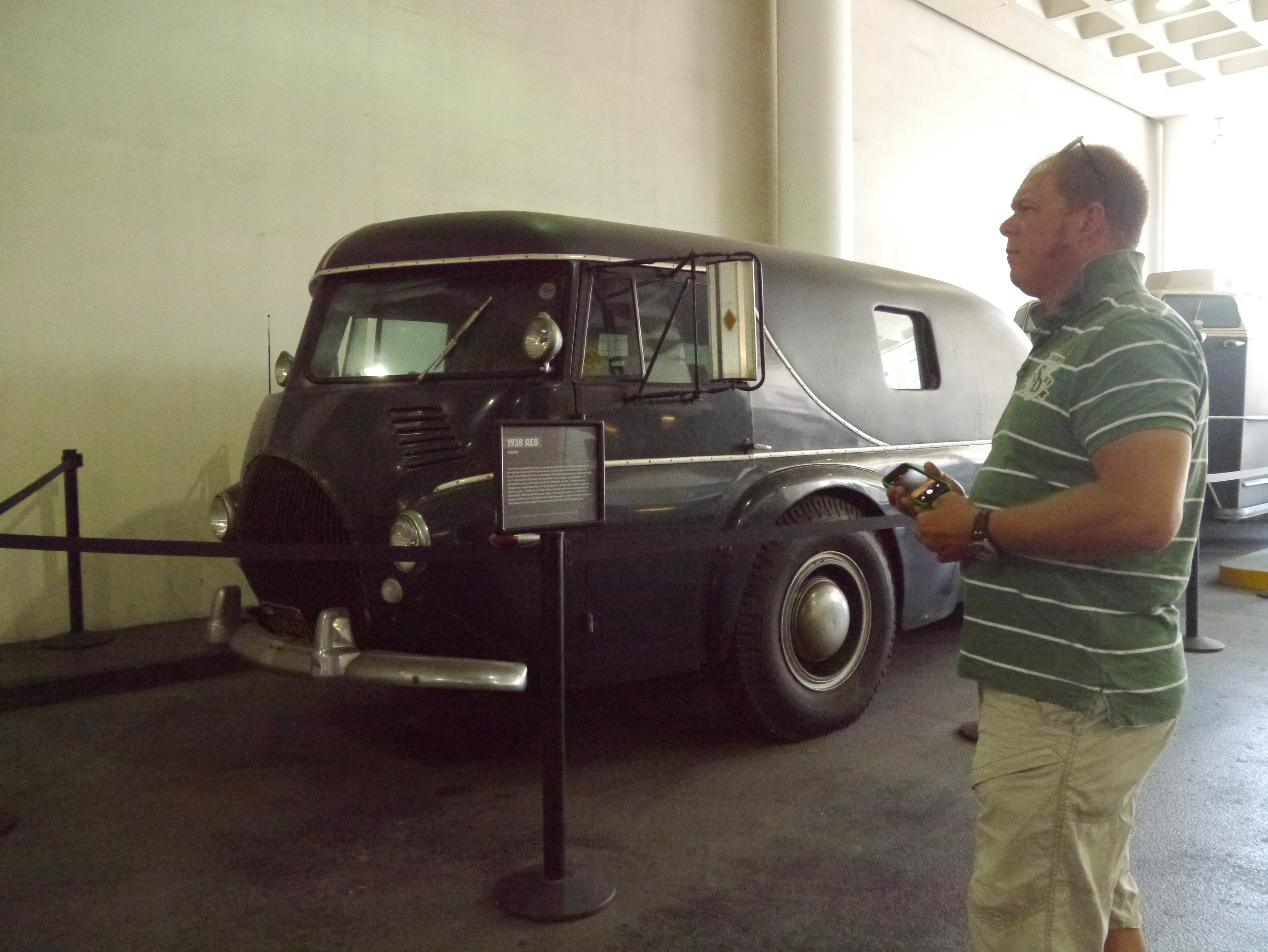 Sadly when we did eventually find the car museum it was behind a load of hoarding as it is being renovated. John pressed his nose up against the glass and got a tantalising glimpse of the treasures inside and we found one vehicle parked outside – but that was all!! (Another one to add to our list of things to do when we do this again!!).