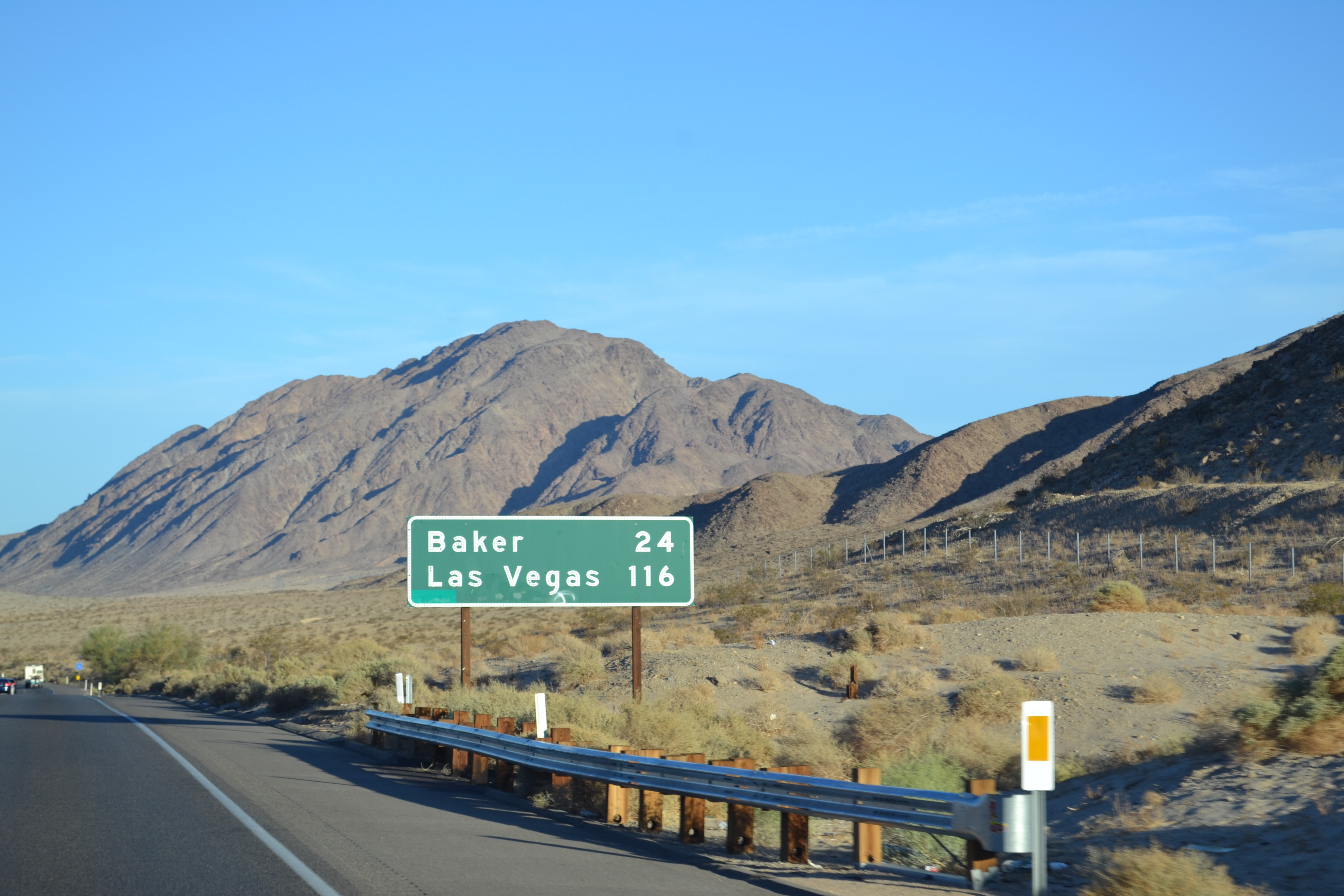 We headed across the edge of the Mojave Desert on the afternoon of Sunday 26th October, having finally dragged ourselves away from LA. Delighted to see that we were going against the traffic. Not so delighted to see signs for Salt Lake City, which once again reminded us of the big zigzag, we have done in the last few weeks. All getting into the Vegas spirit we were listening to the radio and quickly called up to answer a quiz (the answer was Elvis in Viva Las Vegas) to be told we had won two tickets to a Vegas show – whoop de woo!! We arrived just as the sun was setting so got to see the light pollution in all its glory.