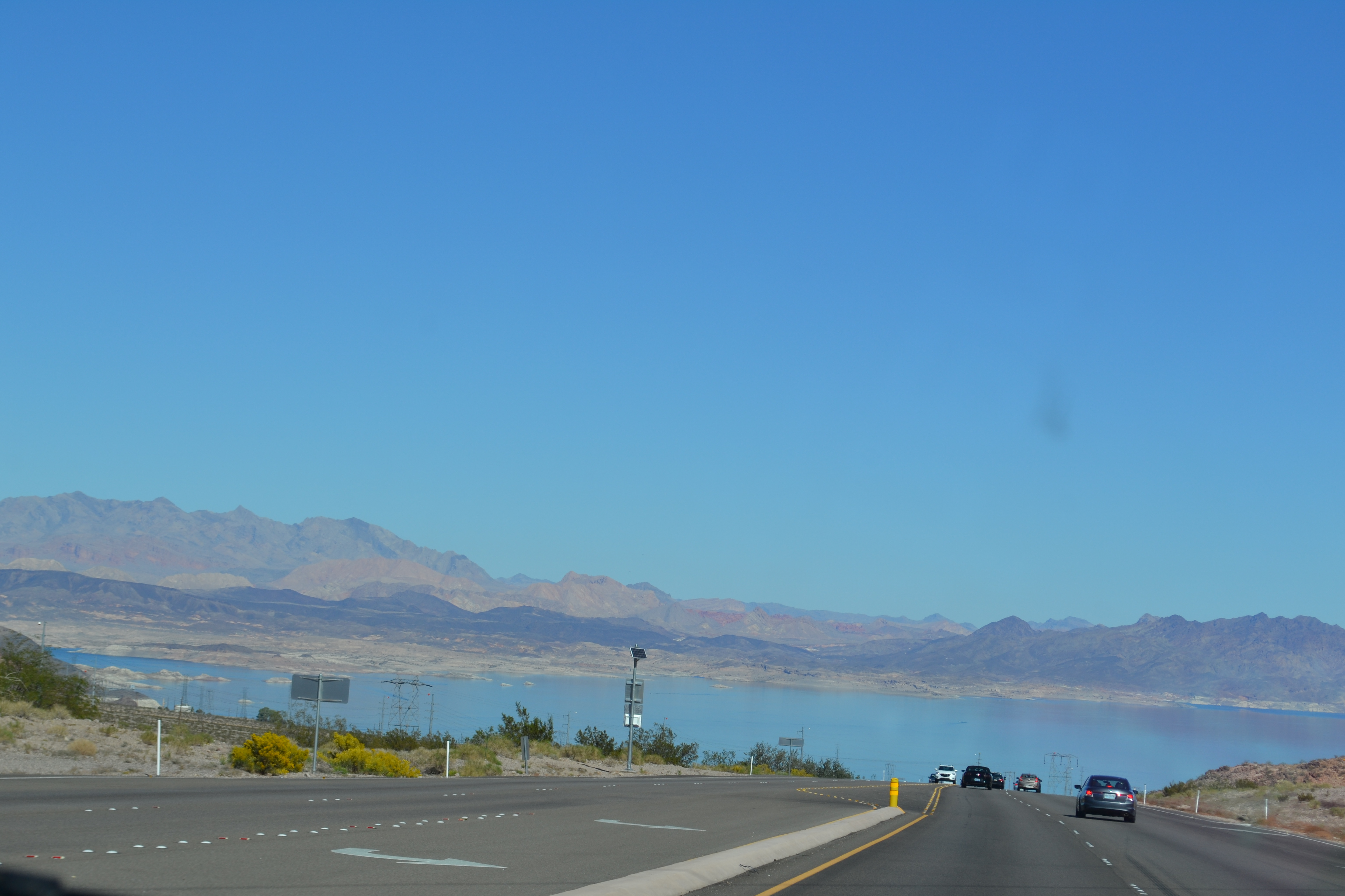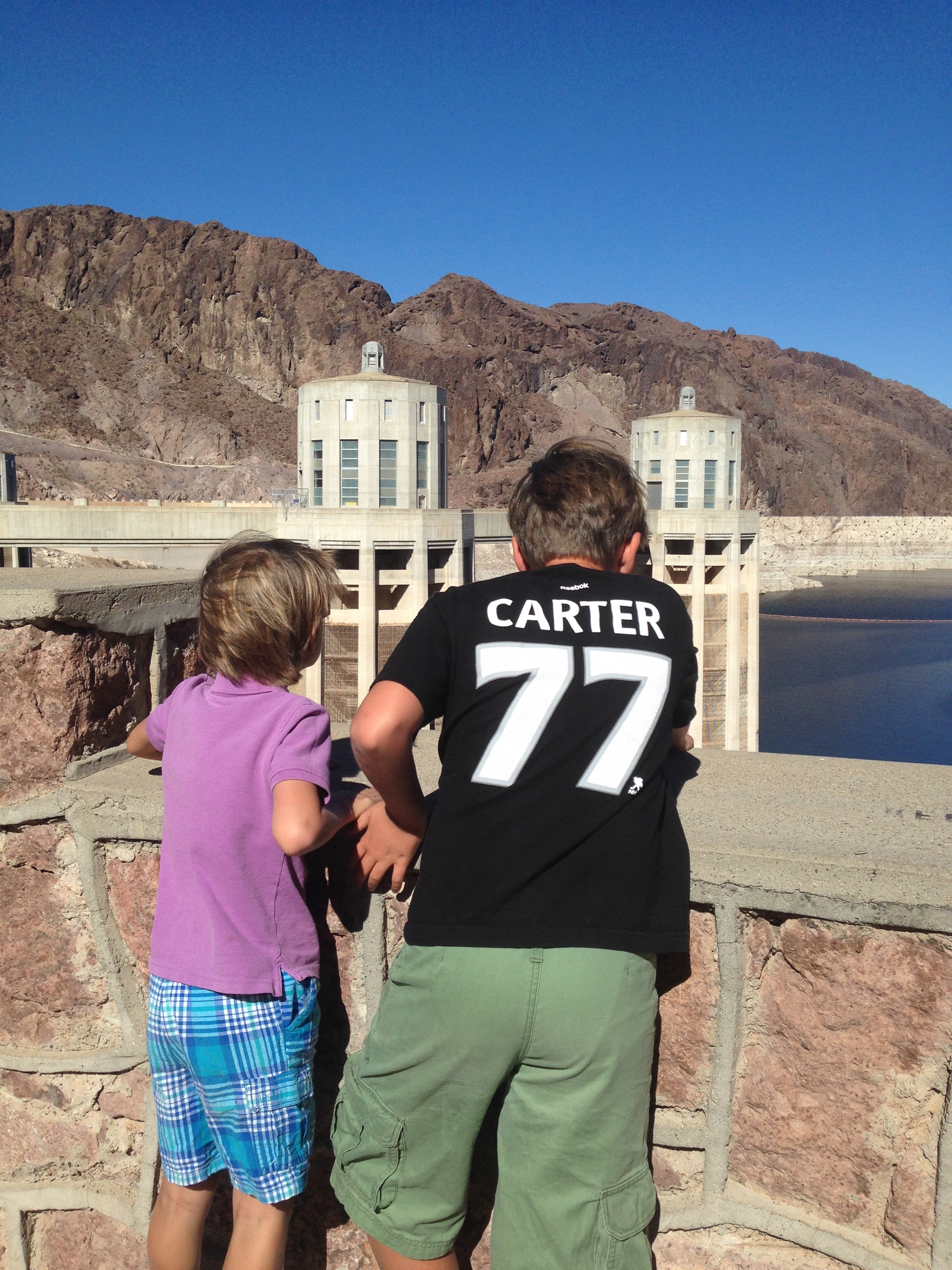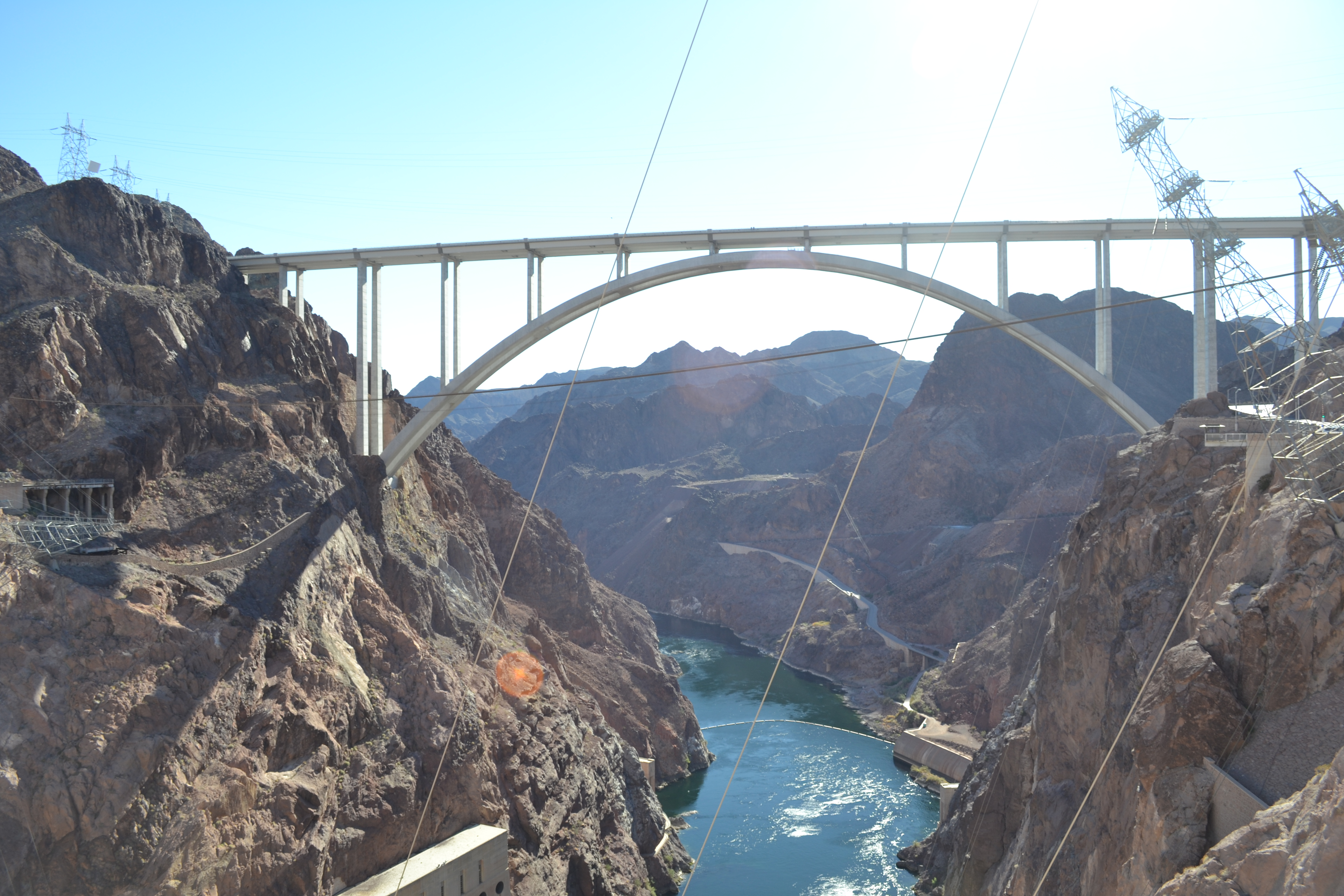 Wednesday we decided we needed a break from the craziness and headed out in our little hire car to see the Hoover Dam. (Vegas seemed to have effected us all. Even the Sat Nav lady decided to start pointing out junctions and turnings by fast food restaurants enrolee – “turn left at Taco Bell” and “make a U turn at Domino’s Pizza”). Very excited to park in Arizona (another state filled in on our sticker map) as the dam crosses over the State Line. It was completely breath taking. Built in the midst of the Depression it used enough concrete to build a 4’ pavement (‘sidewalk’ for our American subscribers!) around the earth’s equator. It was built to control the mighty Colorado River and regulate the water requirements of 7 States. The statistics on it are mind blowing – it is 726’ high, 650’ wide at the base and only 45’ wide at the top (which is the road you drive over). Lake Mead (that was created with the building of the dam) is a huge recreation area now and is so vast that it contains enough water to cover the state of Pennsylvania in 1’ of water!! A very interesting visit to this National Monument that is so proudly on display to its 7 million annual visitors!!