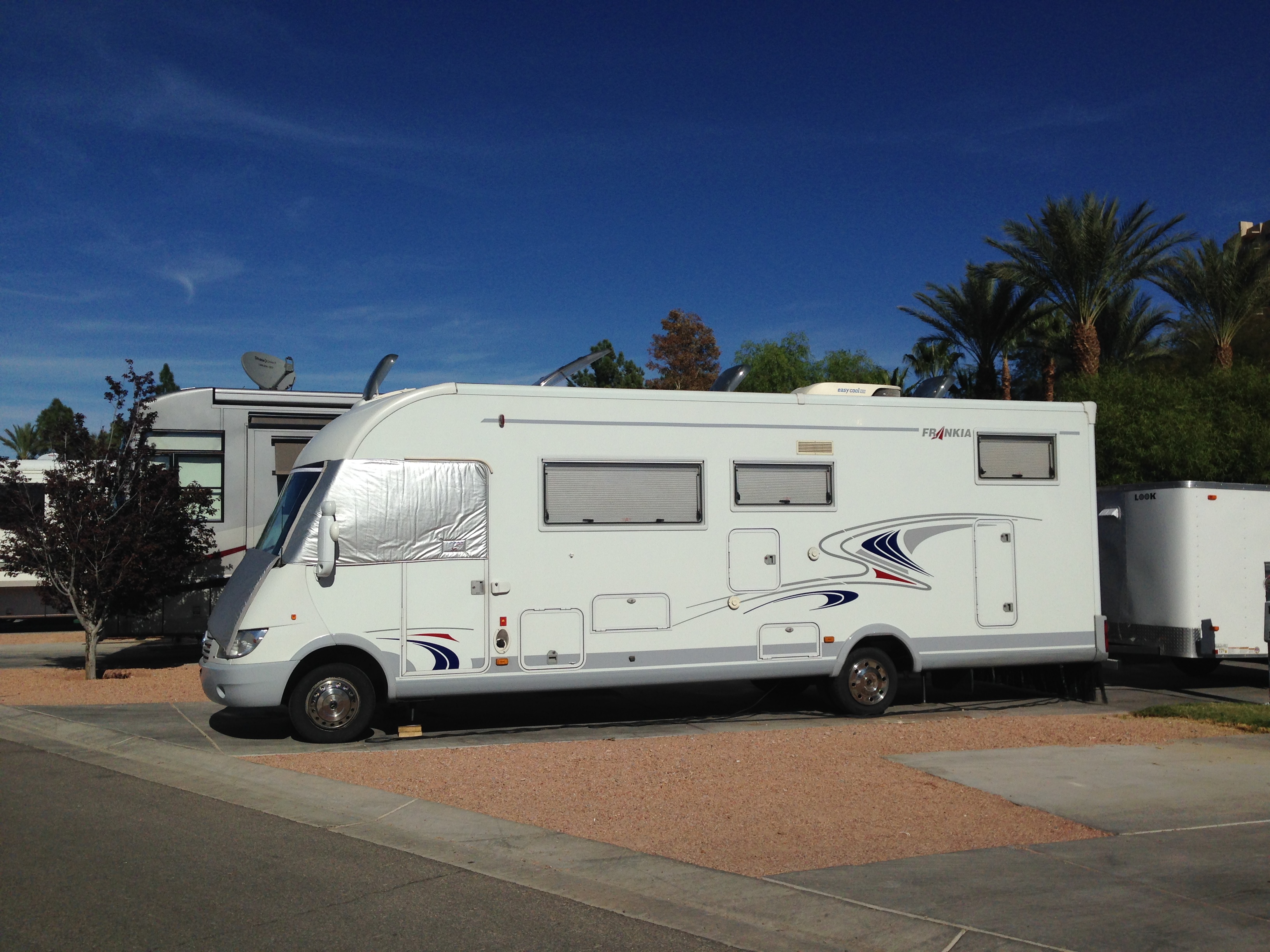 Our campsite was a couple of miles from The Strip and called itself an Oasis Resort. They weren’t joking. We entered through huge gates down a driveway lined with palm trees dressed in lights to a huge fountain on the forecourt. The reception, instead of the usual small hut with a few moldy loaves of bread and bottles of overpriced RV Sewage Treatment Fluid, was a marbled affair complete with a concierge desk. Gym, 2 pools, fully stocked mini market and Conference Facilities!! Brilliant!