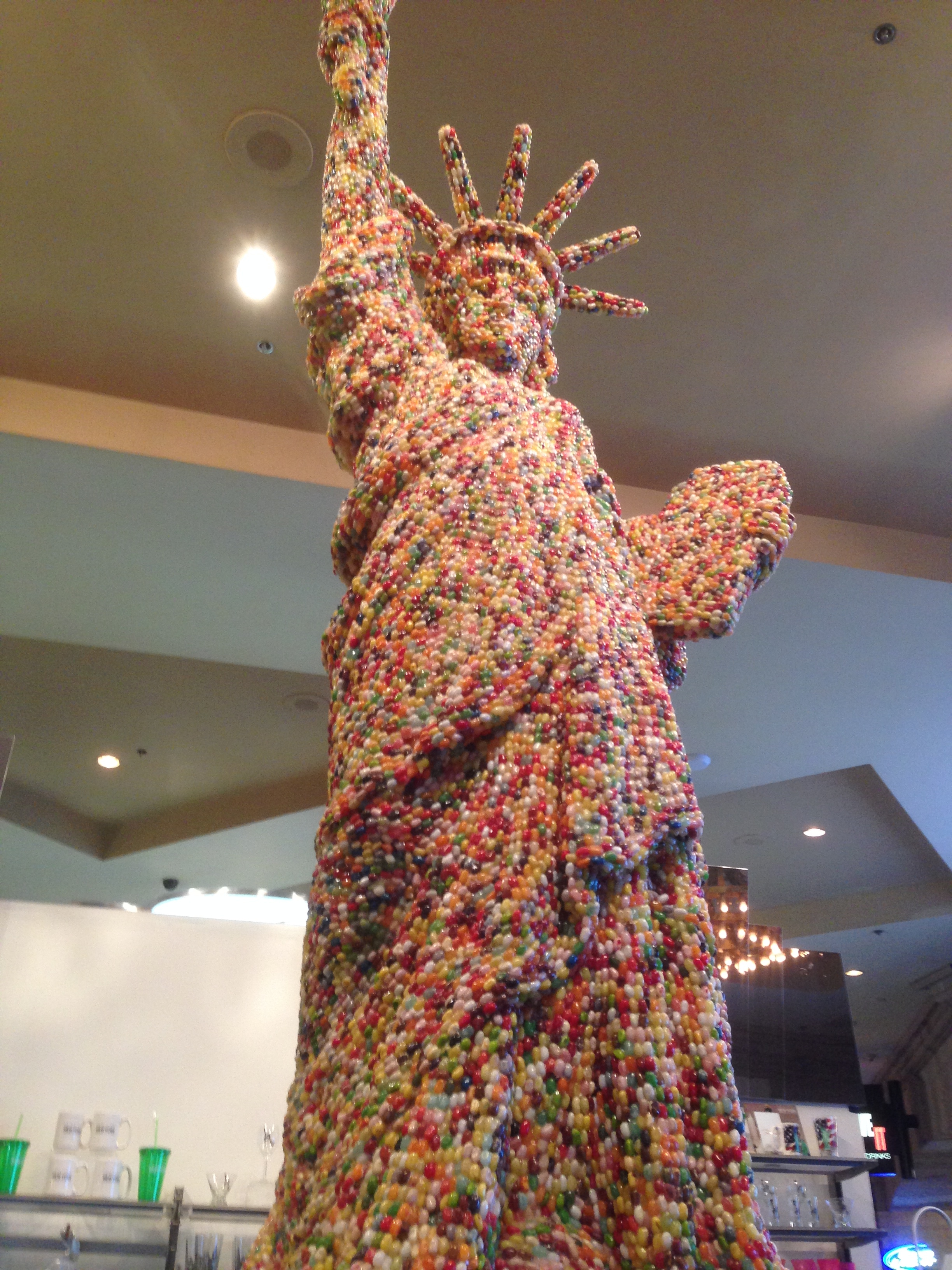 Vegas seemed bigger and brighter than the last time we were here. We were told that only 45% of the city’s revenue now comes from gambling, the rest from the restaurants and shows etc. I think unless you are a ‘high roller’ the cheap hotel rooms and free drinks etc. may well be a thing of the past. There also seemed to be an awful lot of people on the streets too and I don’t know that I remember that side of Vegas being so on display last time. (We did have to laugh at one witty guy who had the following sign next to his collection pot “My girlfriend got kidnapped by a ninja. Need money for Kung Fo lessons!). We spent a lot less time in bars and casinos and a lot more time in M & M World and Hershey’s world than when we last visited – but I guess that’s another thing that’s changed over the intervening years!