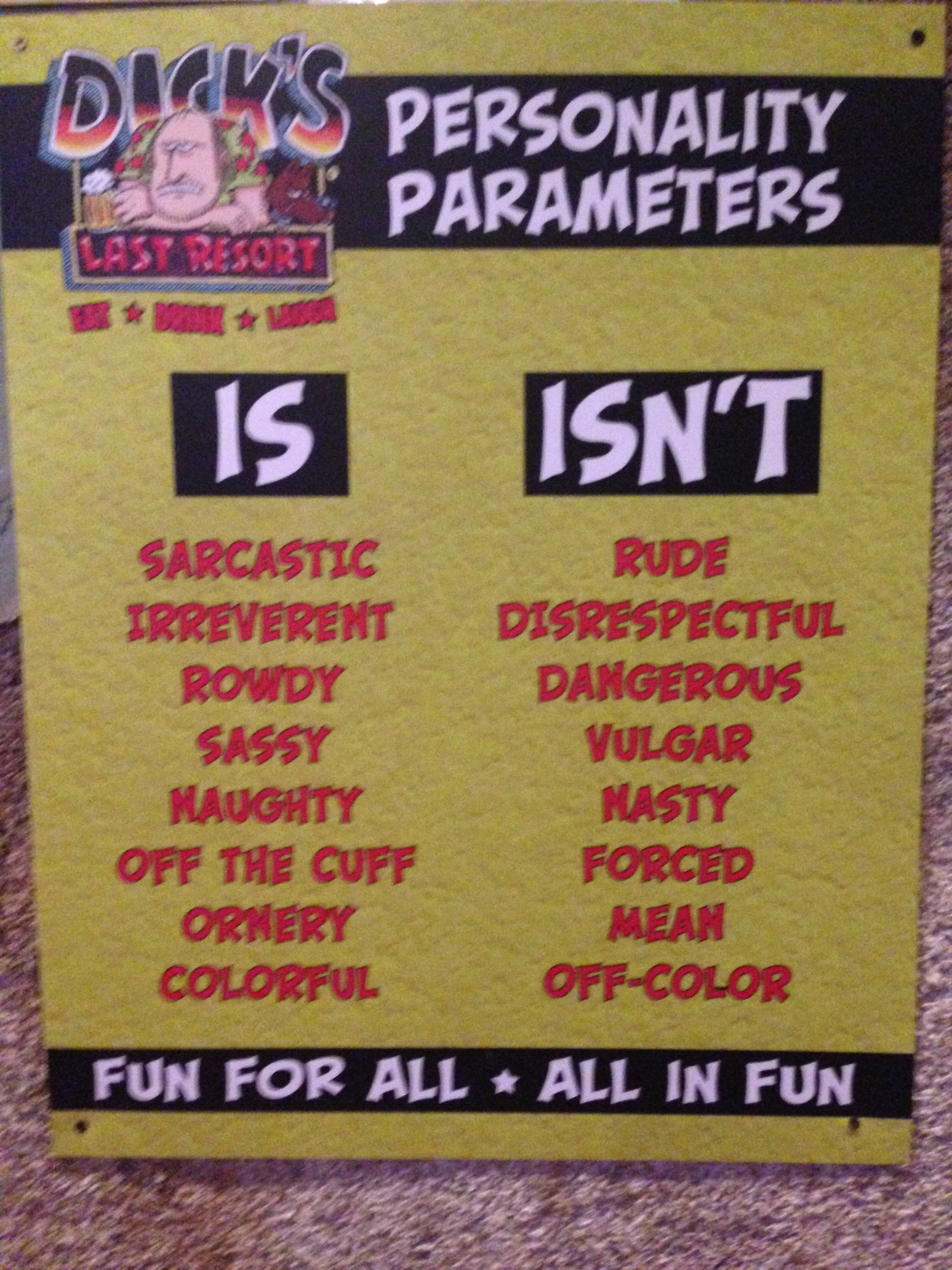 We sat down and the waiter came over, threw our cutlery onto the table and said, “Here’s your stuff. Make it neat. I’ll be back when I can be bothered.” So began 2 hours of being ignored and insulted by the waiting staff. The hats we’d seen were made out of paper tablecloths and then the waiters wrote messages on them. Charlie’s said, “I have an itchy butt and smelly fingers”, Williams said, “I just farted.” Mine was rude and I won’t write it here but some of the others we spotted around the room were…. “I still wet the bed” (on the head of an 8 year old), “Moses was my first” (on a lady in her 60’s) and John’s said, “I fart dust”.