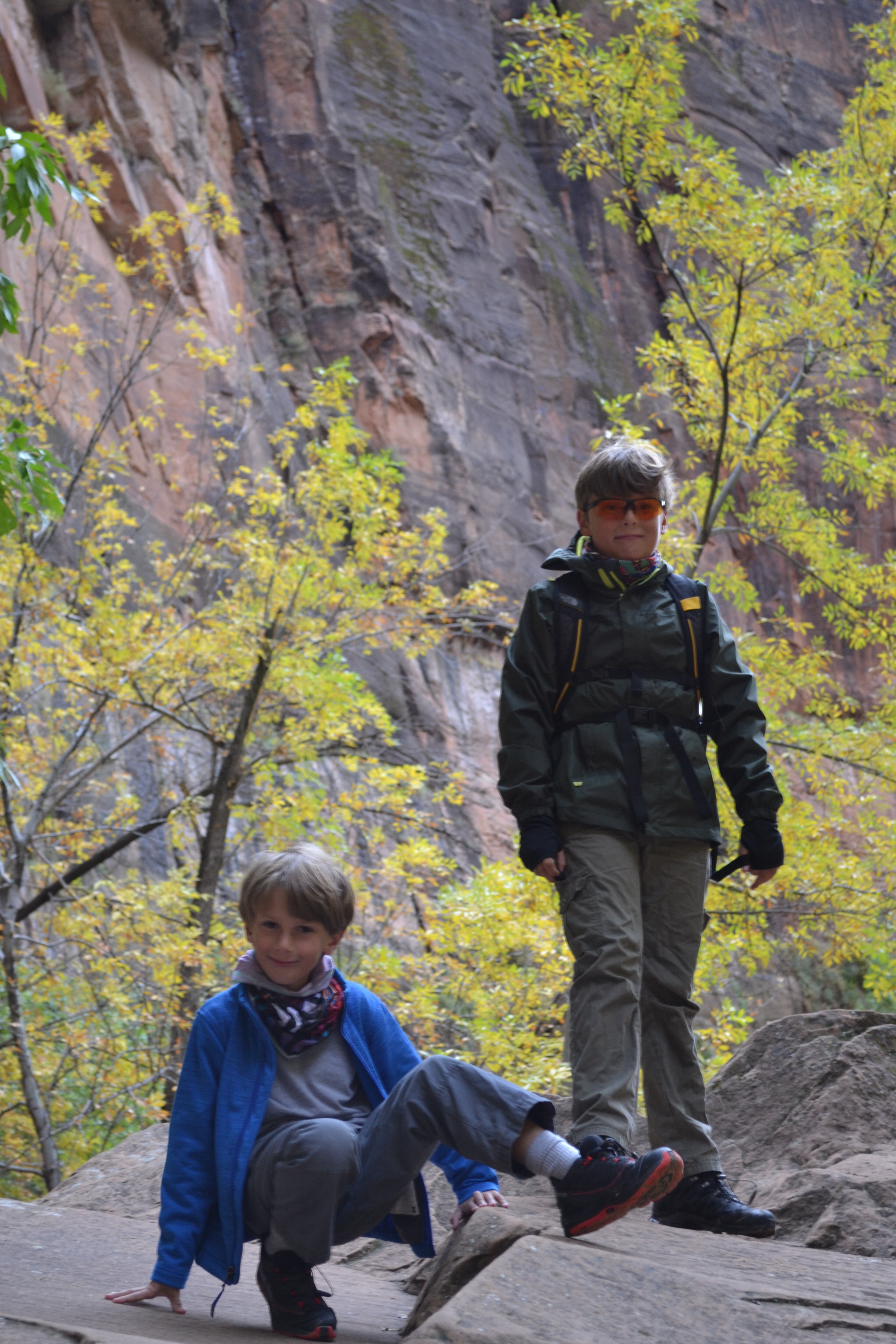 We walked the Riverside Walk and got as far as the part when you start to wade into the water to explore the 16-mile ‘Narrows’ properly. The Narrows is the spectacular gorge 16 miles long and 2000’ deep and at times only 20’ wide that offers an incredible 2-day hike with wild camping opportunities along the way.. We managed to persuade the kids that it wasn’t really the time of year and the weather wasn’t ideal for wading through a river up to our waists!