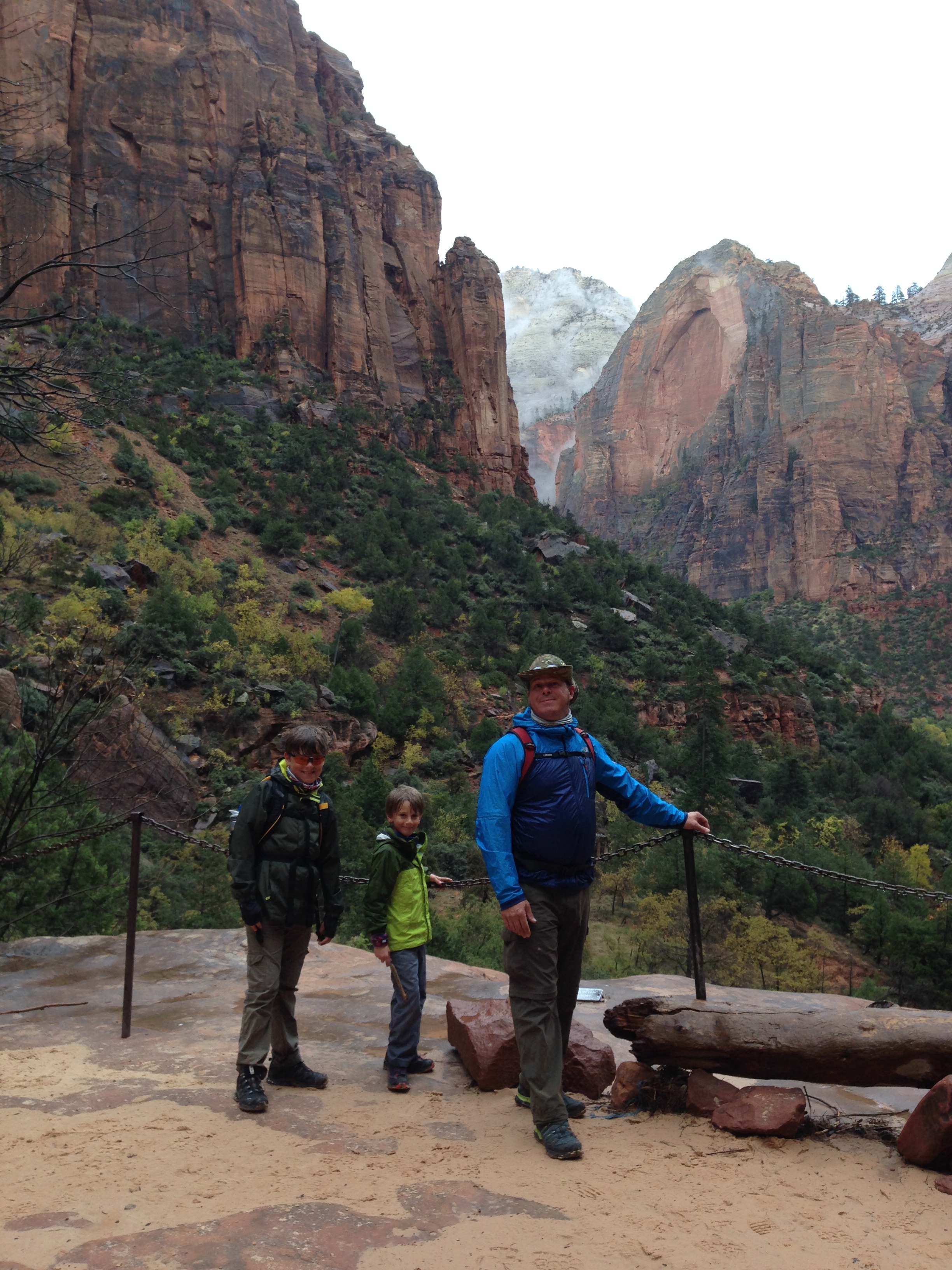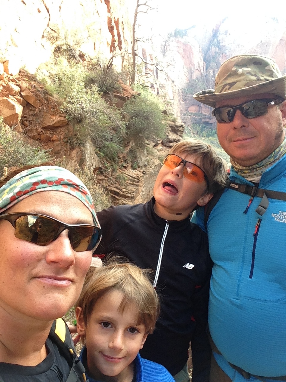 We’d decided we would take on the renowned Angels Landing hike the following day. Having looked it up and freaked myself out with all the pictures online of narrow rock faces with only a chain to secure the path I wasn’t convinced it was a great idea for 2 adults who don’t like heights with 2 kids in tow. But John and William were adamant that we had to do it.