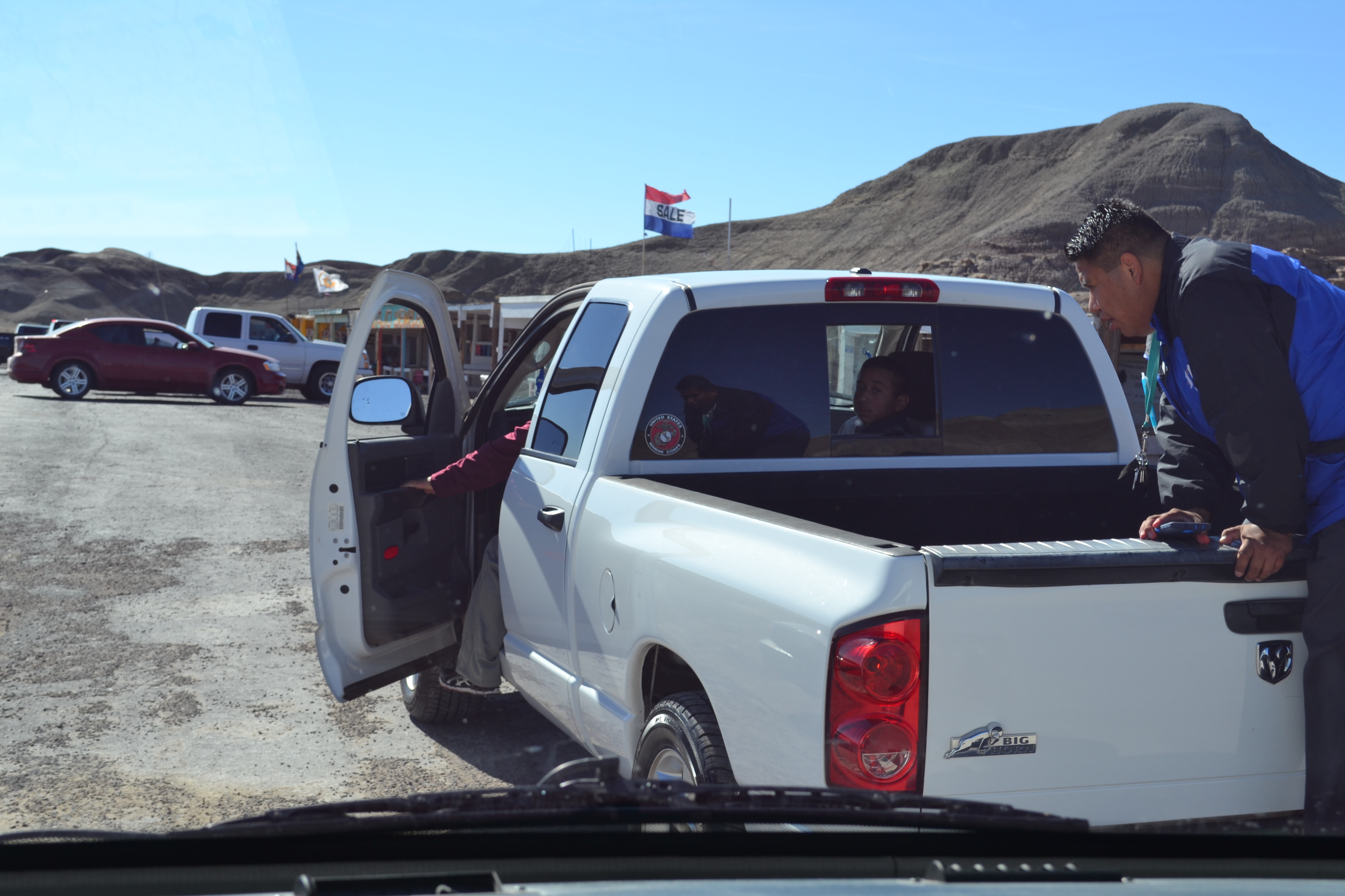 We spoke to our breakdown service and they said they’d tow us to a secure location. Marvellous. We carried on driving as far as we could and that night we finally broke down in the desert outside of Monument Valley in front of a Government Transportation Office in a place called Teec Nos Pos (catchy eh?). Felt safe!
