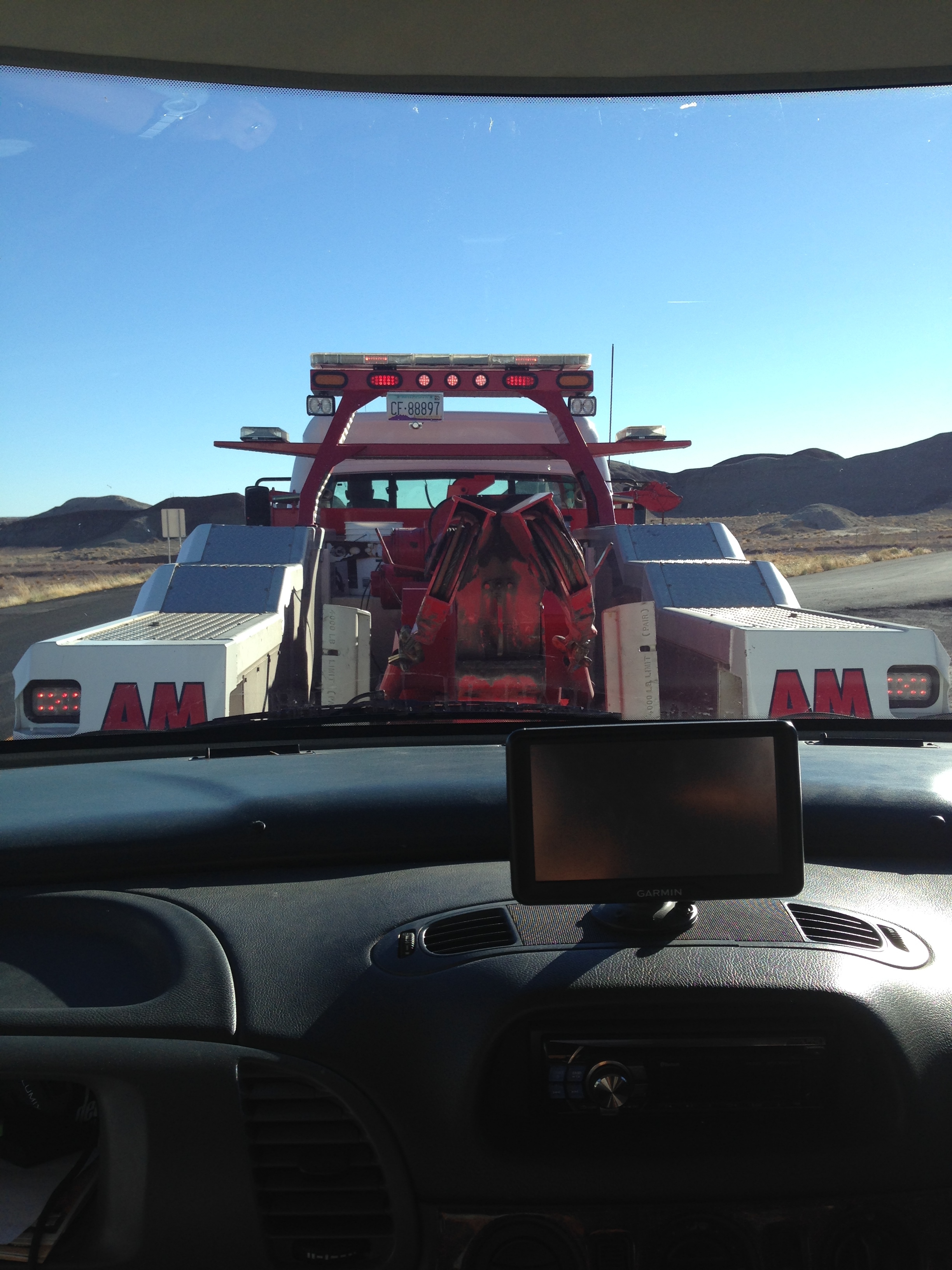 So Jesse the tow truck guy arrived. He said we could all ride in the back of the RV – obviously illegal but guessing he didn’t want to have to share his tiny cab with our 2 kids for 7 hours – hello, welcome to our world, we’ve been doing this for 5 months!!!