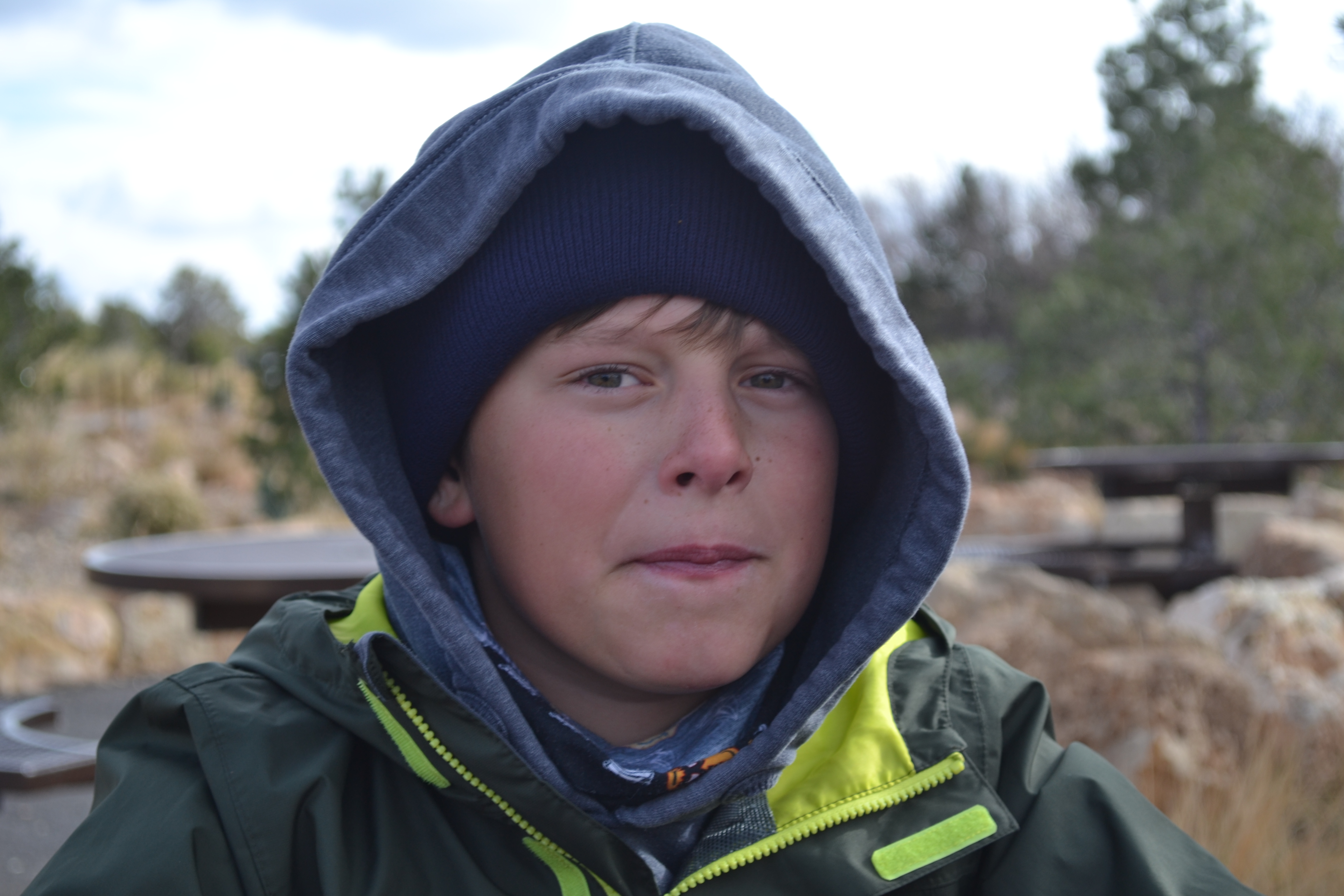 The oh so sensitive and effective carbon monoxide alarm woke us all up twice in the space of 20 minutes for no apparent reason at midnight!! Then best of all we were all awake at 6am, freezing and exhausted as despite the very effective black out curtains at all the windows (which Cruise America proudly show off on their online video tour) the 3 roof lights in the van have no blind at all. So we were all wide-awake when the sun came up!!