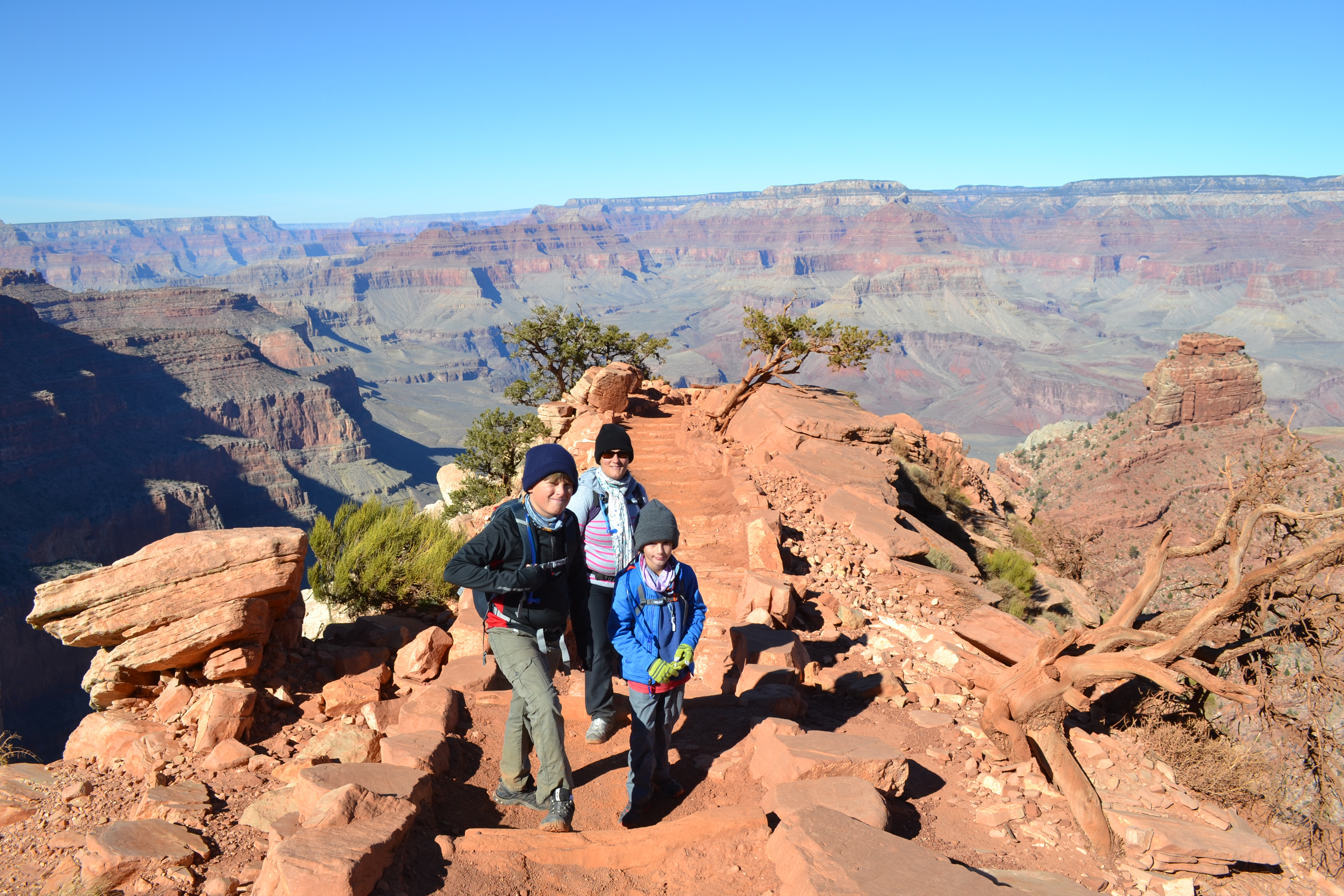 Then on our final morning the kids and I had a great jog along the rim trail which was a much nicer way to say goodbye to the Canyon… We are so very glad that we didn’t let a little thing like a busted gearbox prevent us from seeing the Grand Canyon. It was worth the hassle, expense and most of all the ignominy of driving a Cruise America RV!!
