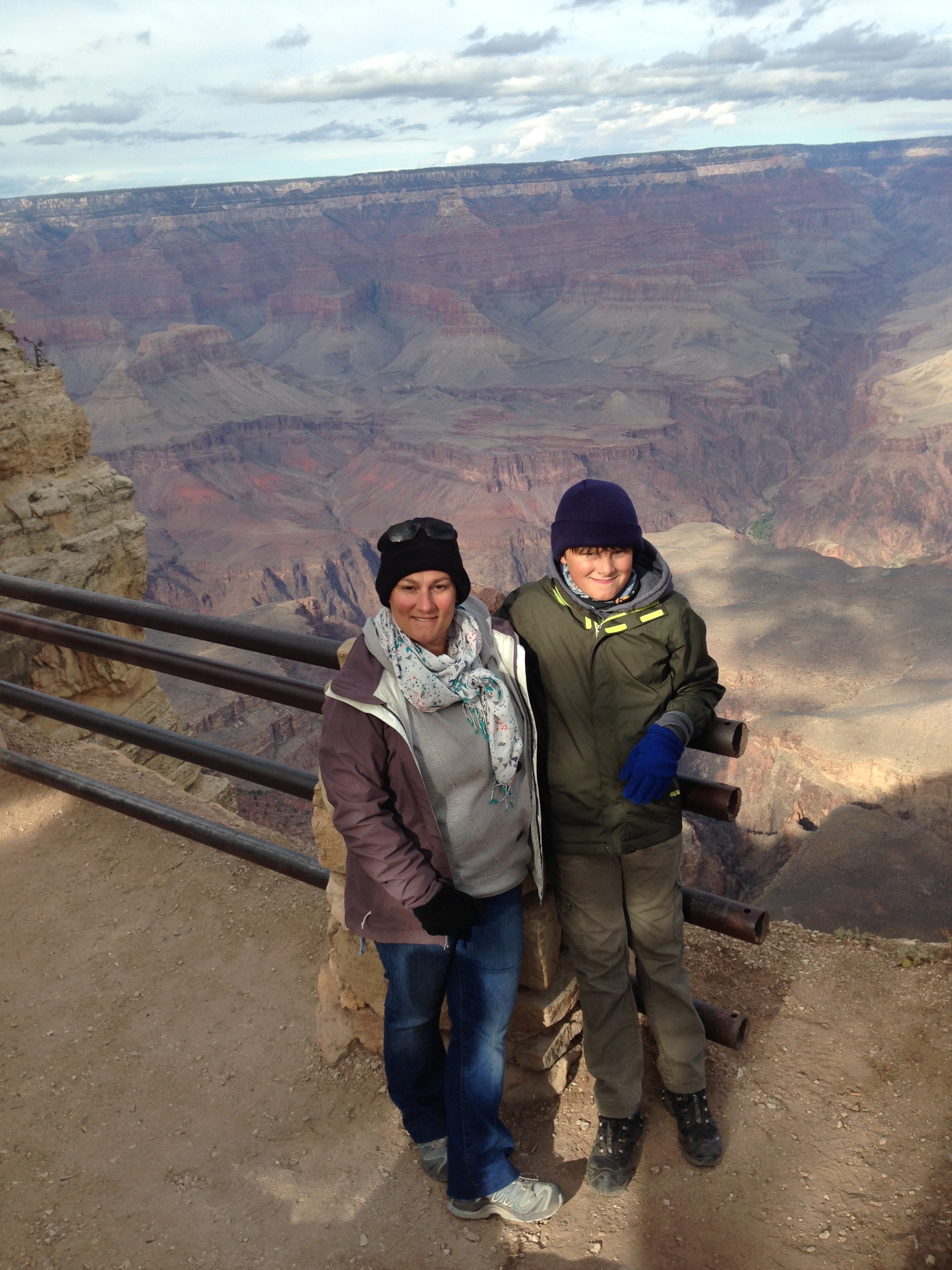 Well once we’d hauled ourselves out of bed and into the cold, visited the Visitor Centre and wandered out to Mather’s Point for our first glimpse we knew. I cried. Now I accept I am over emotional and prone to cry at anything. But truly it is unbelievable. It doesn’t feel real. Looks like a huge painting. And that was just one tiny perspective of a tiny amount of the 270 odd mile long canyon. Crazy!!