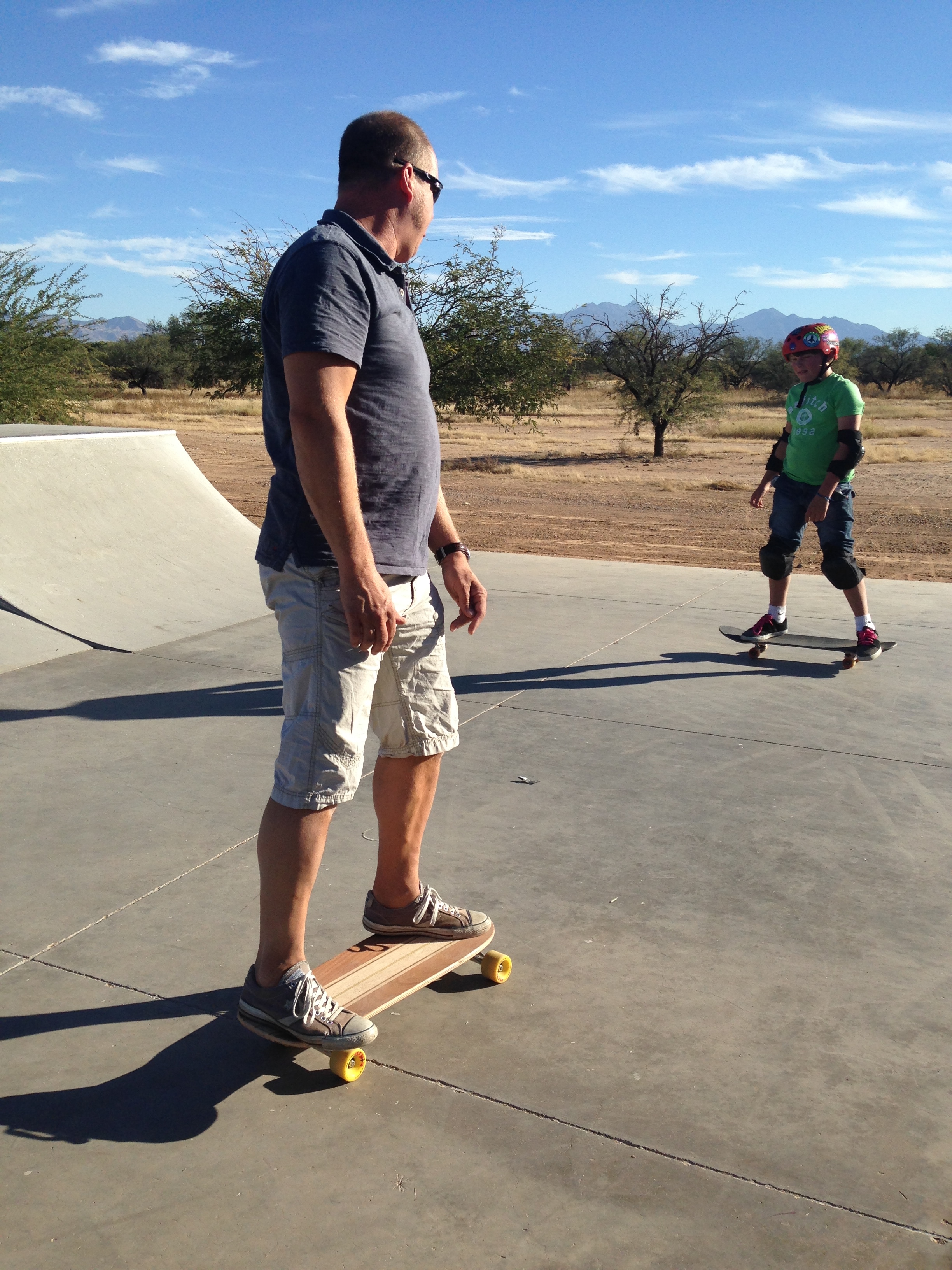 So we were well and truly back in the sunshine. Here in Southern Arizona the temperature is a fairly reliable 25-30 degrees each day. Bliss!! The 4 of us had 3 nights here all together before John had to fly back to the UK. Nothing very exciting to report other than an awful lot of skate park action. John is now very much ‘back on his board’ and the kids are soooooo impressed with his “skills”. I am the official photographer obviously and spend hours filming them so they can look back over the footage for areas of improvement.