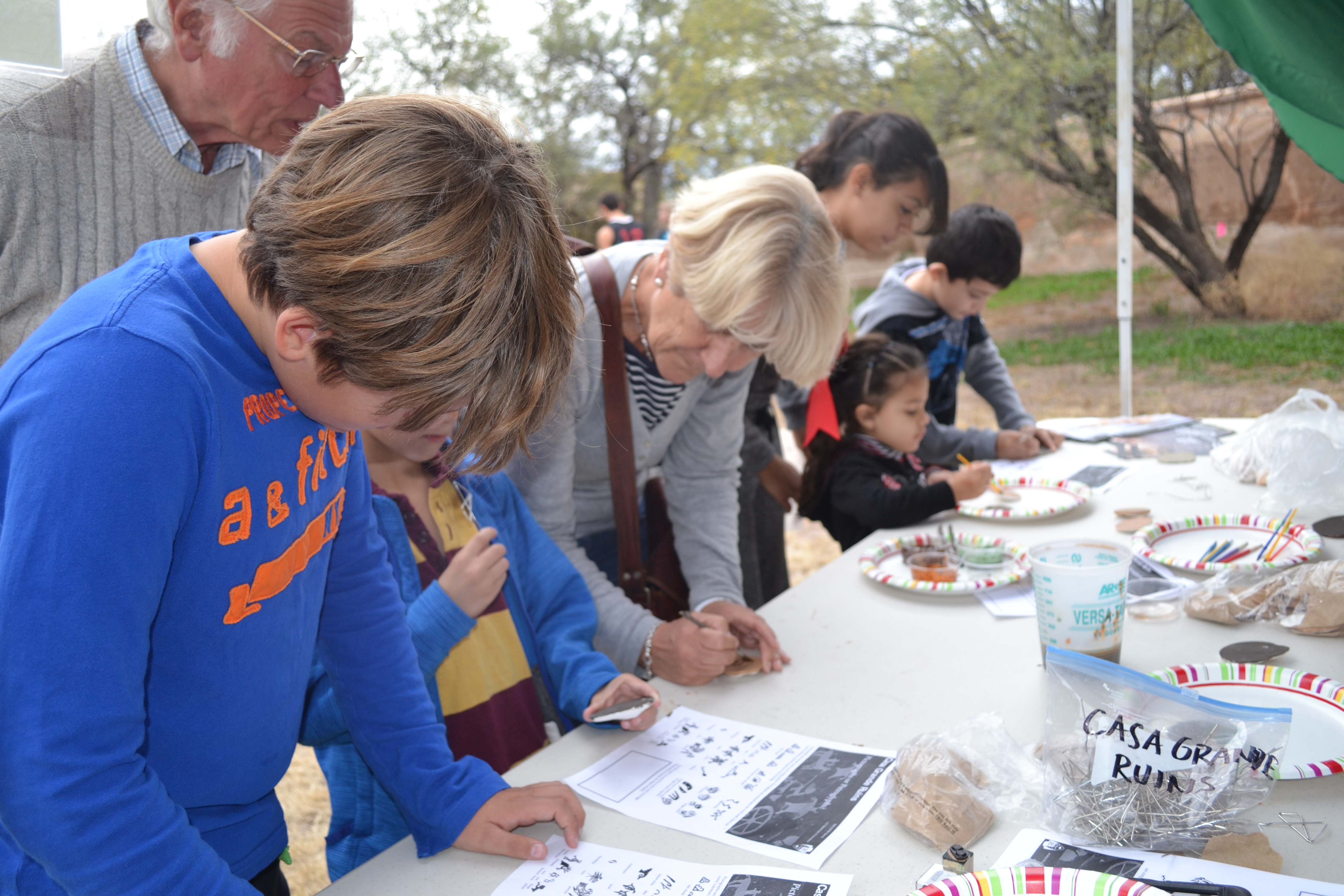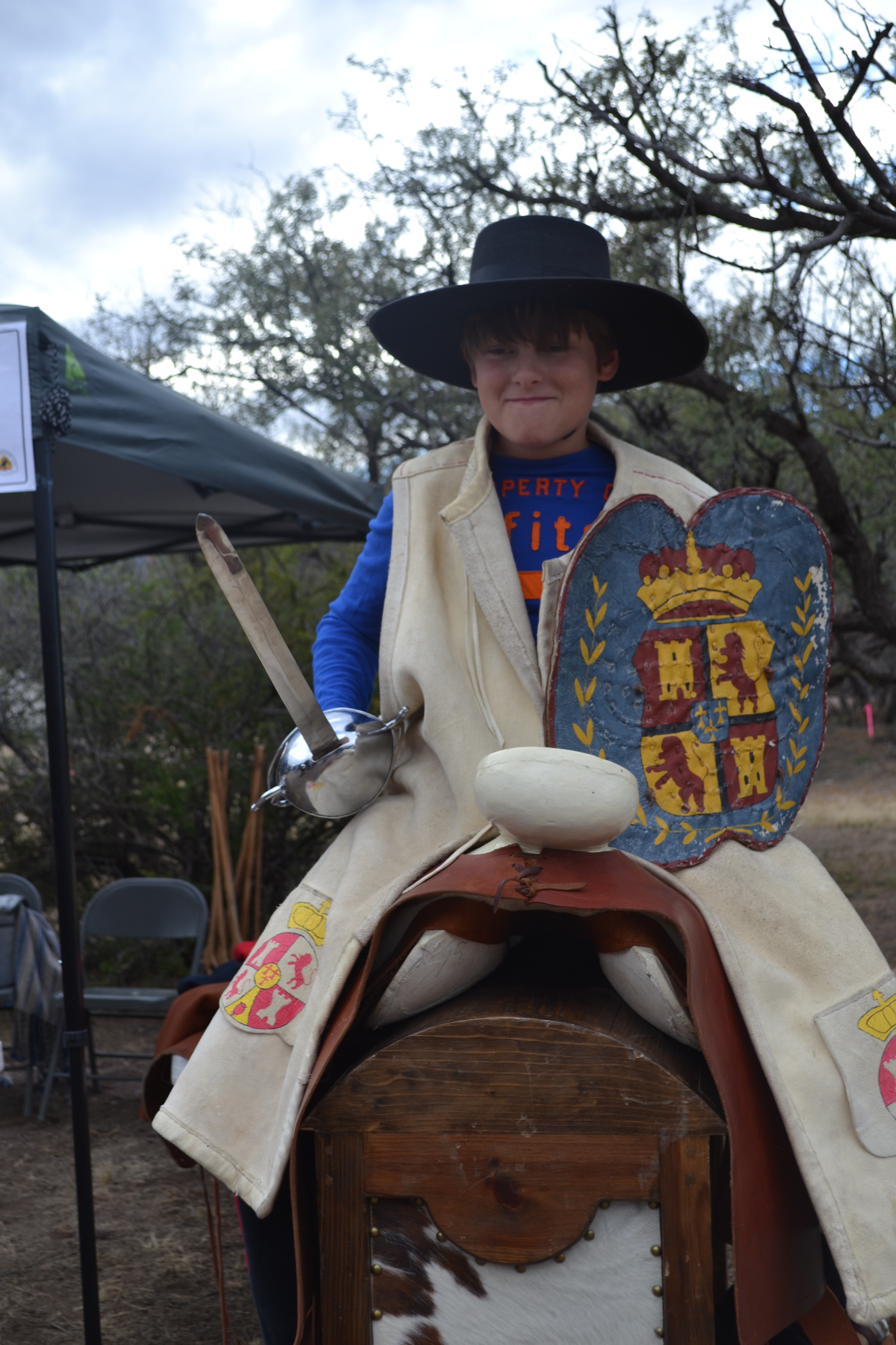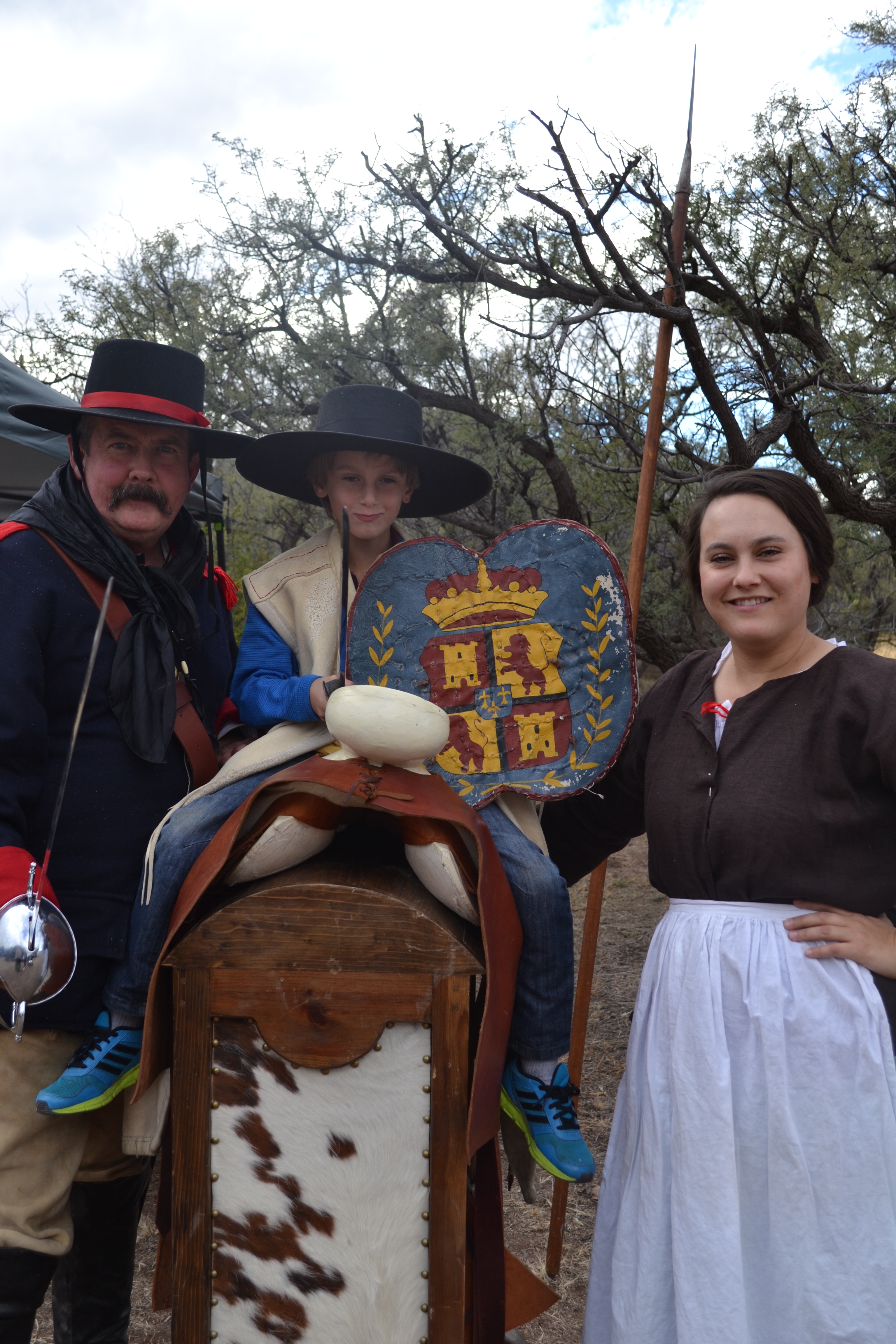 At the weekend there were festivals in both Tubac and Tumacacori (just 3 miles south of here). We went to the Tumacacori Festival during the day on Saturday. It was great. Like a Mexican village fete I suppose. Lots of craft stalls, food stalls, etc. But more exciting were the half dozen or so State Parks locally there offering activities. We spent hours there carving petroglyphs, chatting to wildlife experts, handling bear skulls, learning about the Anza Trail, the kids dressed up and wielded swords and guns. Really fun day out. Highlight for Will was the Great horned owl and harris hawk he got to see up close. The action was centred around the stage with troupes of Mexican dancers and musicians and some talented chaps on their glockenspiels!!
