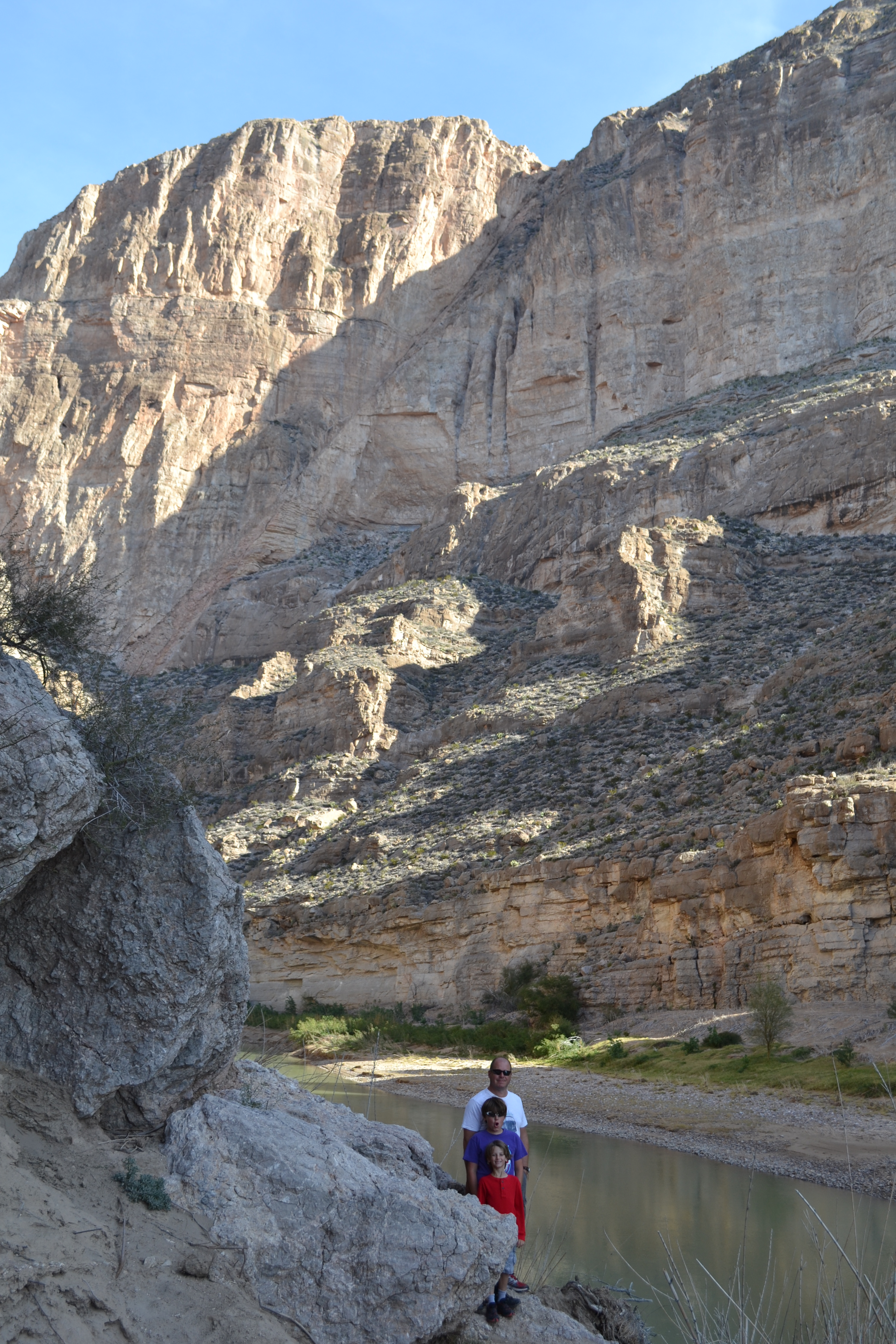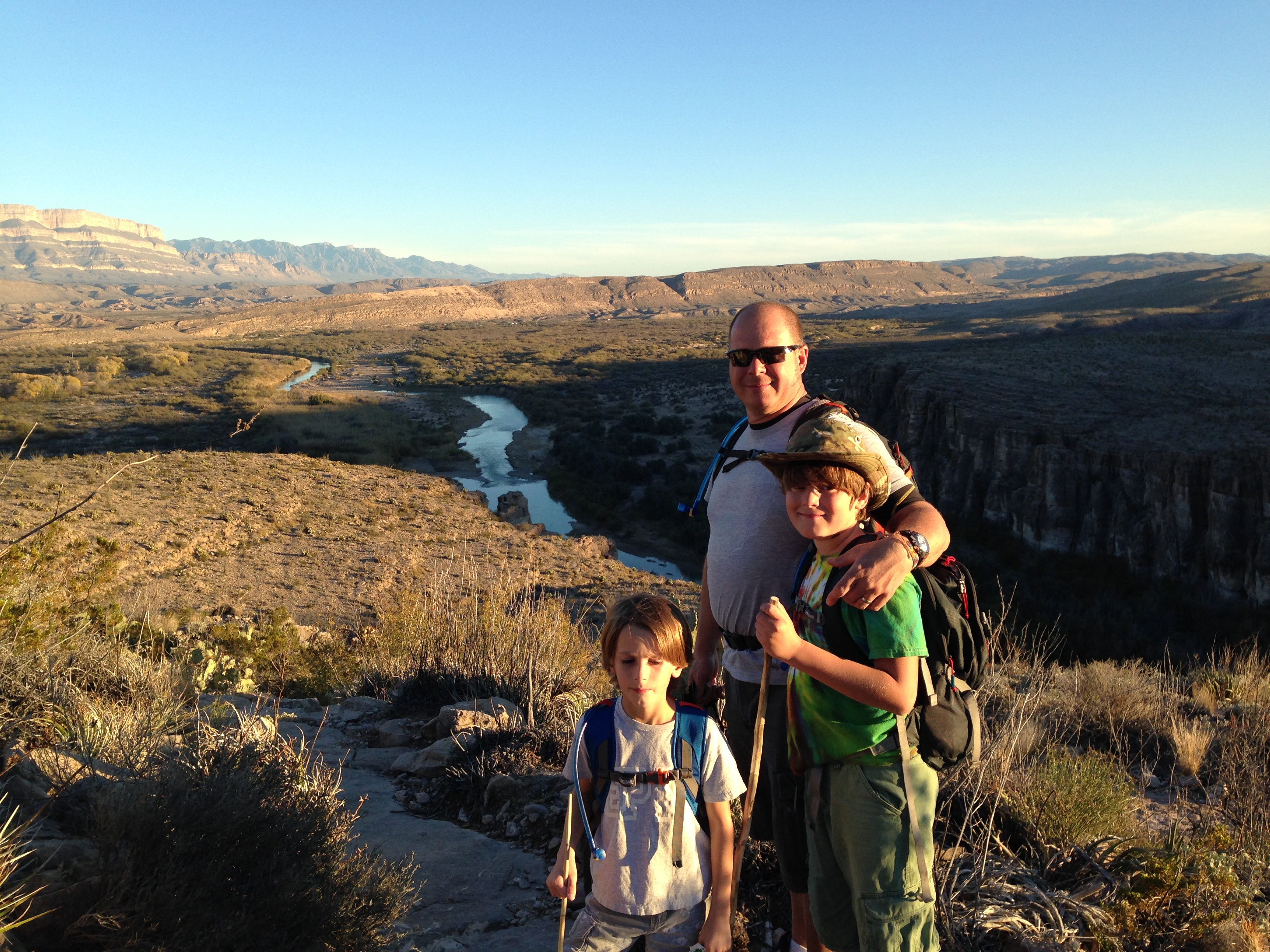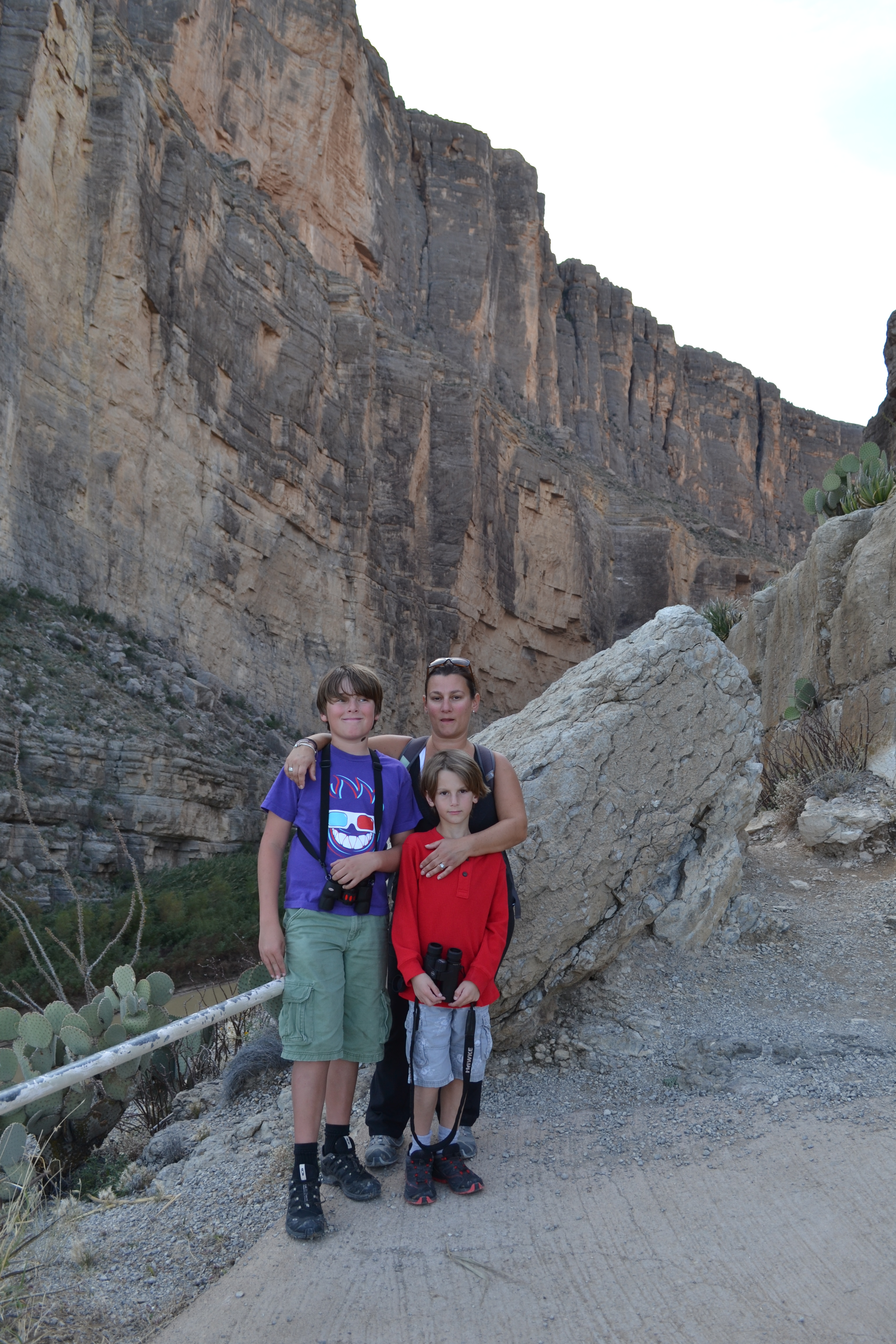 Very strange to see Mexico just on the other side of the river. For 118 miles the Rio Grande acts as the border between the 2 countries. A ranger we met warned us that people wander over from Mexico to sell their ‘crafts’ and that to buy from them would be illegal… We saw a pile of beautiful wooden walking sticks on the side of the trail with a money jar but managed to persuade the kids NOT to buy one. We pointed out that they were really just like the sticks they’d found and had been using for the last couple of weeks and suggested they could even paint their own. Hmmm, might regret that little burst of creative parenting as we then spent days being nagged at to buy paints and varnish etc so we could recreate said sticks!