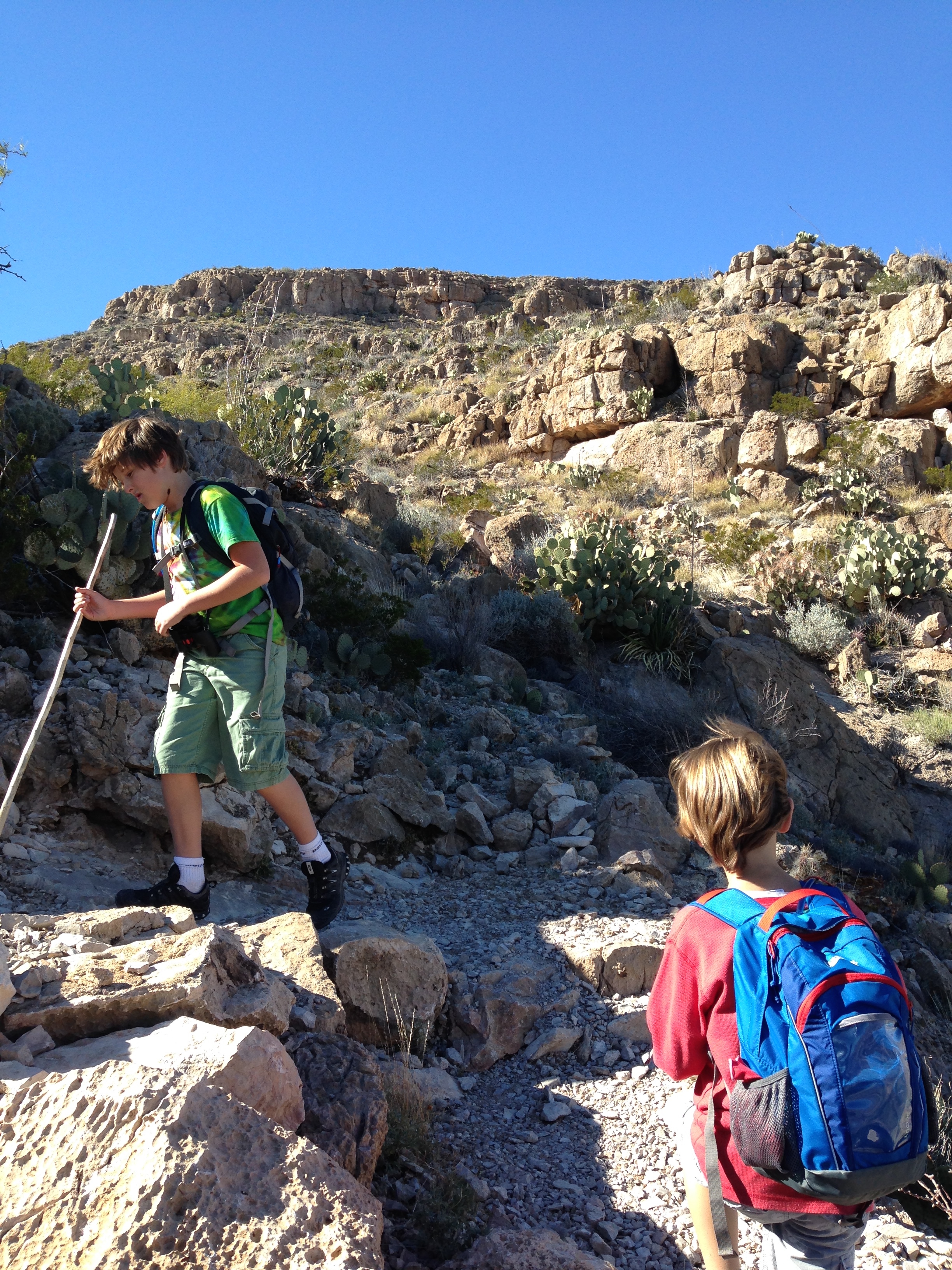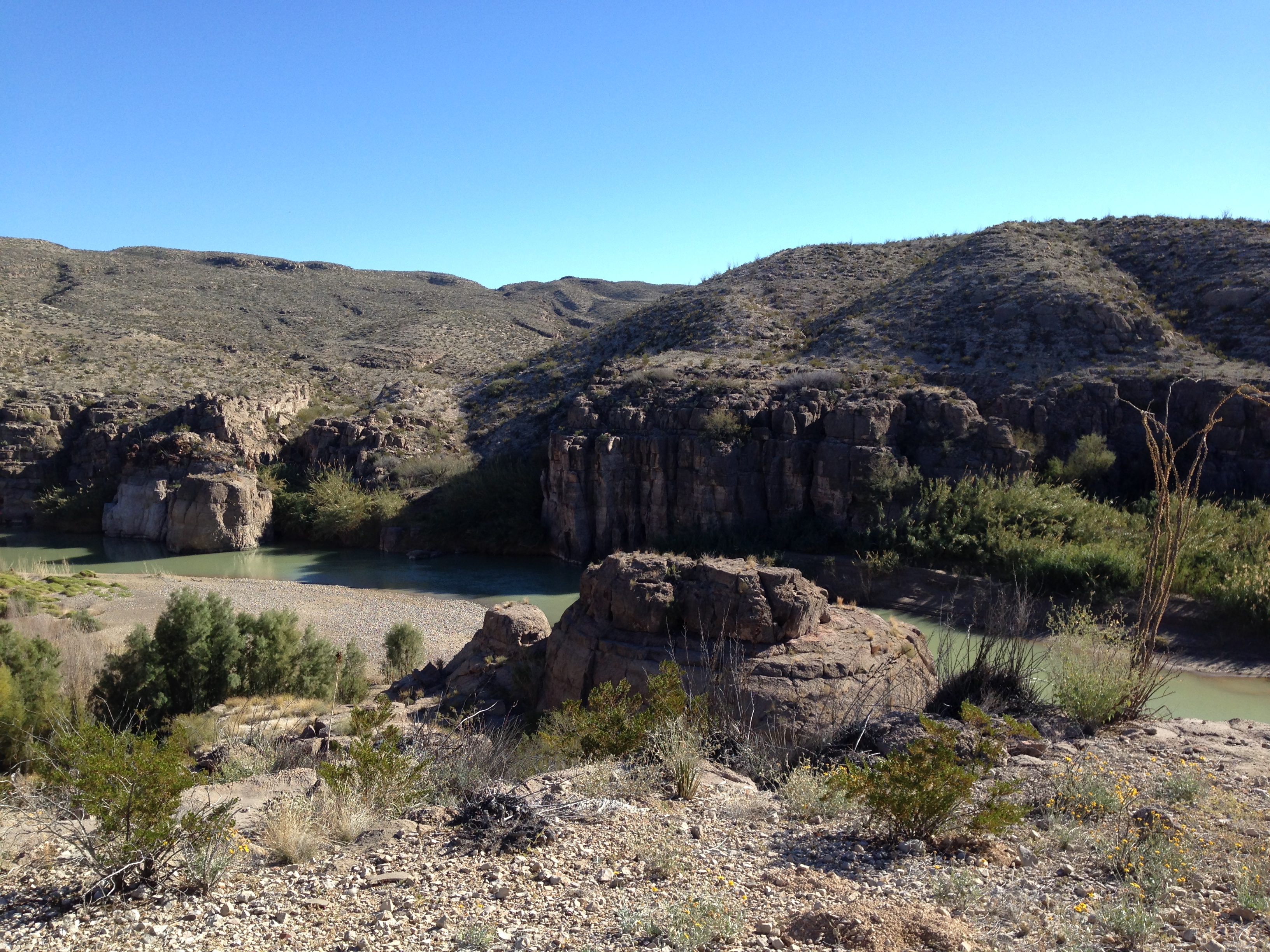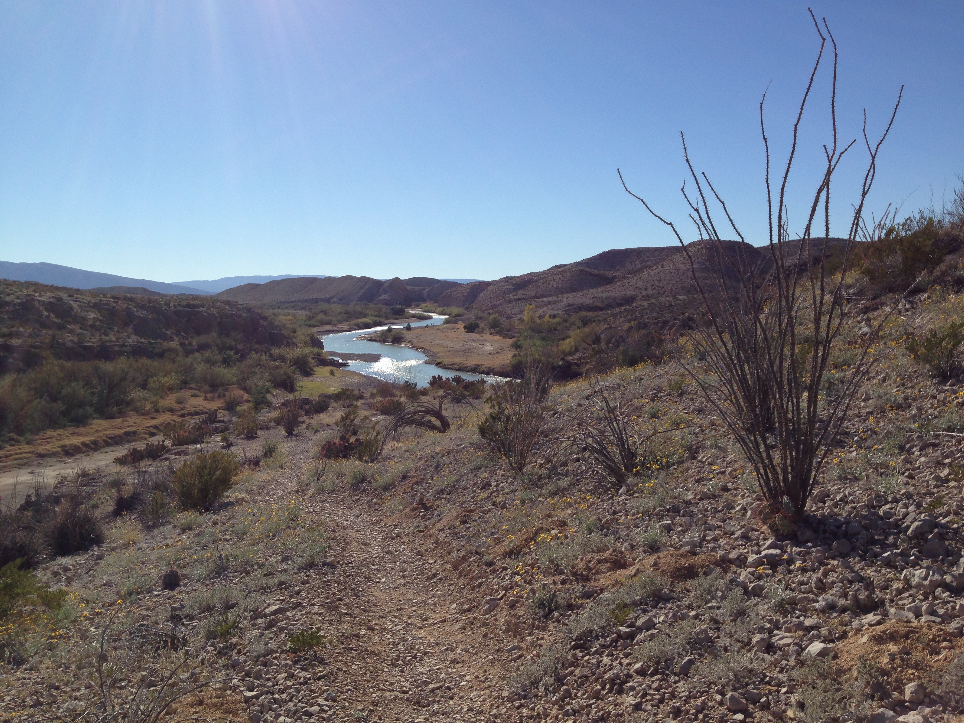 Very strange to see Mexico just on the other side of the river. For 118 miles the Rio Grande acts as the border between the 2 countries. A ranger we met warned us that people wander over from Mexico to sell their ‘crafts’ and that to buy from them would be illegal… We saw a pile of beautiful wooden walking sticks on the side of the trail with a money jar but managed to persuade the kids NOT to buy one. We pointed out that they were really just like the sticks they’d found and had been using for the last couple of weeks and suggested they could even paint their own. Hmmm, might regret that little burst of creative parenting as we then spent days being nagged at to buy paints and varnish etc so we could recreate said sticks!