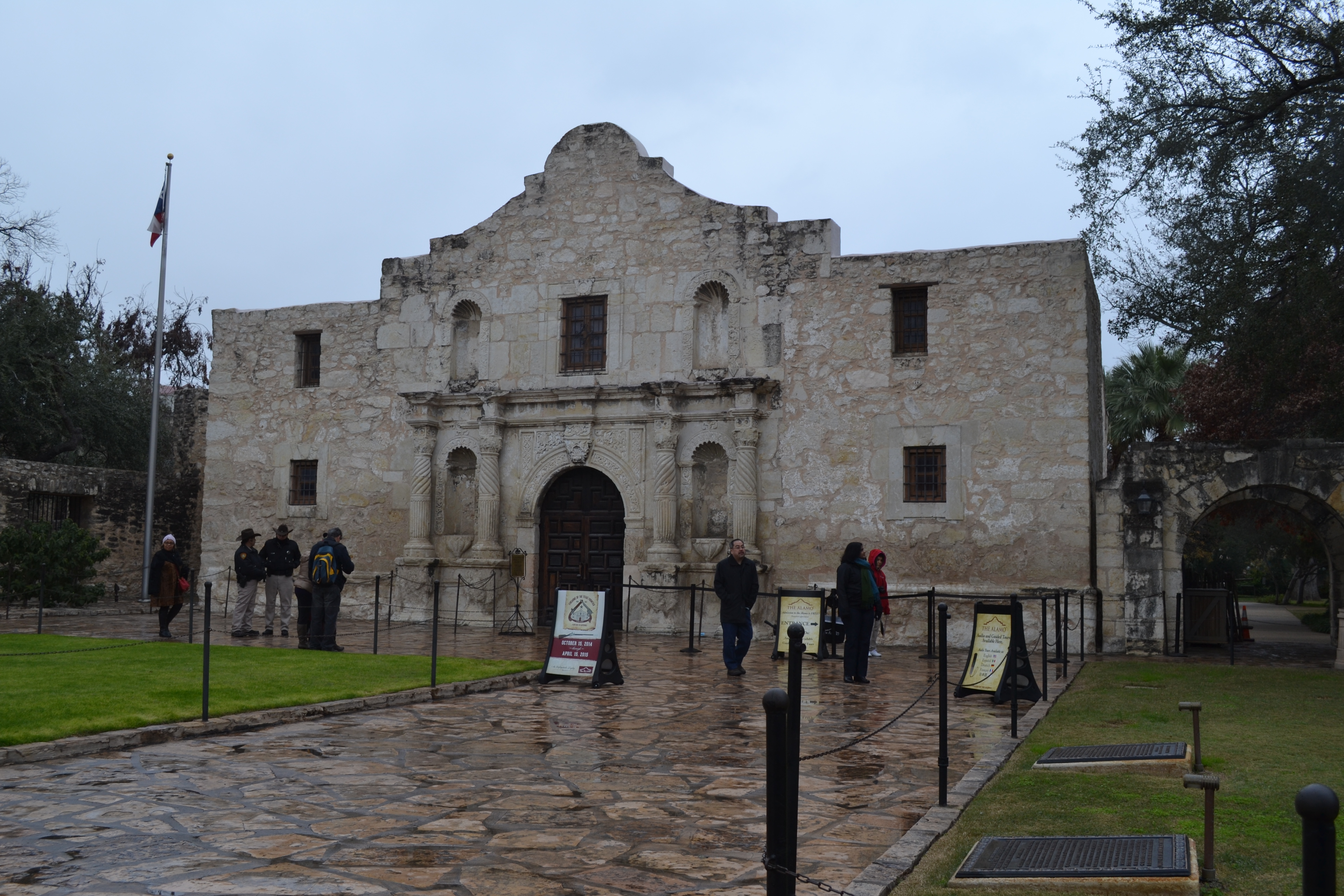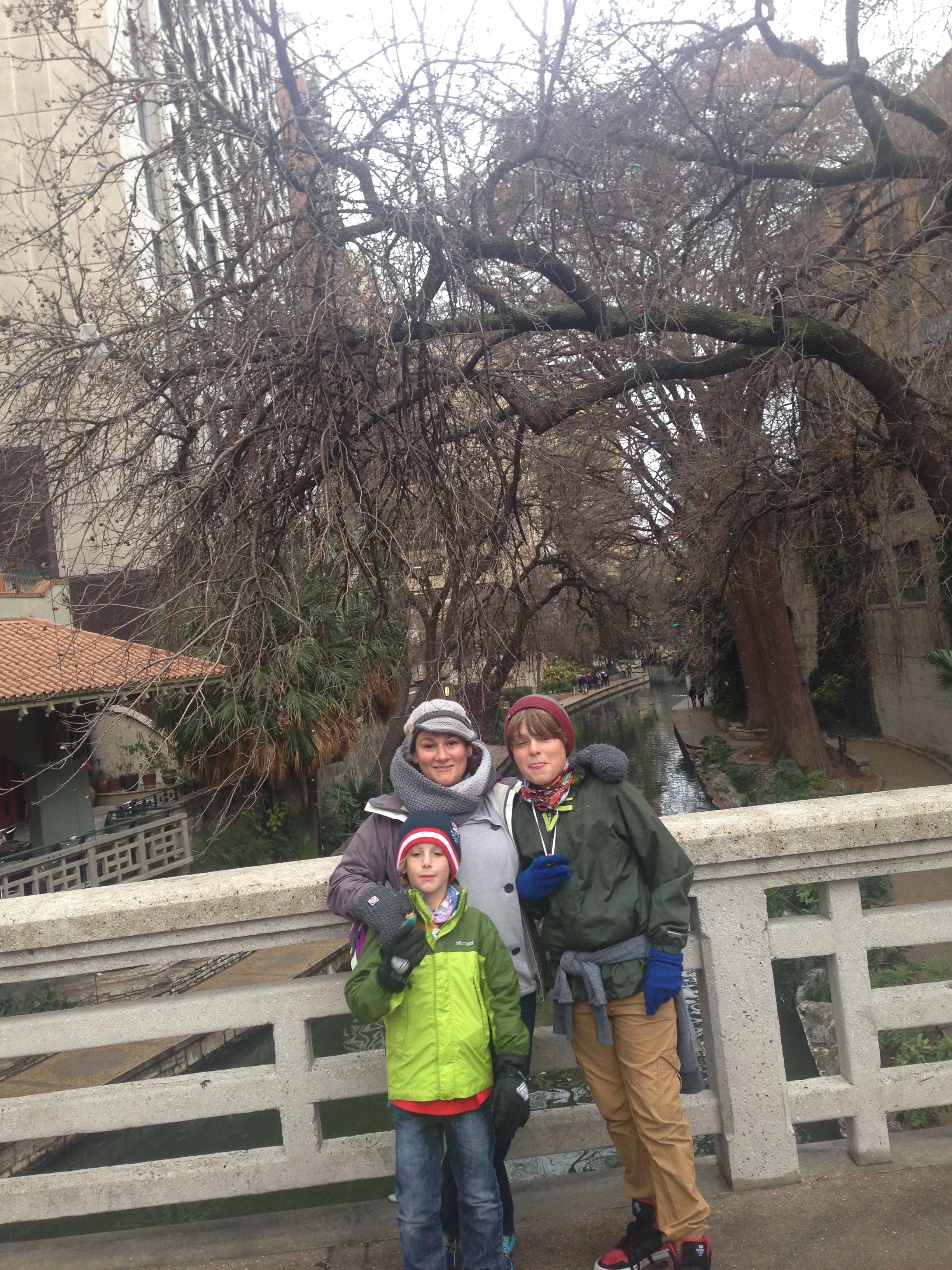 Wrapped in every bit of cold weather gear we possess (which as previously discussed is not much) we wandered along the beautiful River Walk through San Antonio. Lined with cafes, bars and restaurants it must be a lovely place to hang out on a summers evening. Not quite so pleasurable for us!
