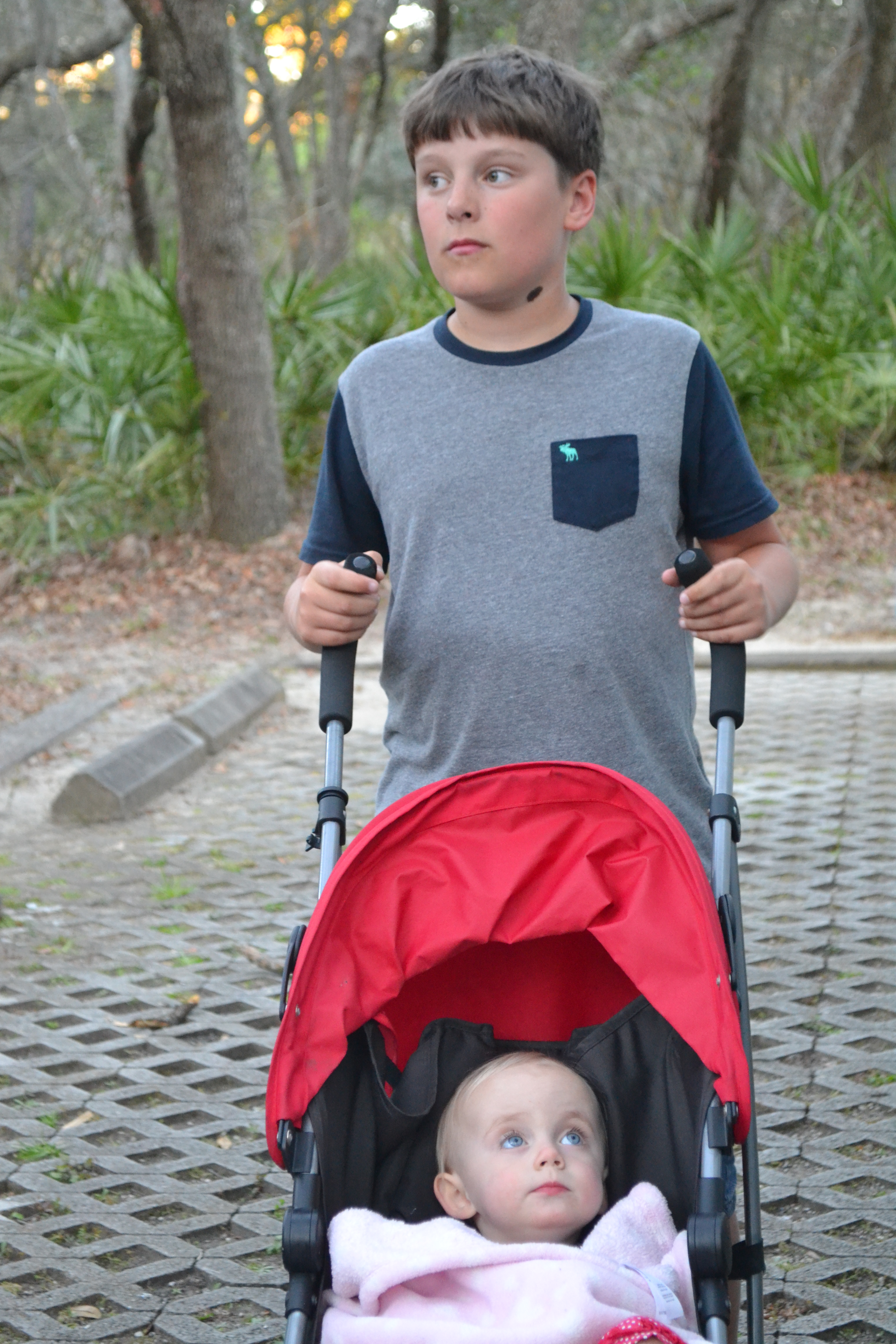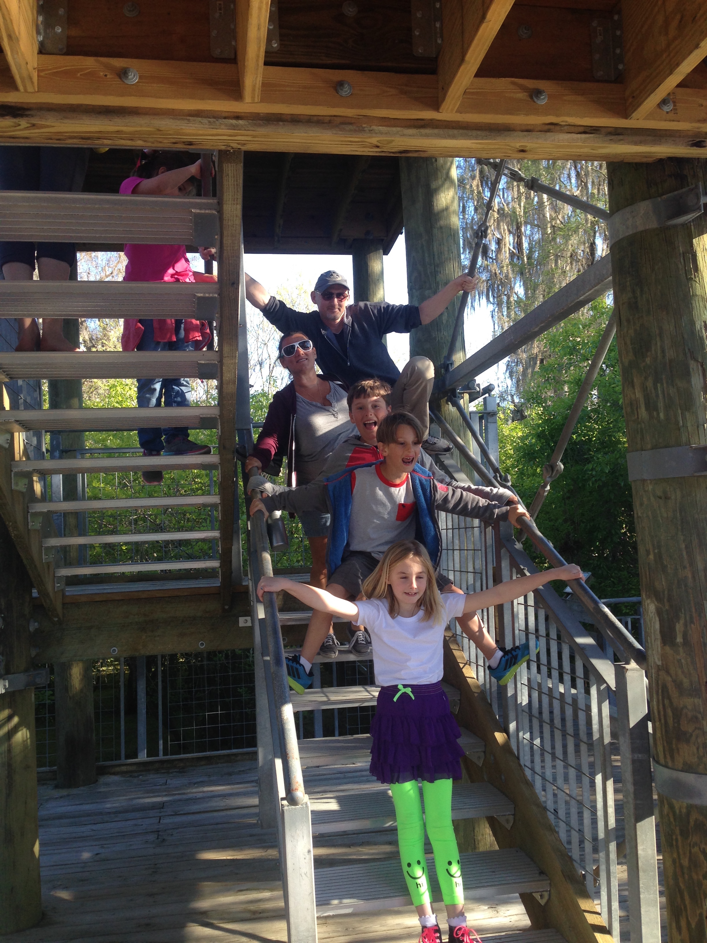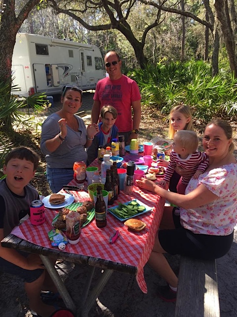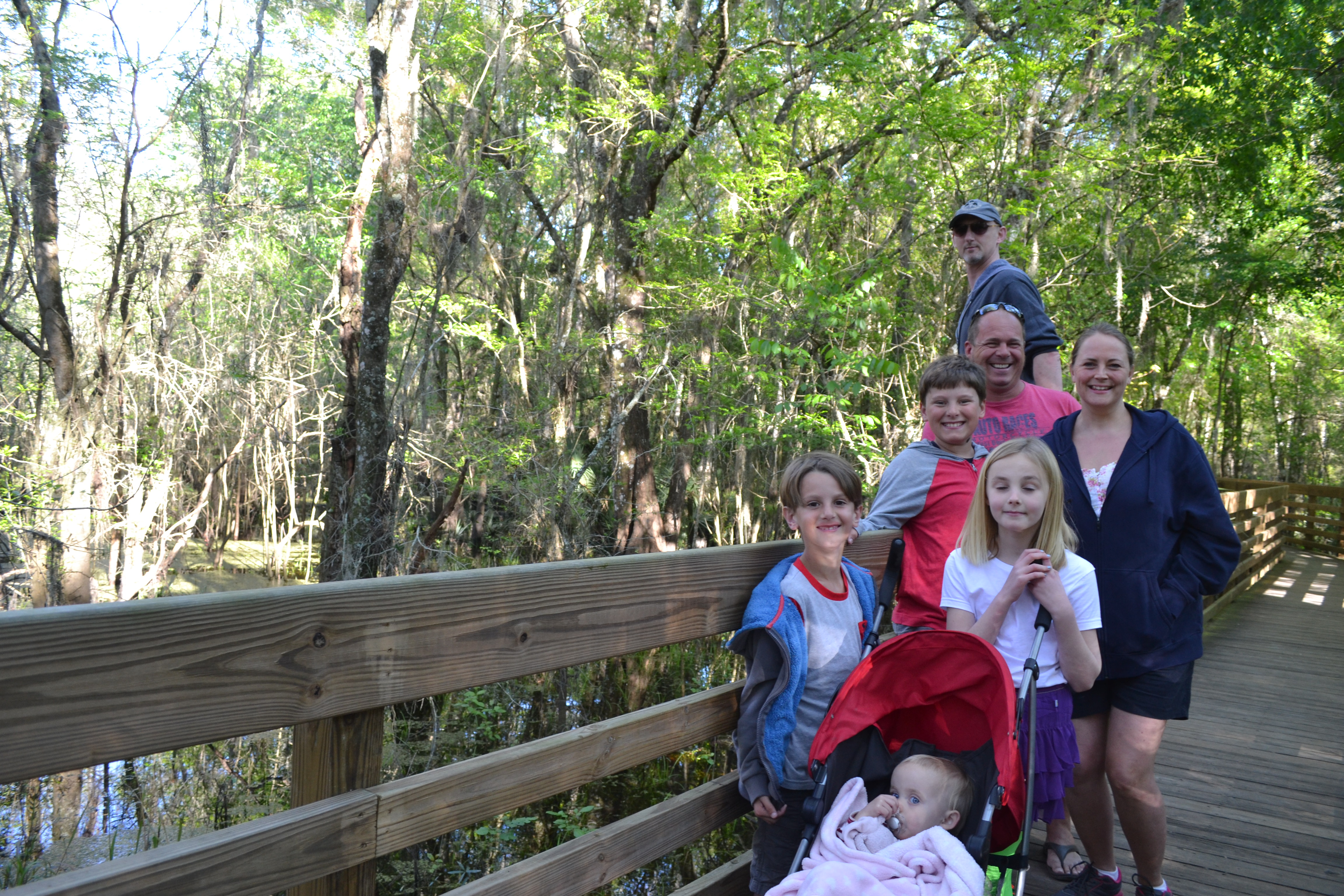 We had a really fab day with them. BBQ lunch and lots of catching up. William followed Rosie around for hours being sweetly attentive and caring!! Charlie and Poppy once again discovered each other and remembered what great buddies they are and played nonstop. We walked the 3km boardwalk over the floodplain and hardwood swamp forest, getting our first glimpse of a tiny alligator hiding under the surface of the water!!