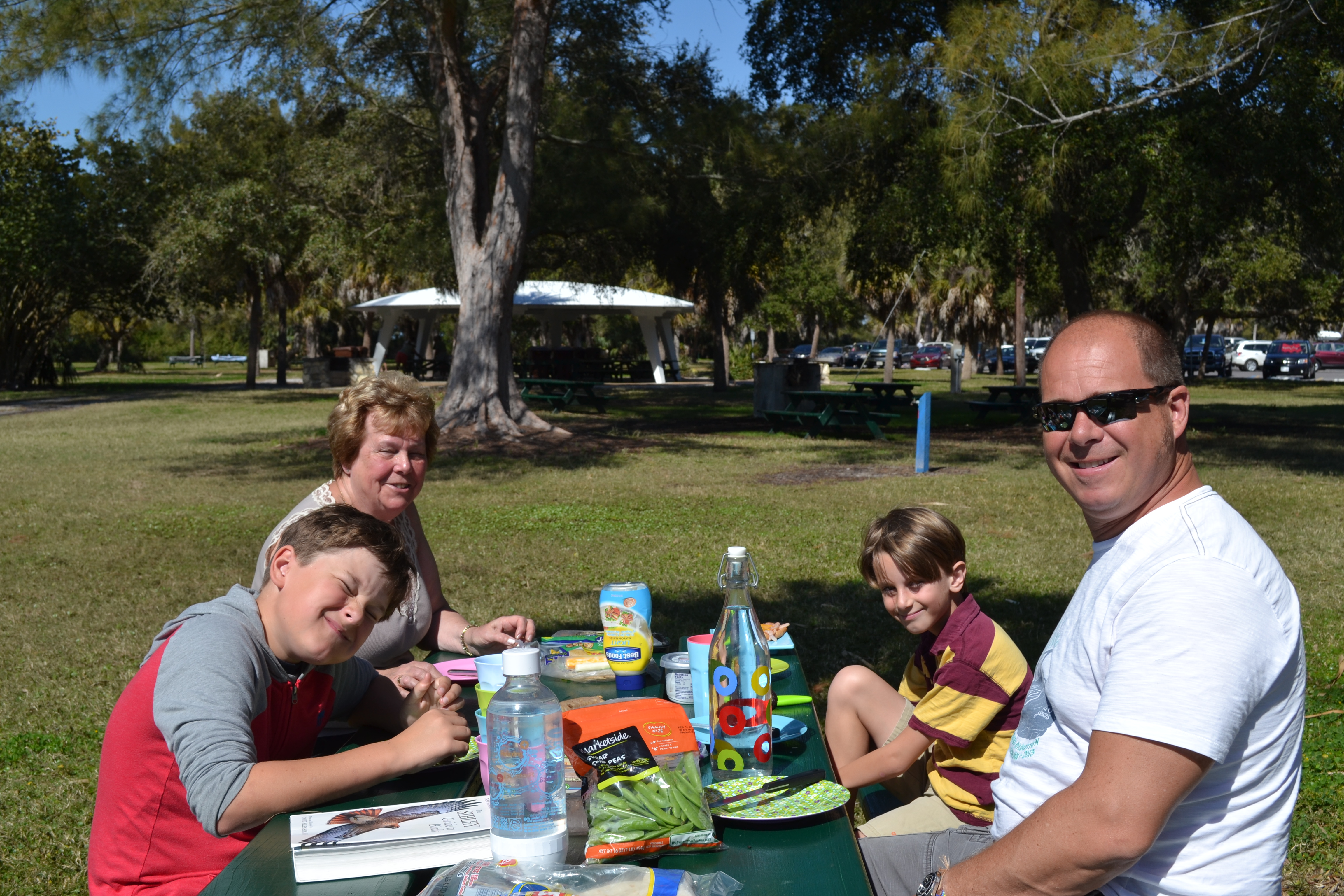 Valentines Day we drove Doreen to Tampa airport and said ANOTHER teary goodbye!! Then we were headed for a very romantic day out with our dear friends the Hunters who were on holiday at Disney World. Too mean to pay the entrance fee to visit them there we had persuaded them to come and meet us in a park I had found online. So it was that we parked up and set up our BBQ at midday in a picnic area in Lettuce Lake Park, Tampa. Just too exciting when they pulled up in their hire car!! The kids were so happy to see Poppy and Rosie, who at nearly 2 is now walking and talking unlike the last time we saw them almost exactly a year ago to the day!!