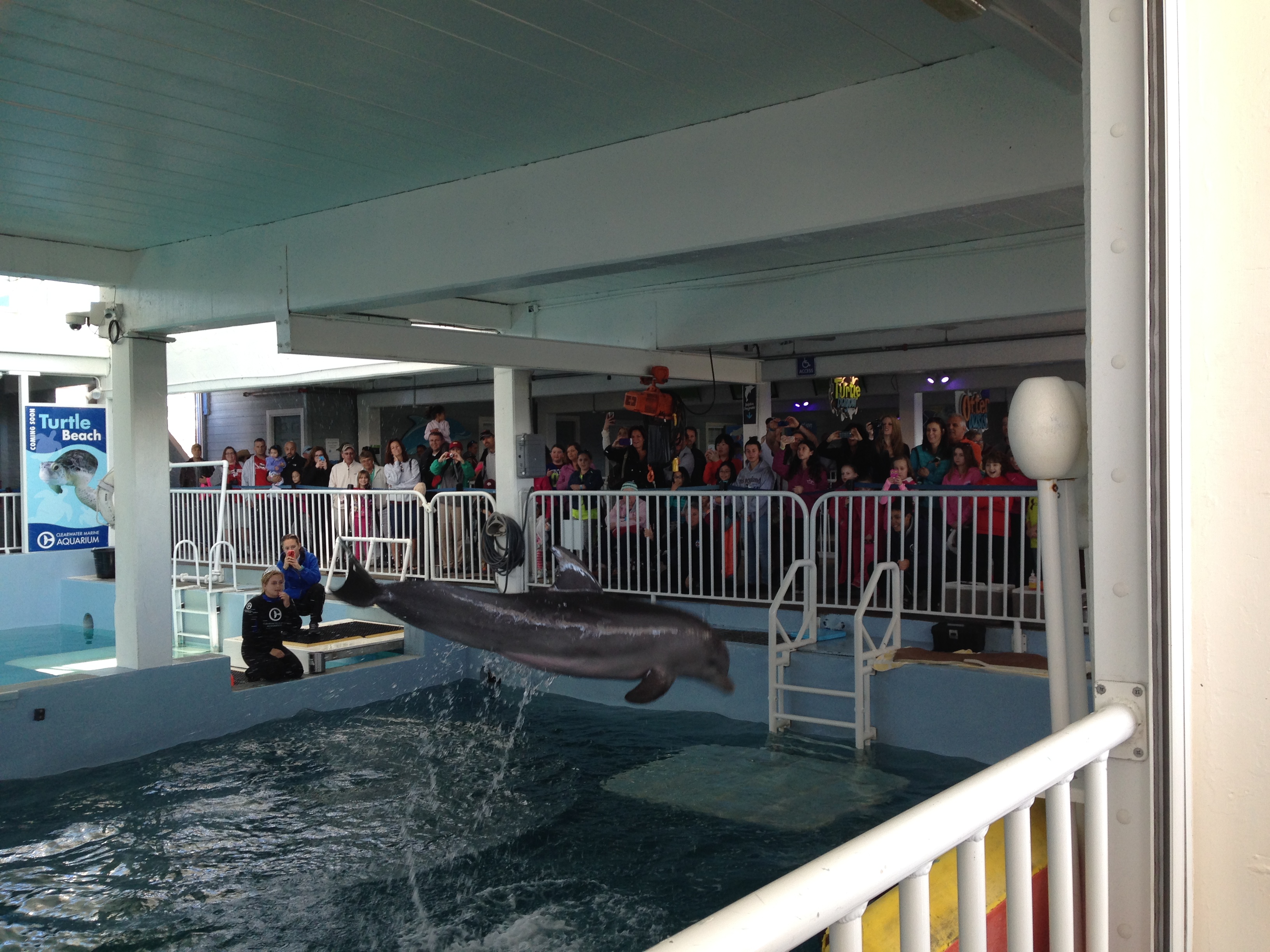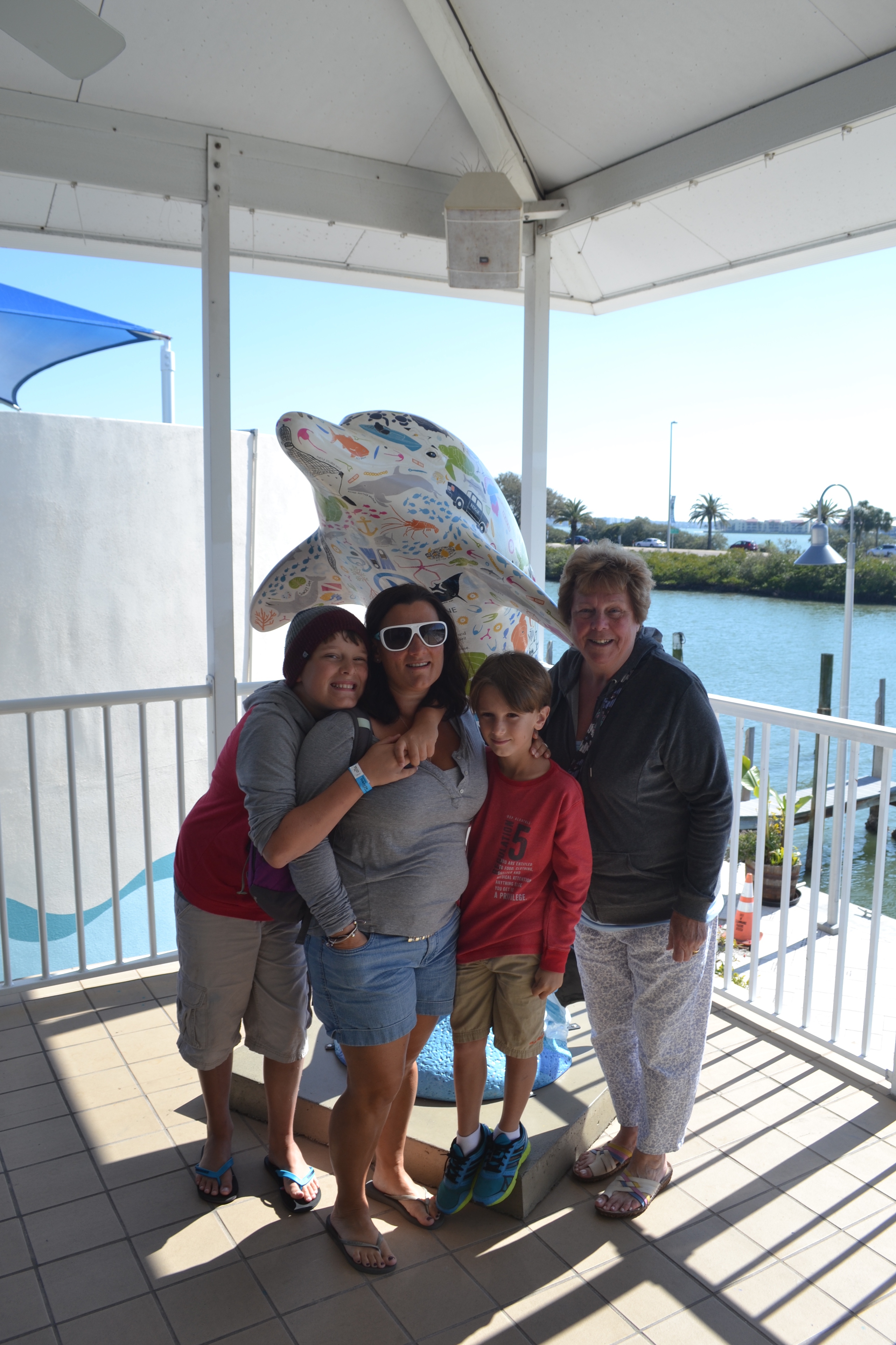 It was all about dolphins on Friday, our last day with Doreen. 2 very famous dolphins Winter and Hope….. For anyone without kids they are the stars of the films, Dolphin Tale 1 & 2. The kids had picked up a leaflet back in the hopeless Welcome Centre and had been nagging us nonstop about going there. So Will, John and I used the brilliant bike trail near the campsite to have a great ride while Charlie had Nannie all to himself and they played mini golf and swam (KOA campsites do have their advantages!!) we headed into Clearwater to the Marine Aquarium. Us and half of Florida!!