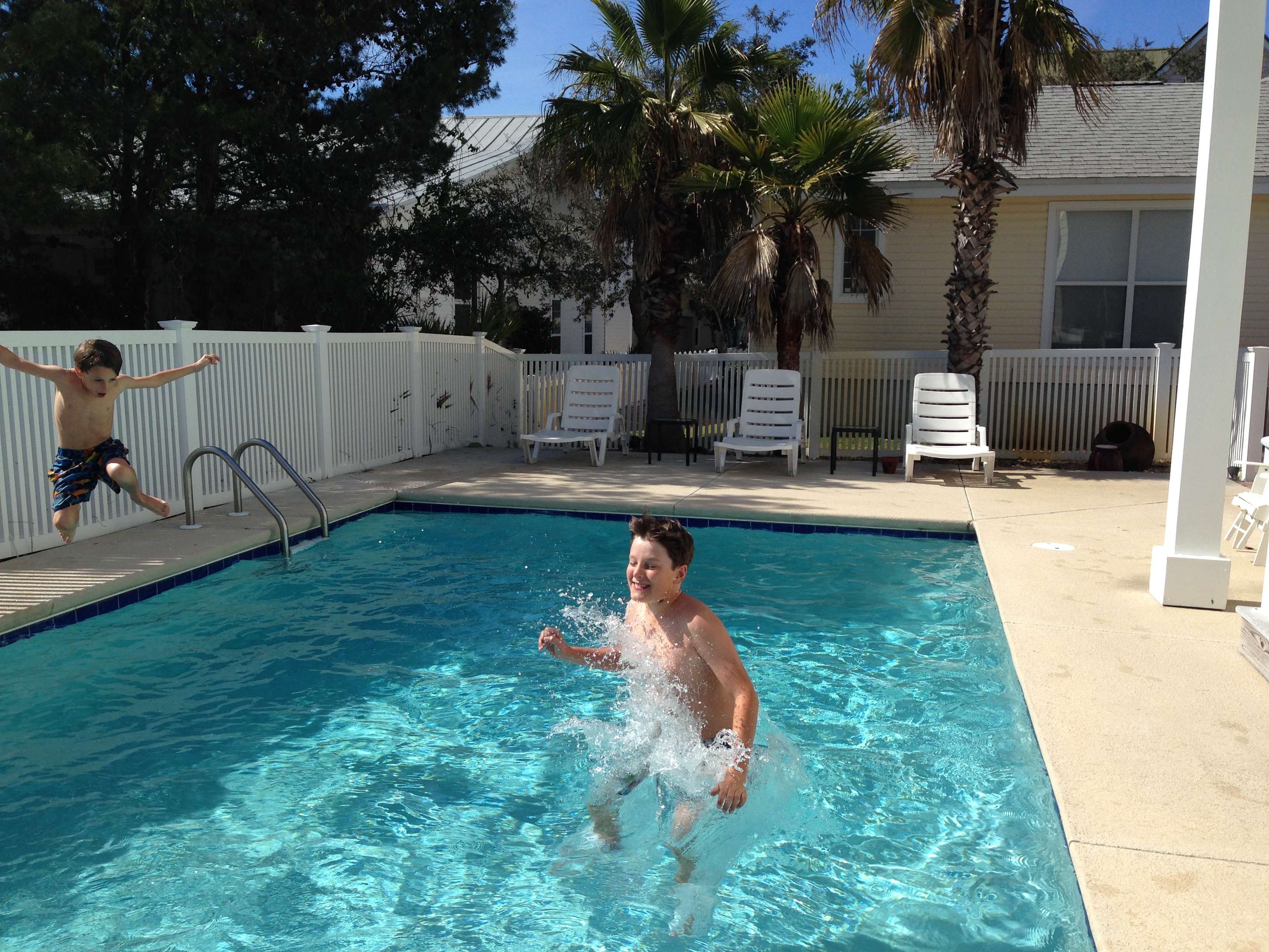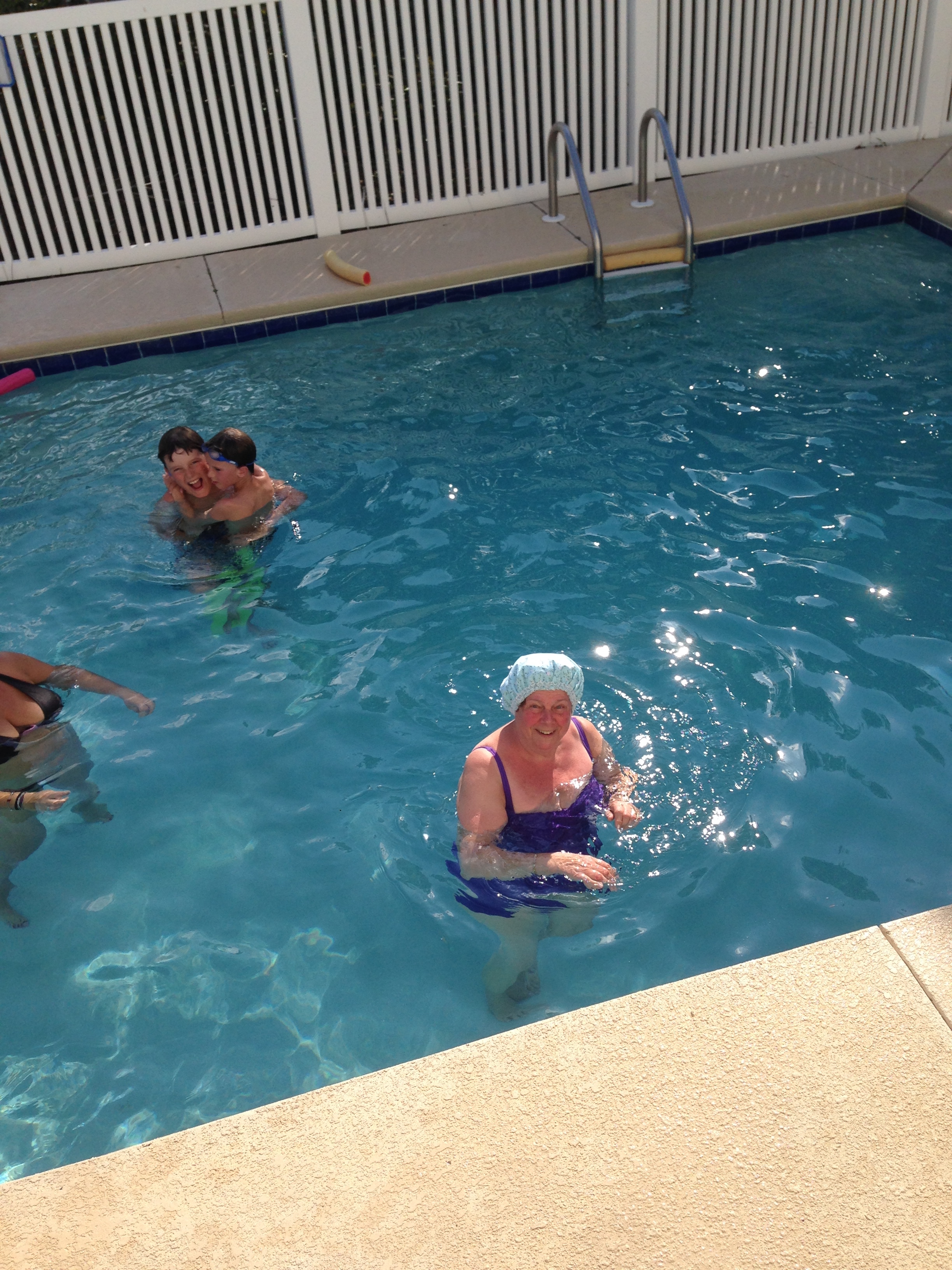 We did most of our swimming in the house pool. It was freezing when we arrived but after a couple of calls to the letting agent John had located the override button and by the time we left we had got it up to 98 degrees!! We had a few days enjoying the sunshine, beach and swimming pool. The kids were in the pool about 8 hours a day. John and I started working on our tans again. Even Doreen ventured into the pool a few times – although we were all under strict instructions not to splash her after she’d had her hair done.