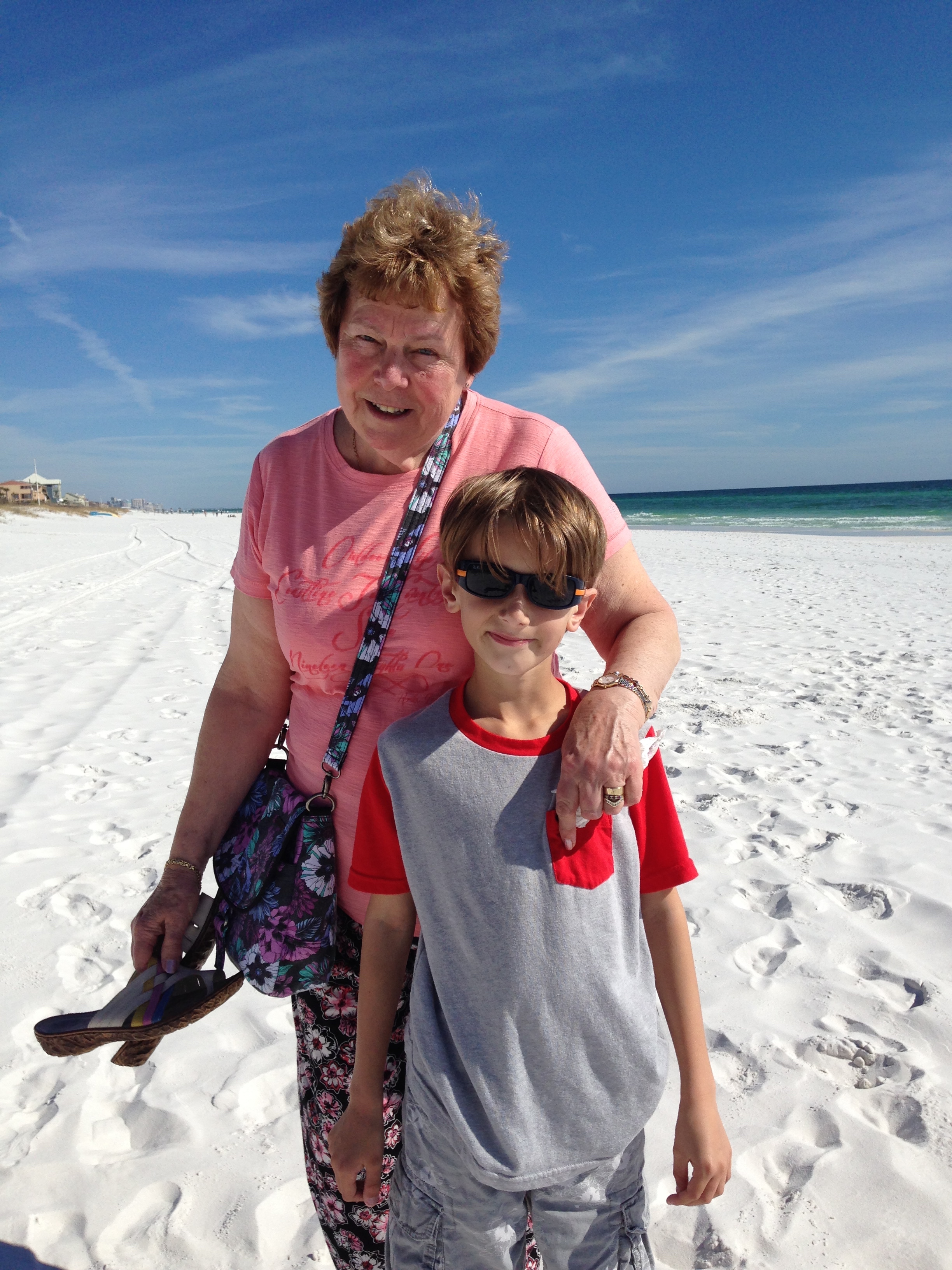 We had been told by lots of people that some of the best beaches in the USA were to be found in Destin. When trying to work out our route over the 10 days Doreen was joining us we wanted her to see a bit of the sort of travelling we had been doing. But also knew that life of the road with 3 adults and 2 kids in Frankie might get a little claustrophobic. So after much discussion with Doreen about what we could do we decided to ‘settle’ in one place for a few days and just enjoy celebrating her special birthday! So as a lovely treat Doreen booked a real life house for our stay in Destin called Lemonfish. It was pale yellow shiplap and with a pool in the back garden and only 2 blocks down to the shore, (white sand and turquoise water), it was just perfect for a little ‘holiday’.